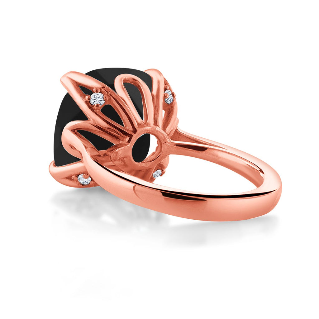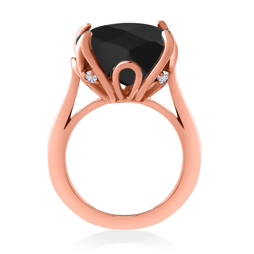 18K Rose Gold Plated Silver Black Onyx and White Moissanite Engagement Ring For Women (8.25 Cttw, 14MM Cushion Checkerboard, Available in Size 5,6,7,8,9)