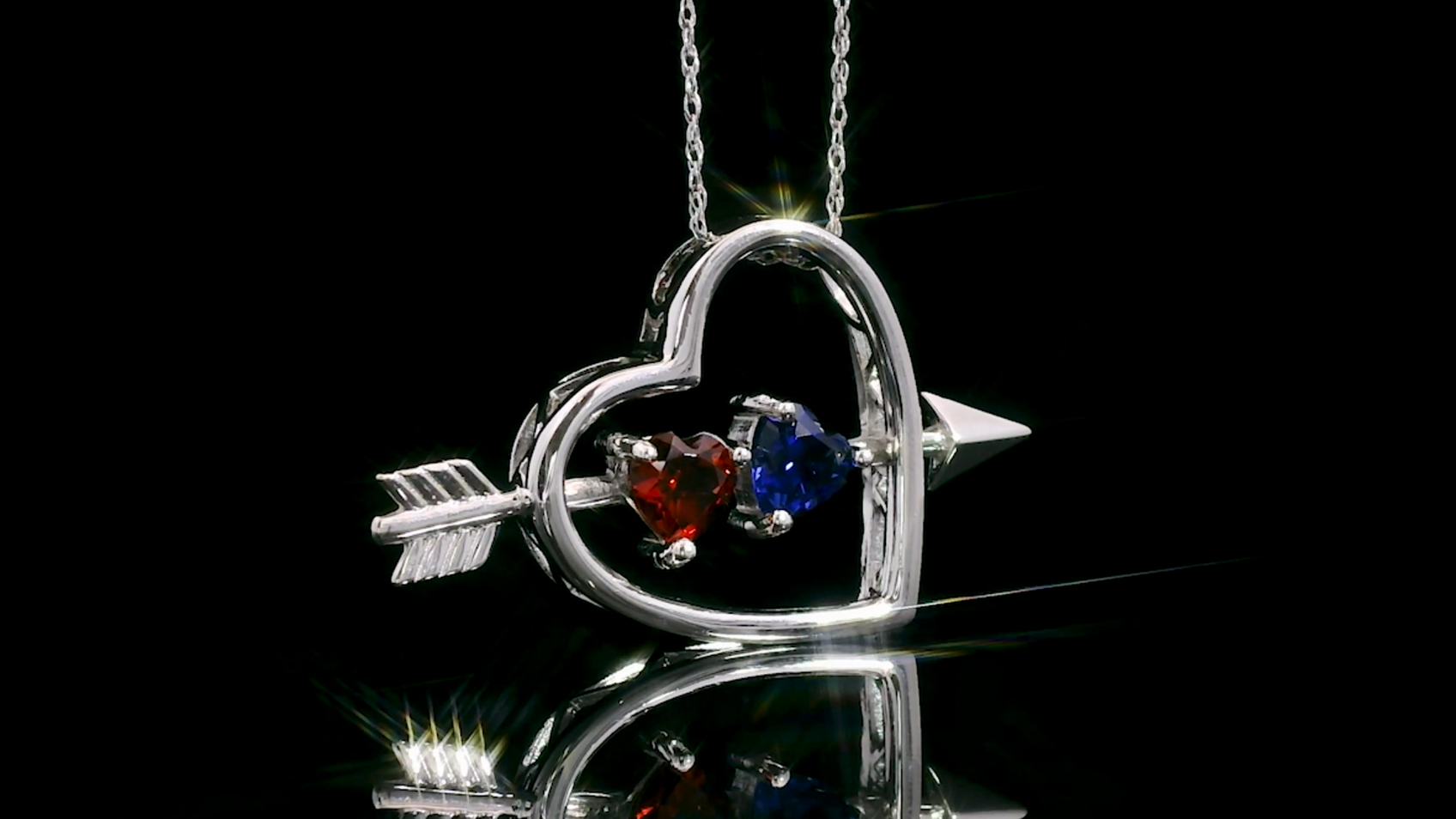 MEASUREMENTS: 5x5mm Heart Shape Near Colorless (GH) Moissanite, 5x5mm Heart Shape Heat-Treated Blue Tanzanite. Total Carat Weight is 0.92 cttw