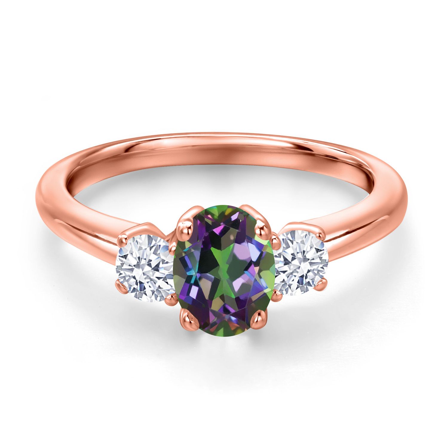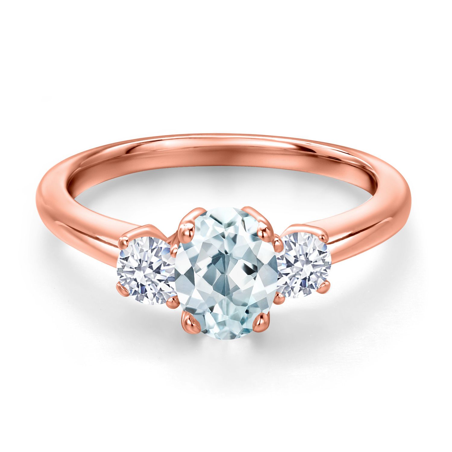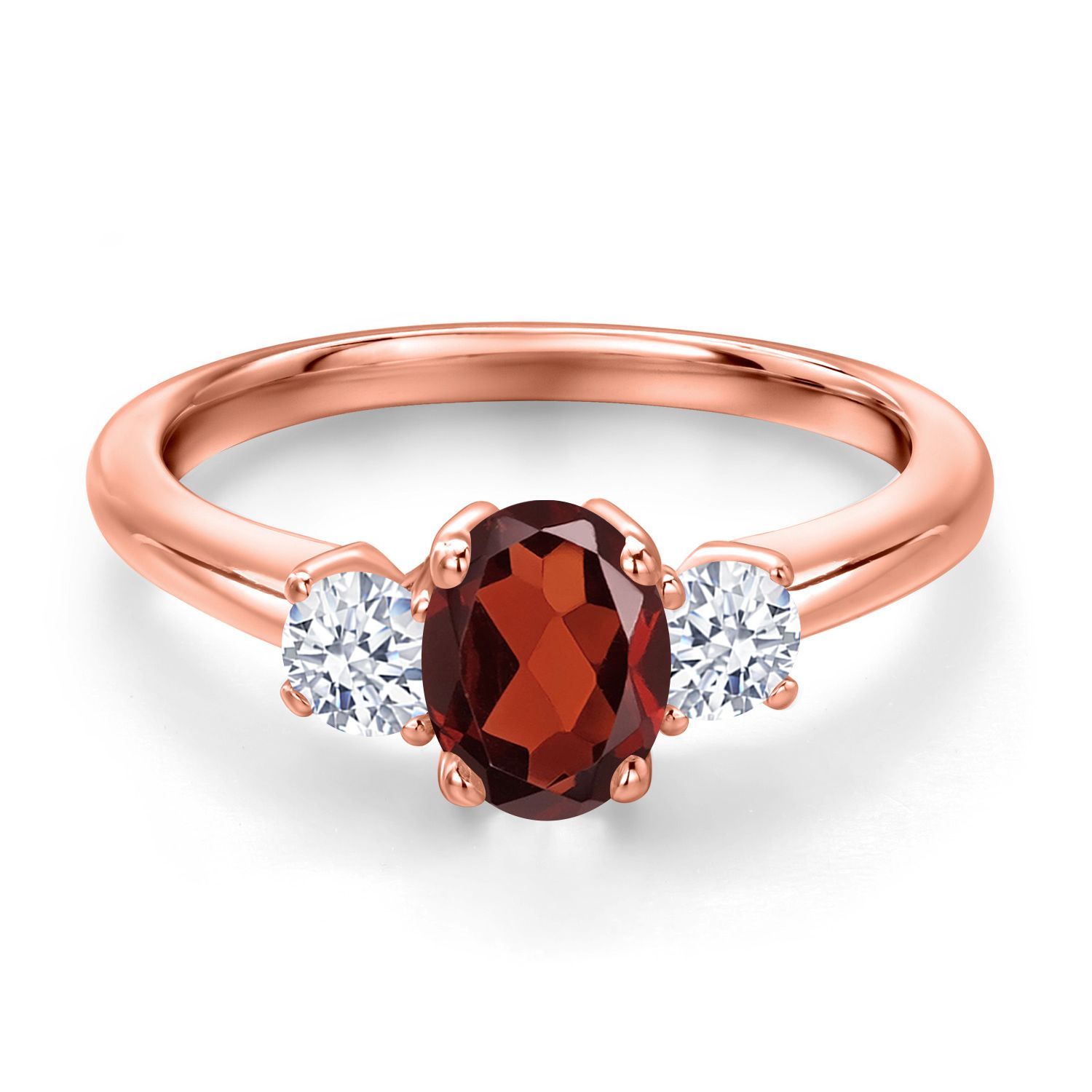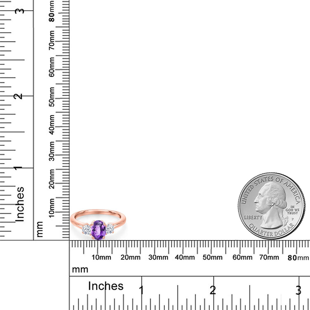 18K Rose Gold Plated Silver Gemstone Birthstone 3-Stone Engagement Ring for Women | Oval 7X5MM and Round 3MM | Wedding Anniversary Promise Ring | Sizes 5, 6, 7, 8, 9