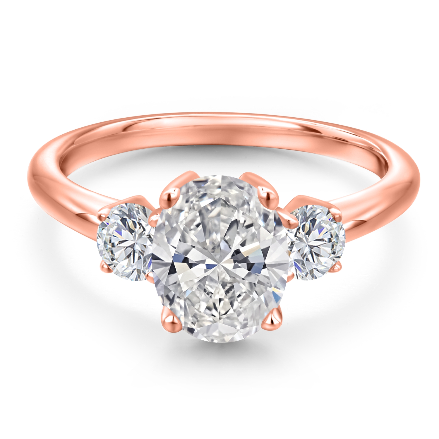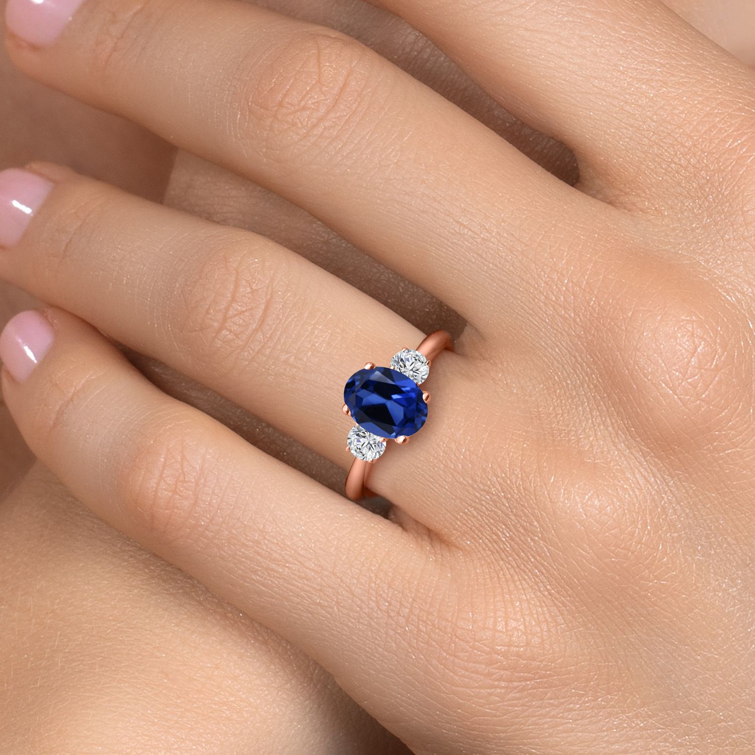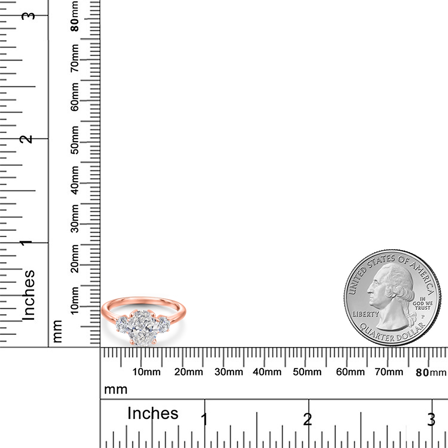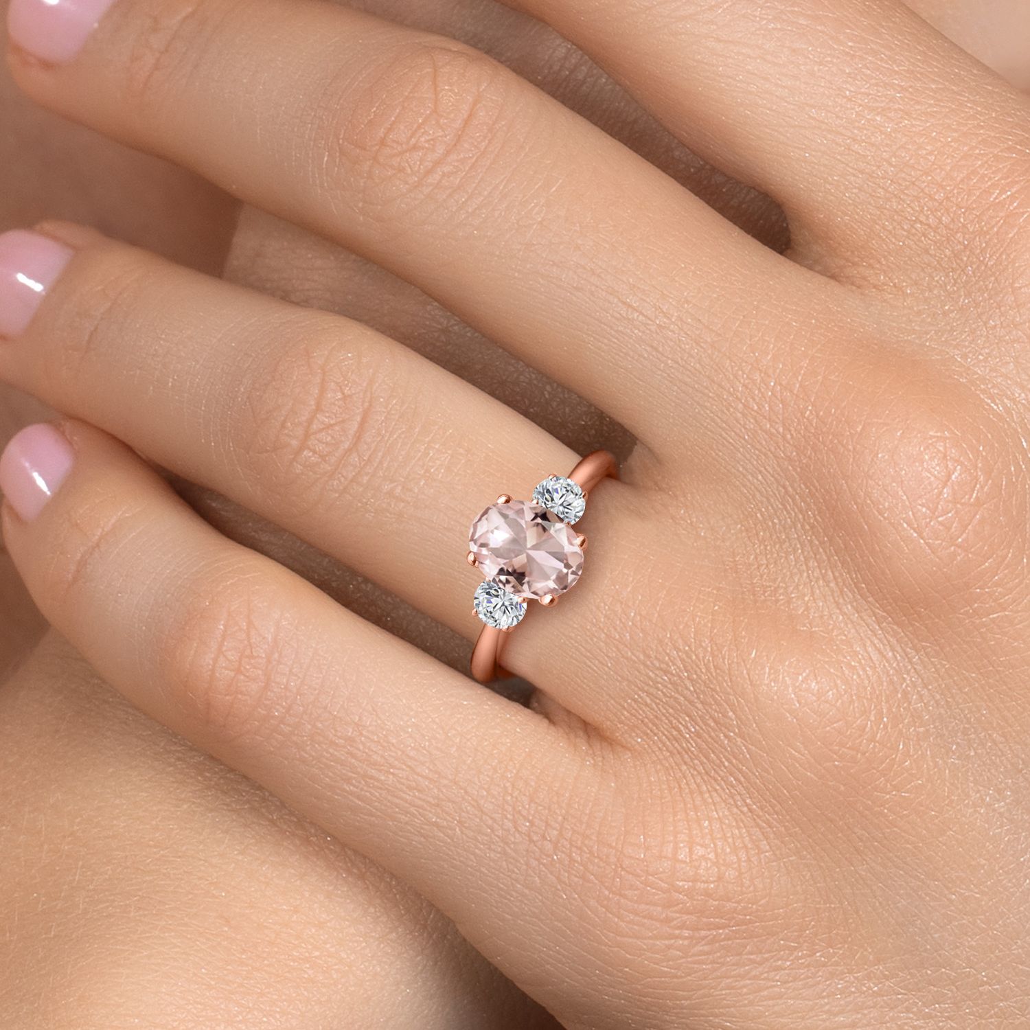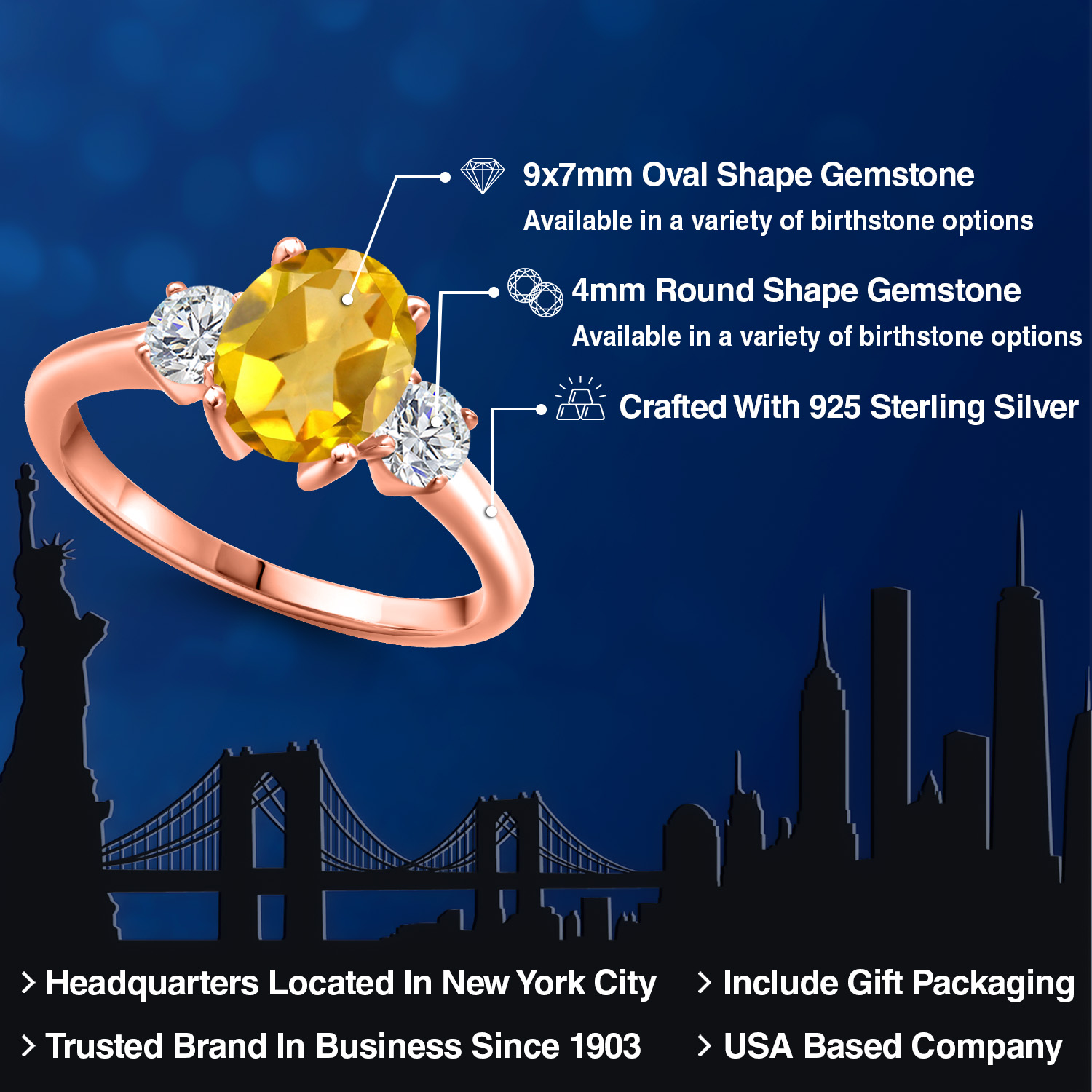 18K Rose Gold Plated Silver Gemstone Birthstone and Lab Grown Diamond 3-Stone Engagement Ring for Women | Oval 9X7MM and Round 4MM | Three Stone Wedding Anniversary Promise Ring | Sizes 5, 6, 7, 8, 9