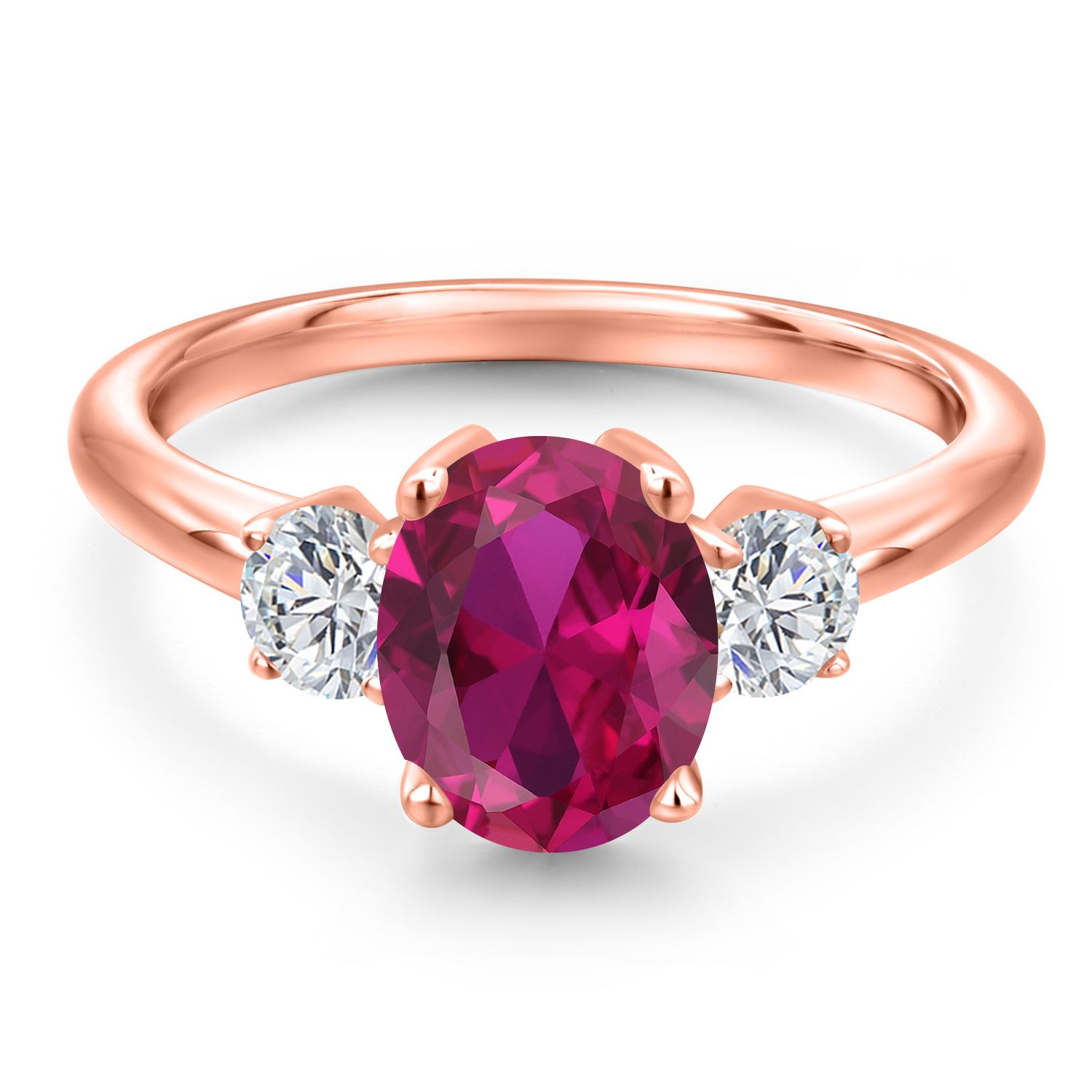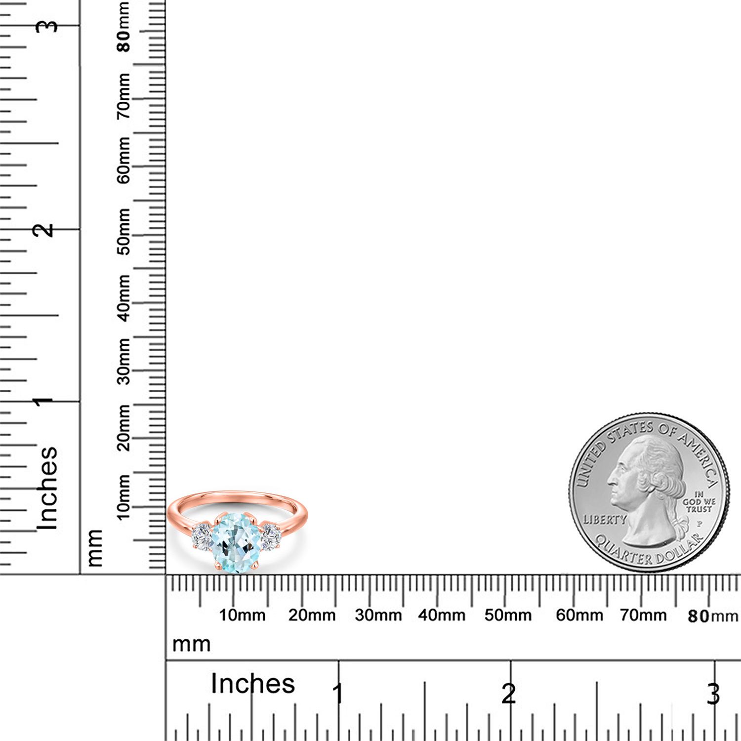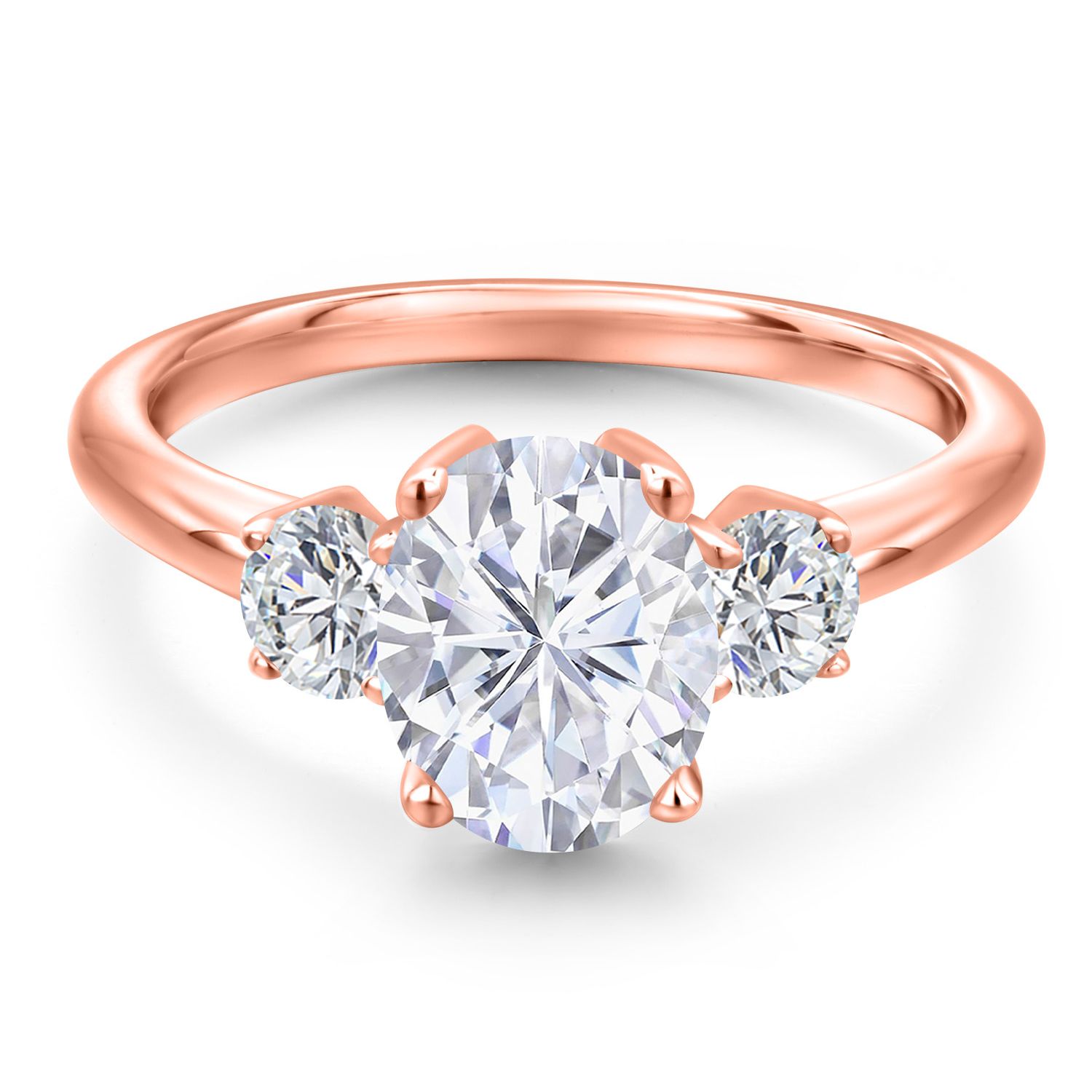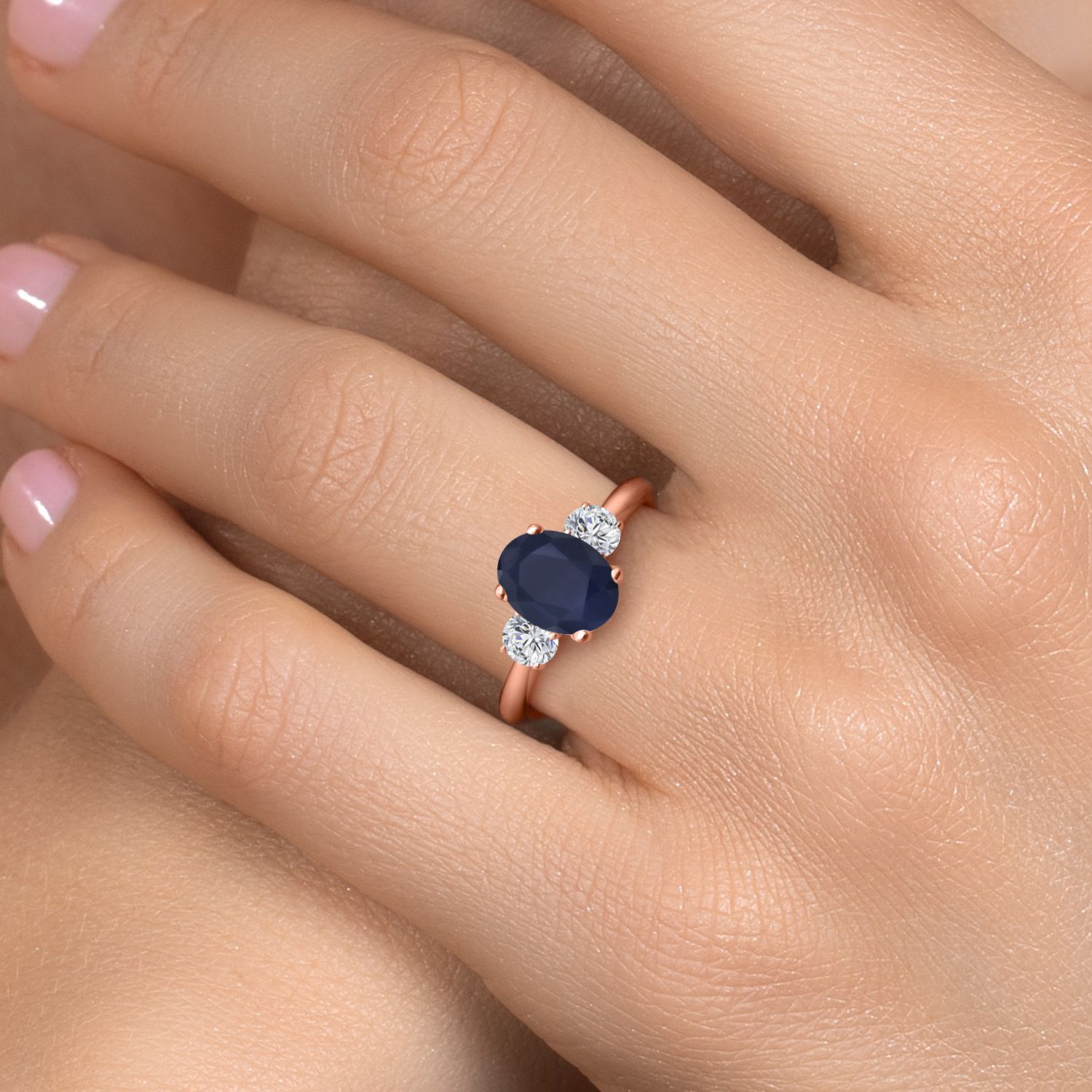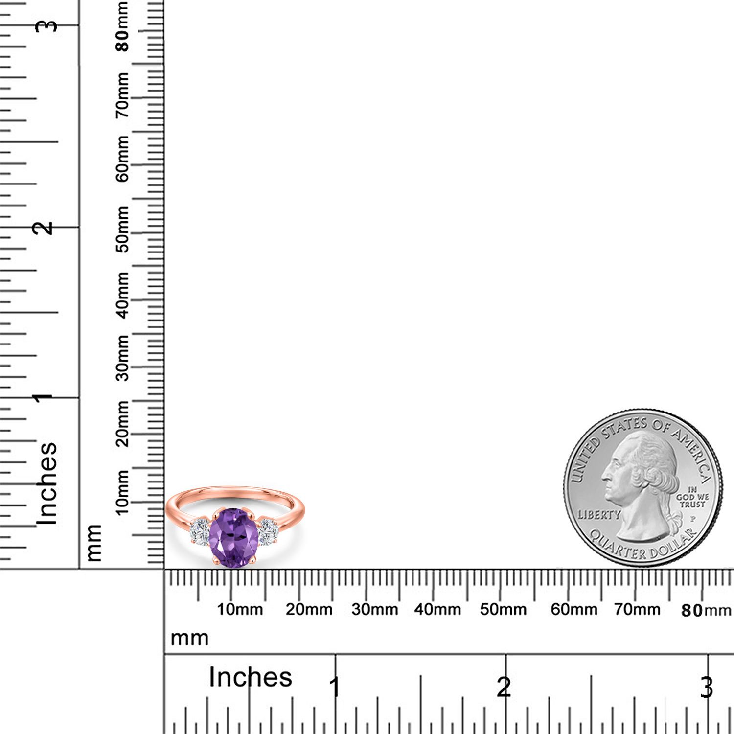 18K Rose Gold Plated Silver Gemstone Birthstone and Lab Grown Diamond 3-Stone Engagement Ring for Women | Oval 9X7MM and Round 4MM | Three Stone Wedding Anniversary Promise Ring | Sizes 5, 6, 7, 8, 9