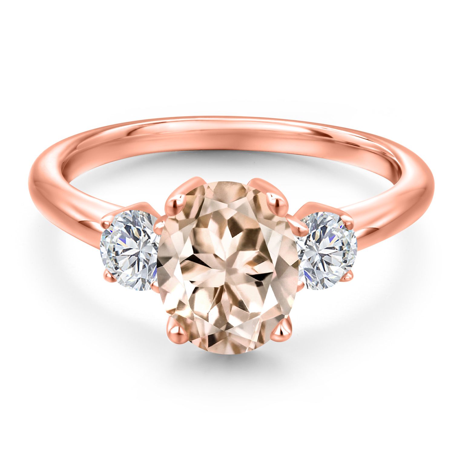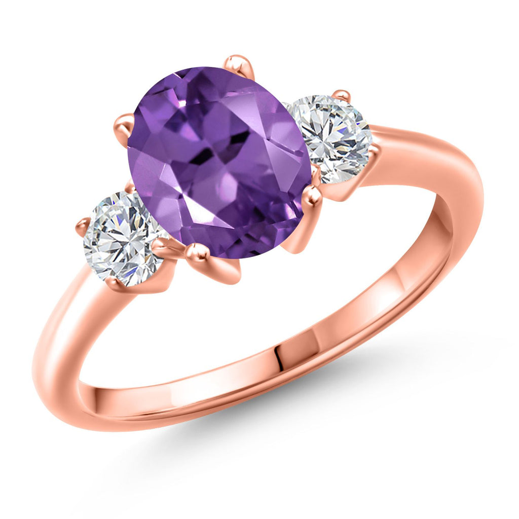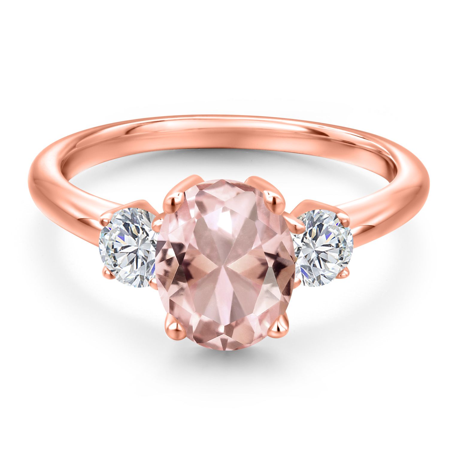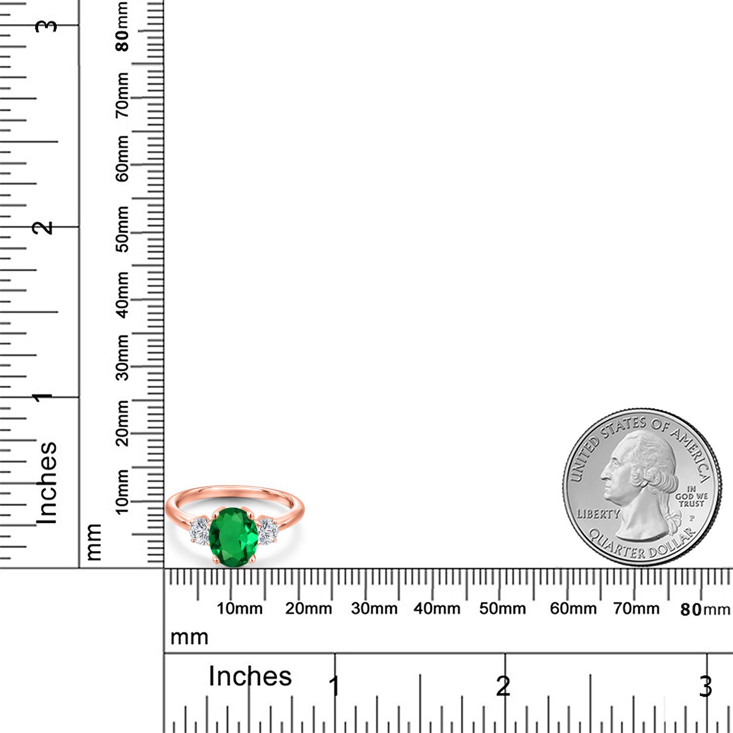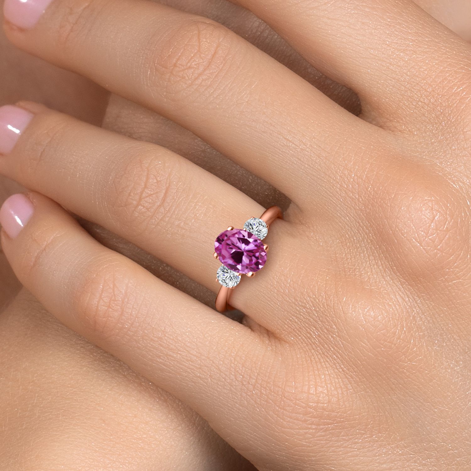 18K Rose Gold Plated Silver Gemstone Birthstone and Lab Grown Diamond 3-Stone Engagement Ring for Women | Oval 9X7MM and Round 4MM | Three Stone Wedding Anniversary Promise Ring | Sizes 5, 6, 7, 8, 9