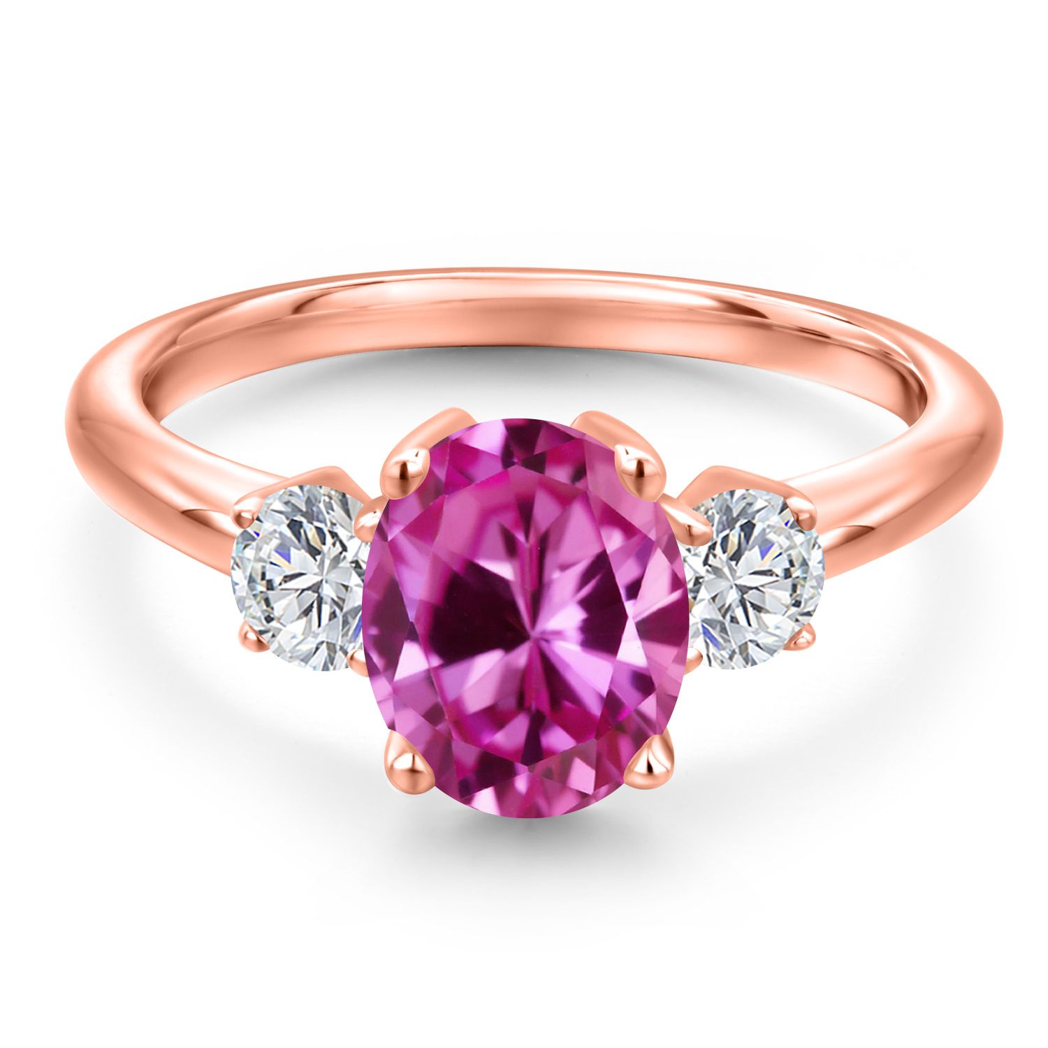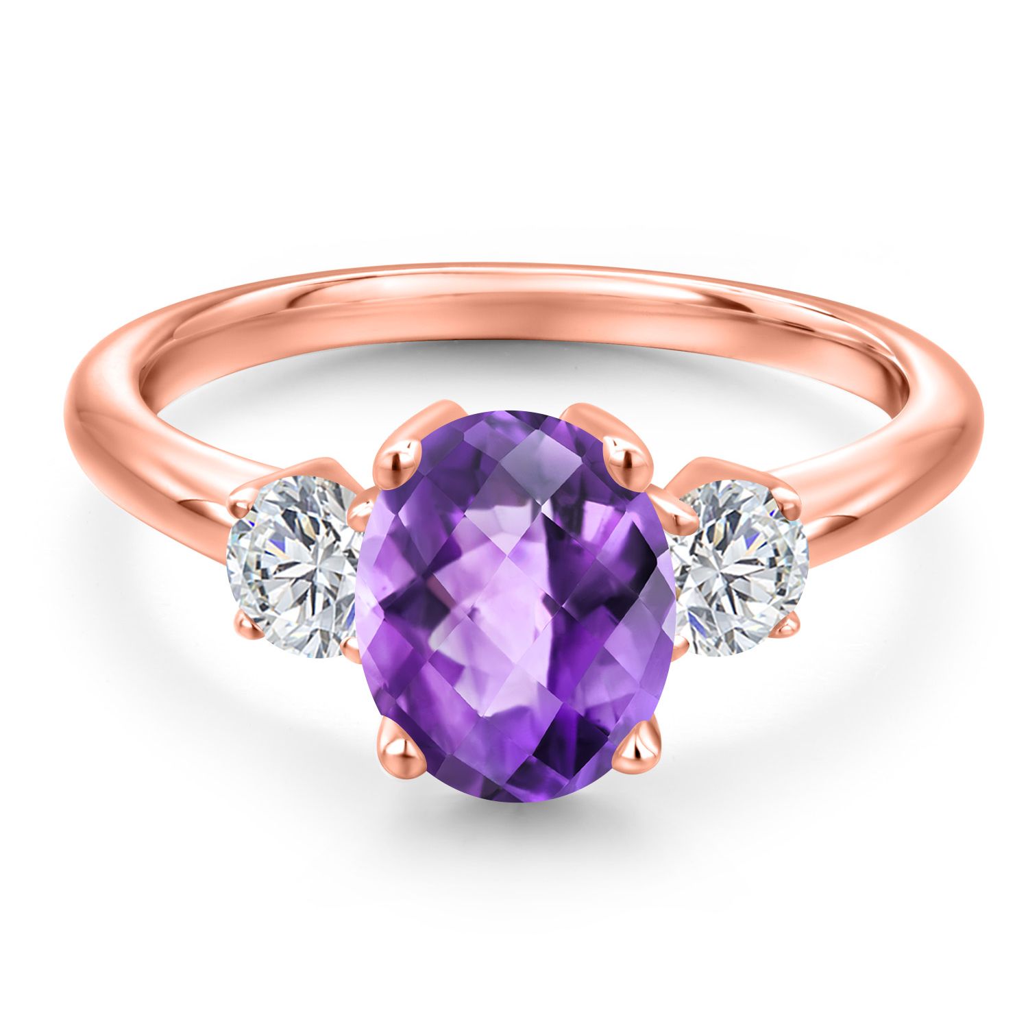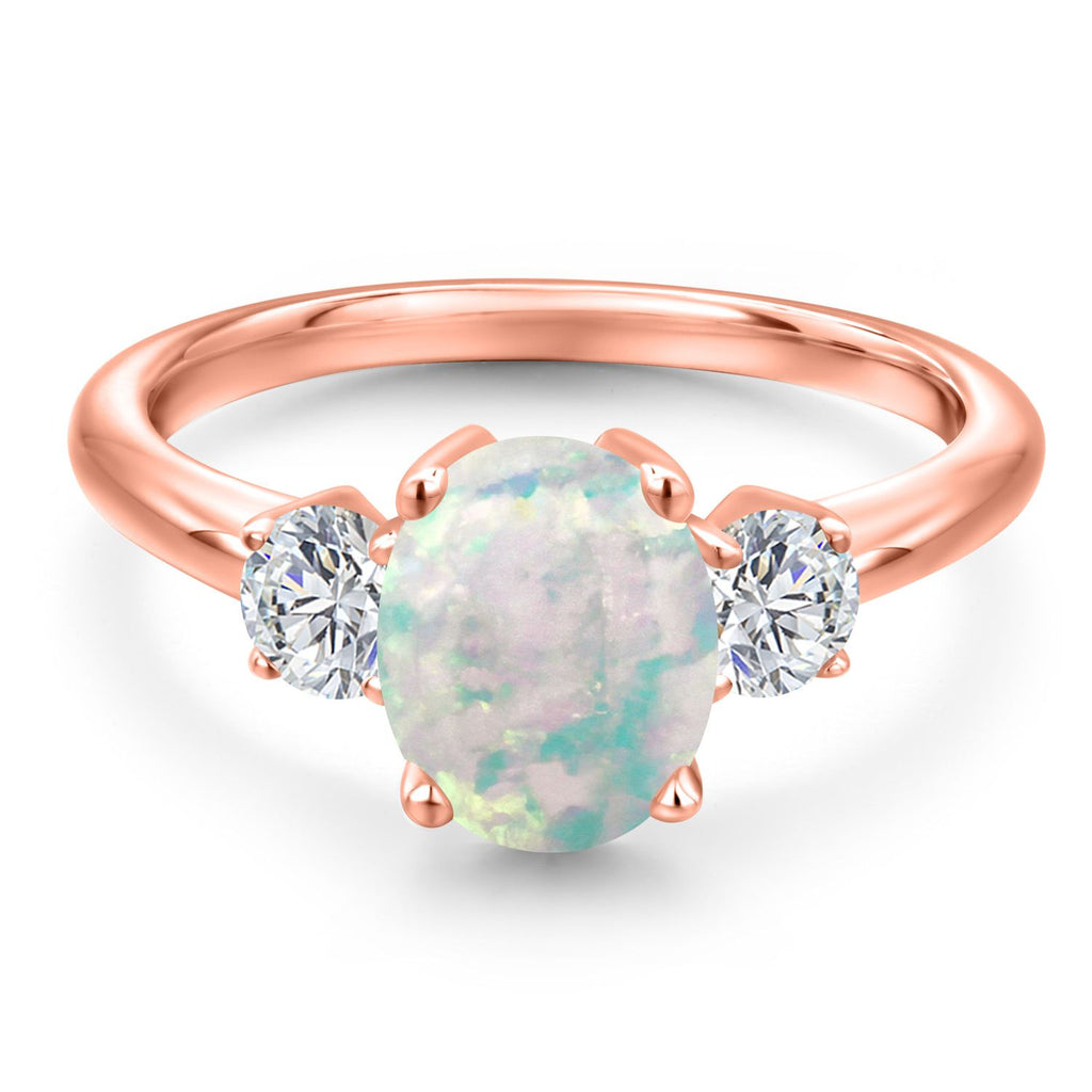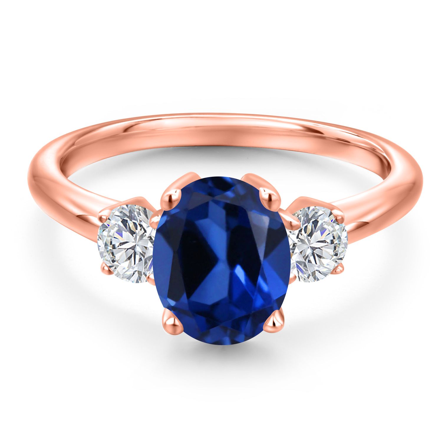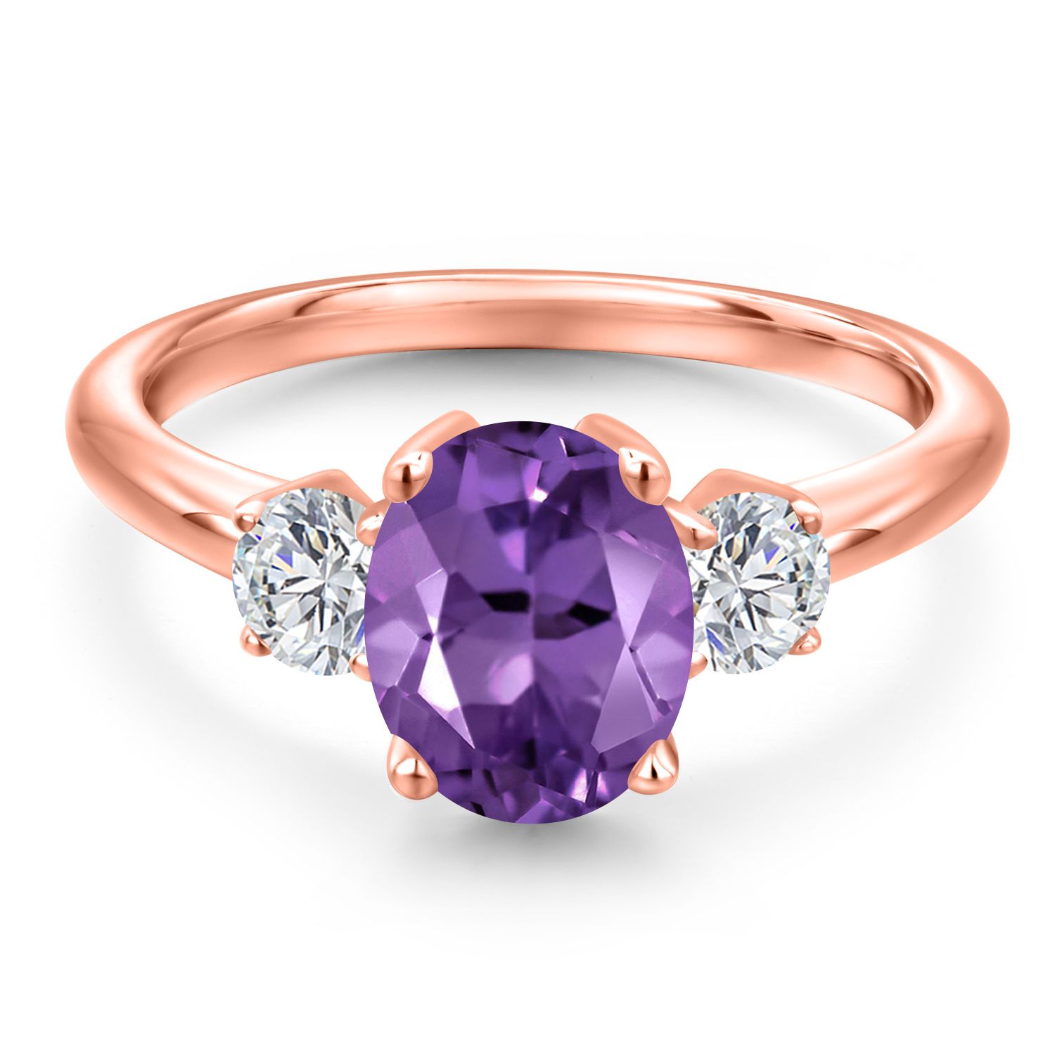 18K Rose Gold Plated Silver Gemstone Birthstone and Lab Grown Diamond 3-Stone Engagement Ring for Women | Oval 9X7MM and Round 4MM | Three Stone Wedding Anniversary Promise Ring | Sizes 5, 6, 7, 8, 9