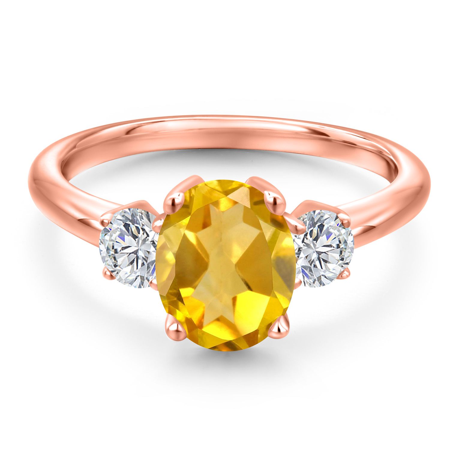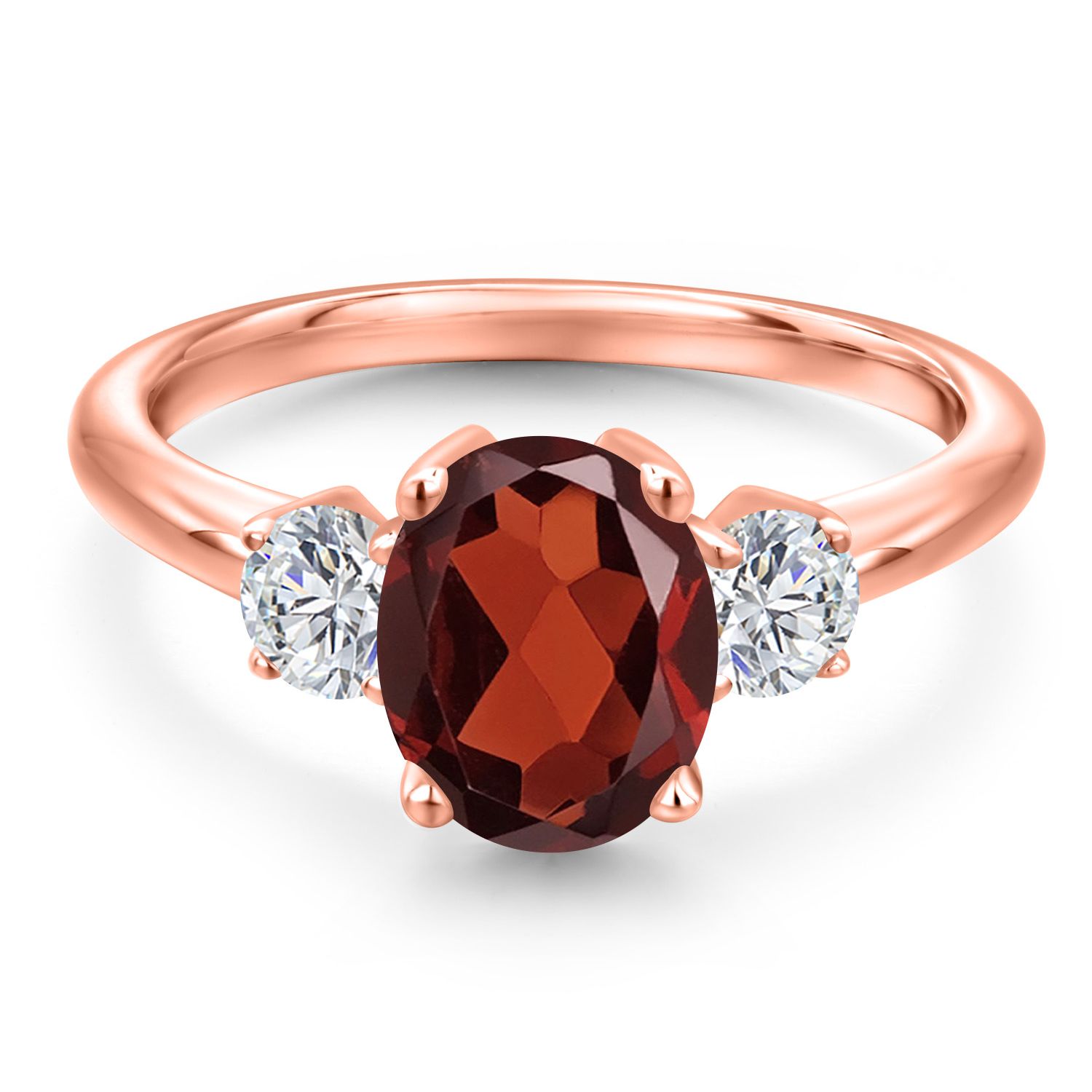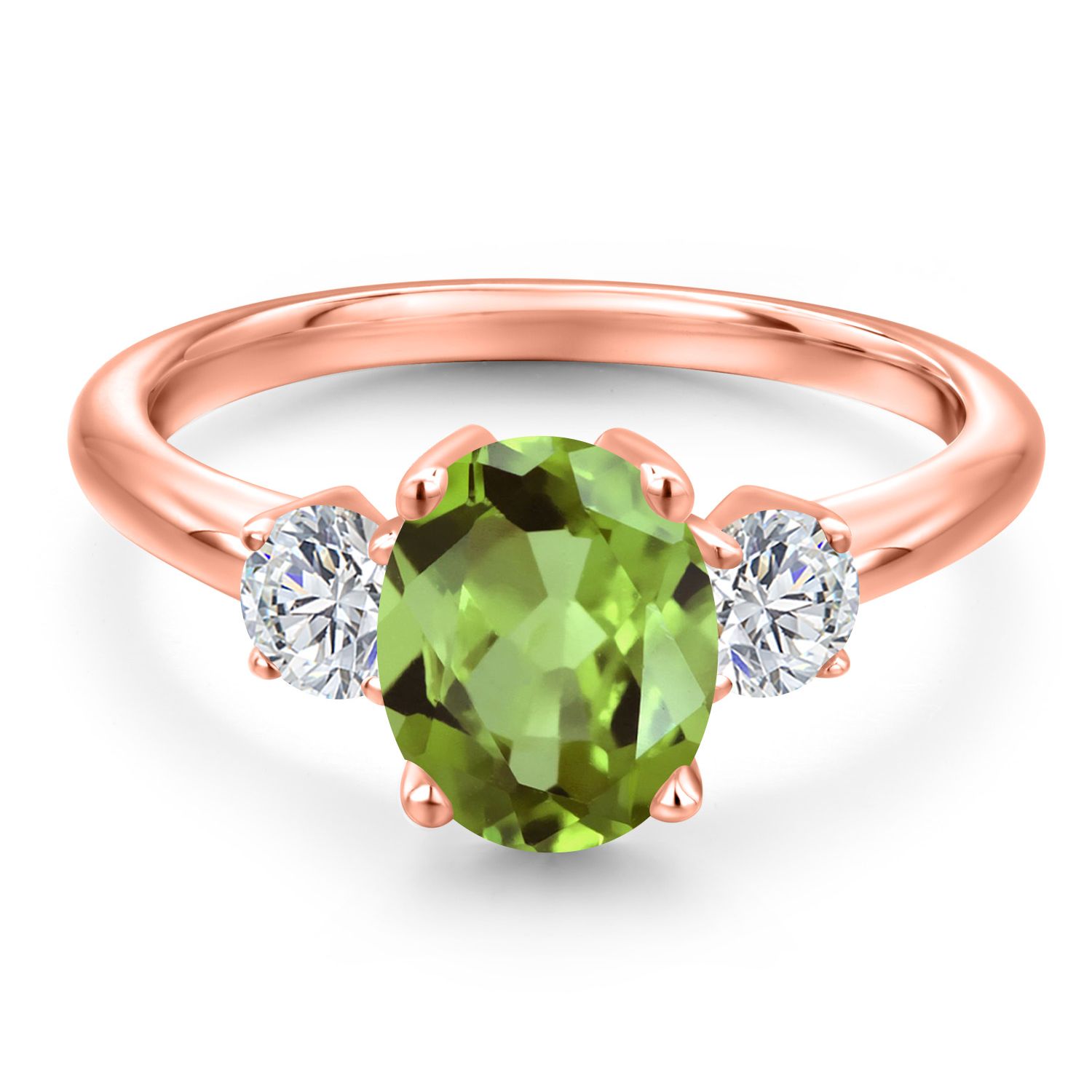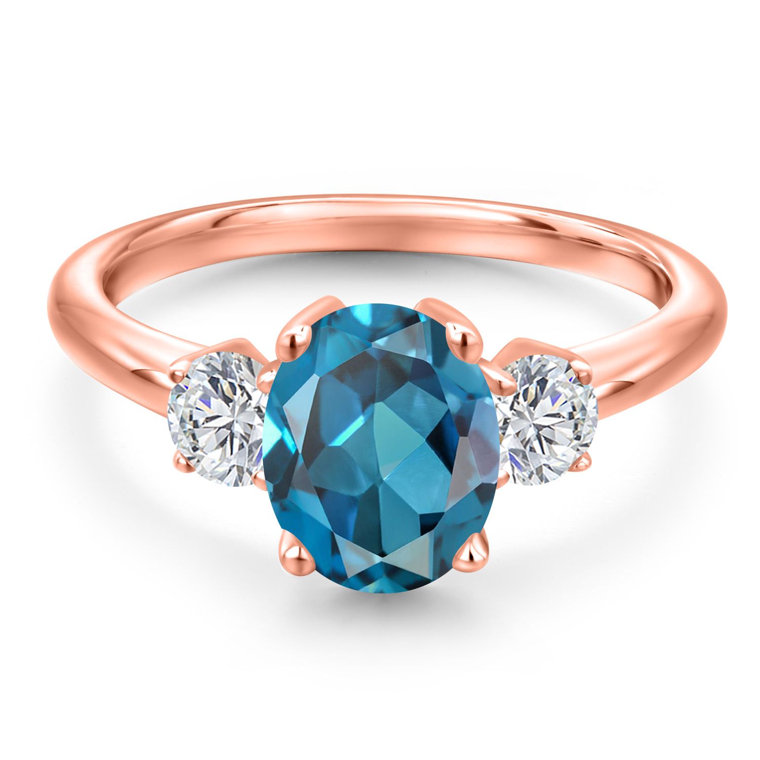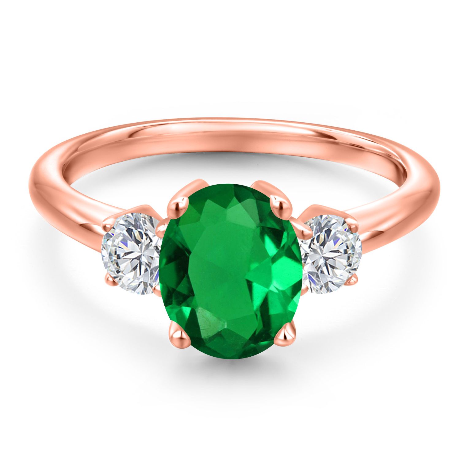 18K Rose Gold Plated Silver Gemstone Birthstone and Lab Grown Diamond 3-Stone Engagement Ring for Women | Oval 9X7MM and Round 4MM | Three Stone Wedding Anniversary Promise Ring | Sizes 5, 6, 7, 8, 9