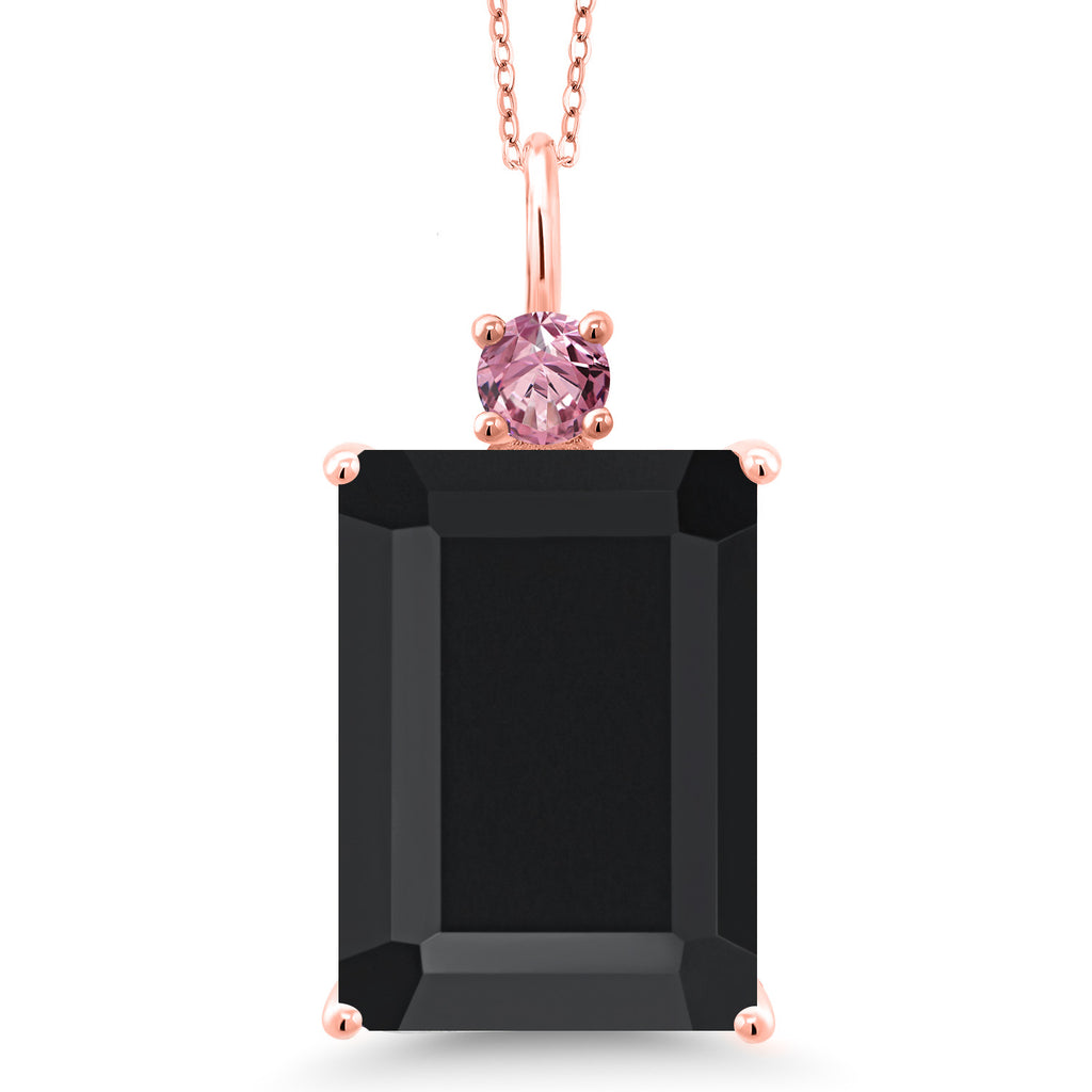 18K Rose Gold Plated Silver Gemstone Birthstone and Pink Lab Grown Diamond Pendant Necklace for Women | Emerald Cut 18X13MM and Round 4MM | With 18 Inch Chain | Fine Jewelry for Her Mom Wife