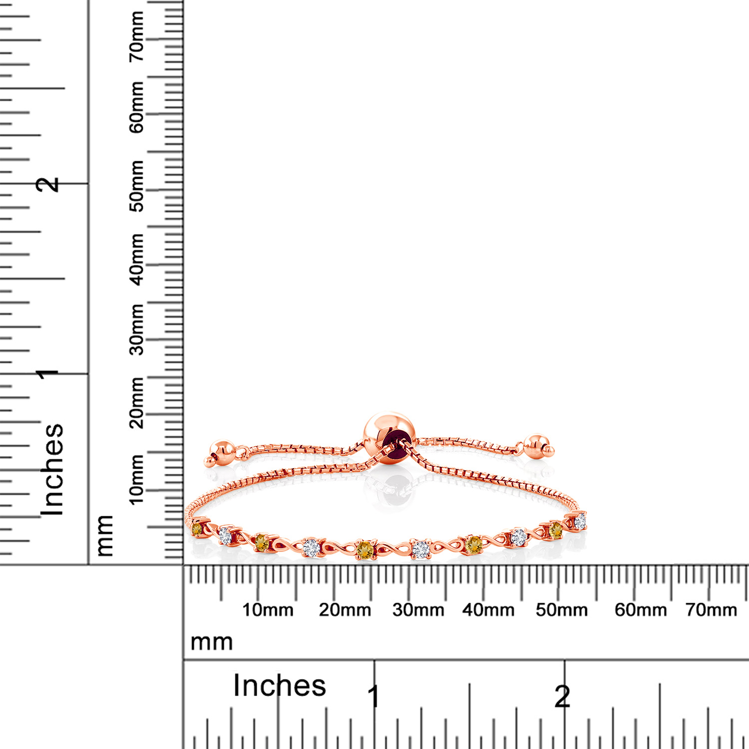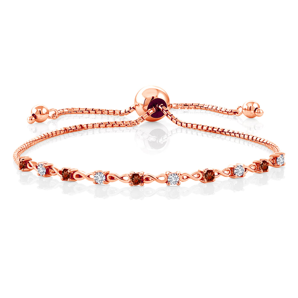 18K Rose Gold Plated Silver Gemstone Birthstone and White Lab Grown Diamond Infinity Tennis Bracelet For Women | Round 2.5MM | Adjustable Bolo Bracelet Up to 9 Inch | Easy-On Easy-Off