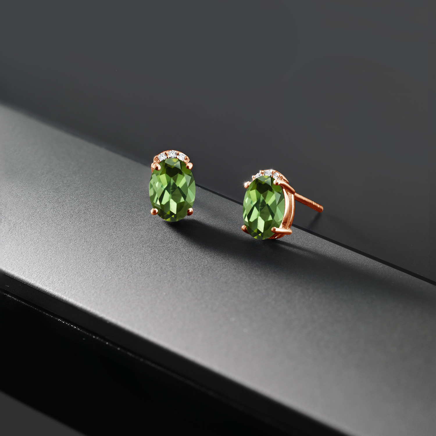 DIAMOND ACCENT BRILLIANCE: Above each gemstone rests a row of sparkling round white lab grown diamonds, adding brilliance and contrast to the vibrant center stone. The diamonds’ precise cut and clarity enhance the gemstone’s natural color, creating a luminous combination of light and depth. This elegant design detail elevates classic studs into refined statement earrings that shimmer effortlessly in any setting.