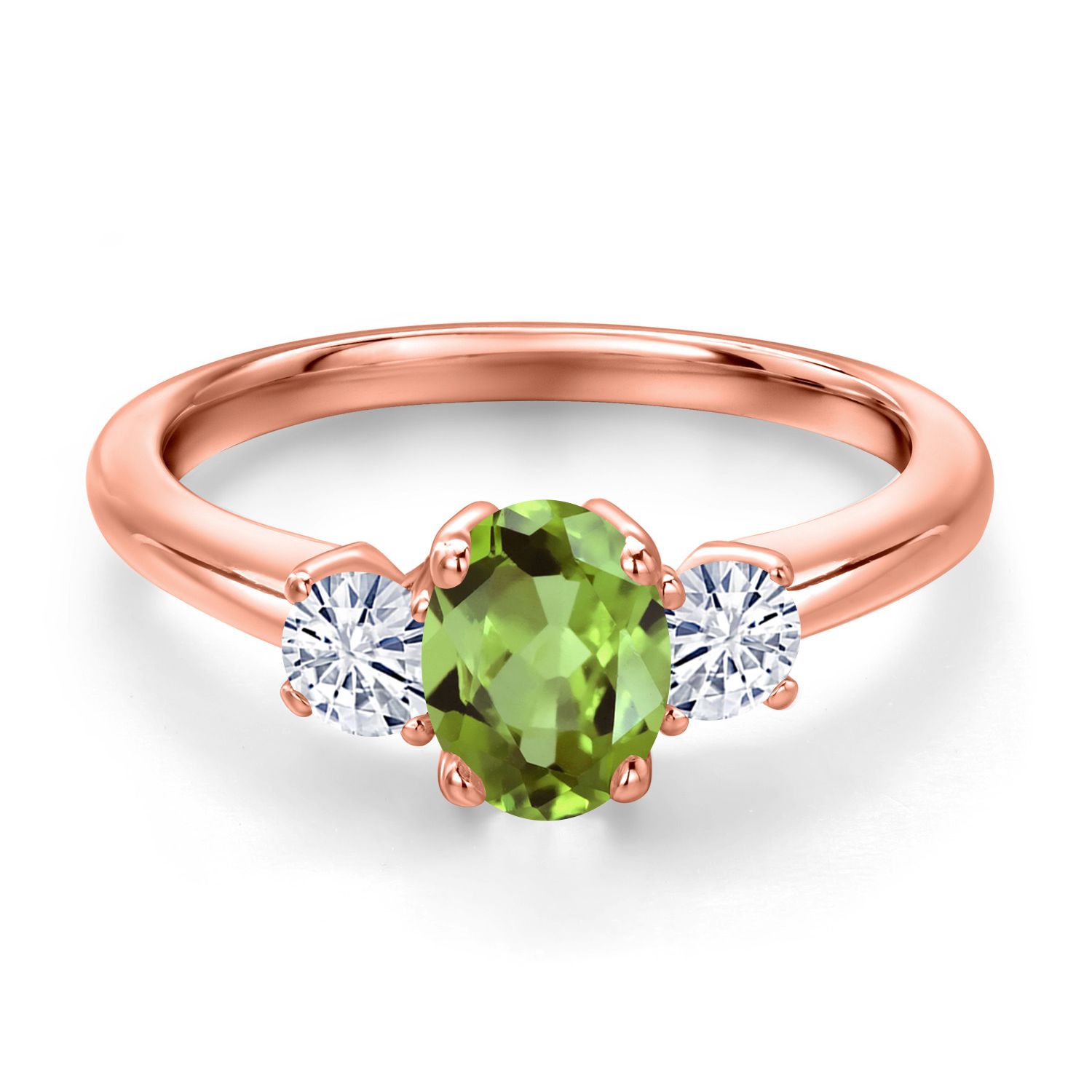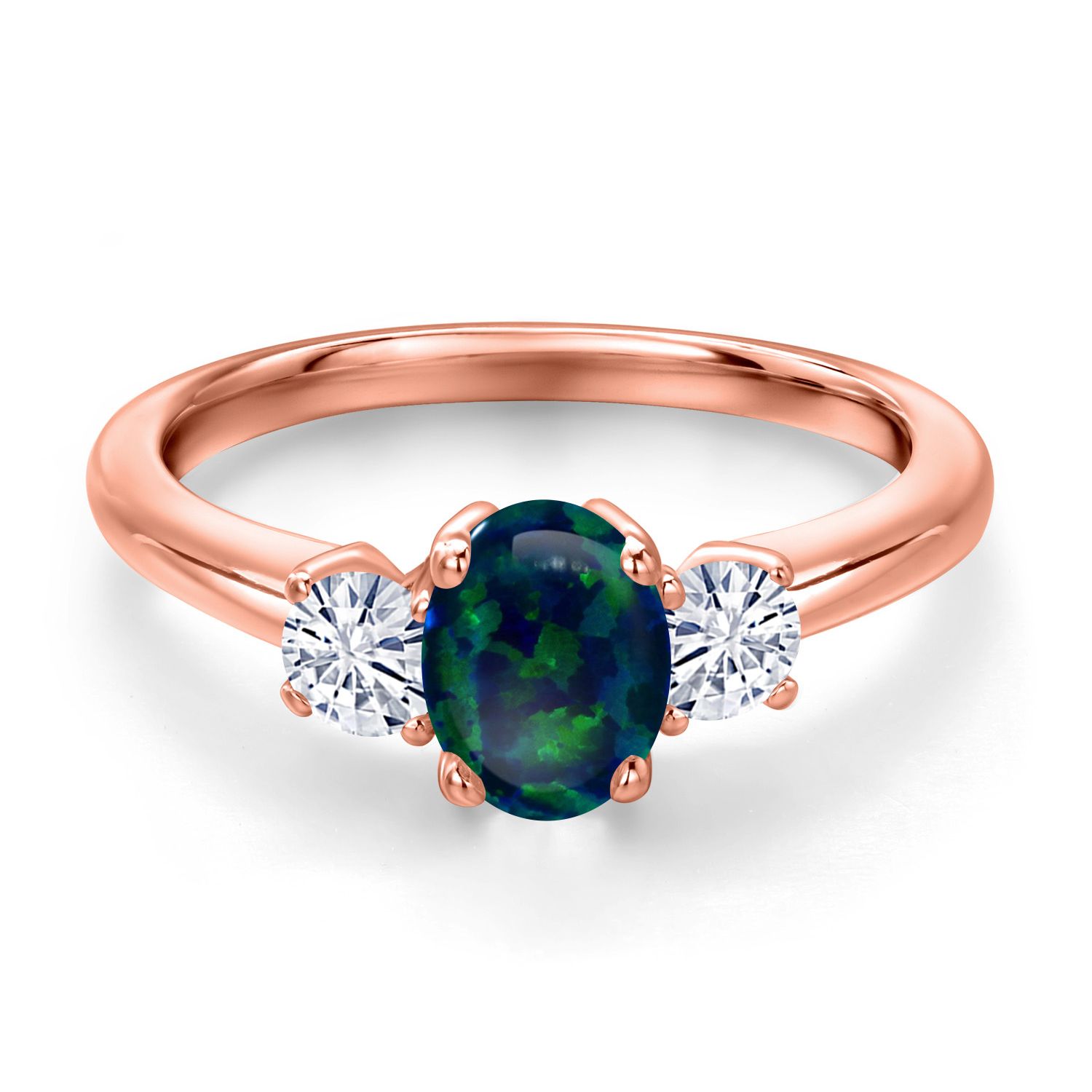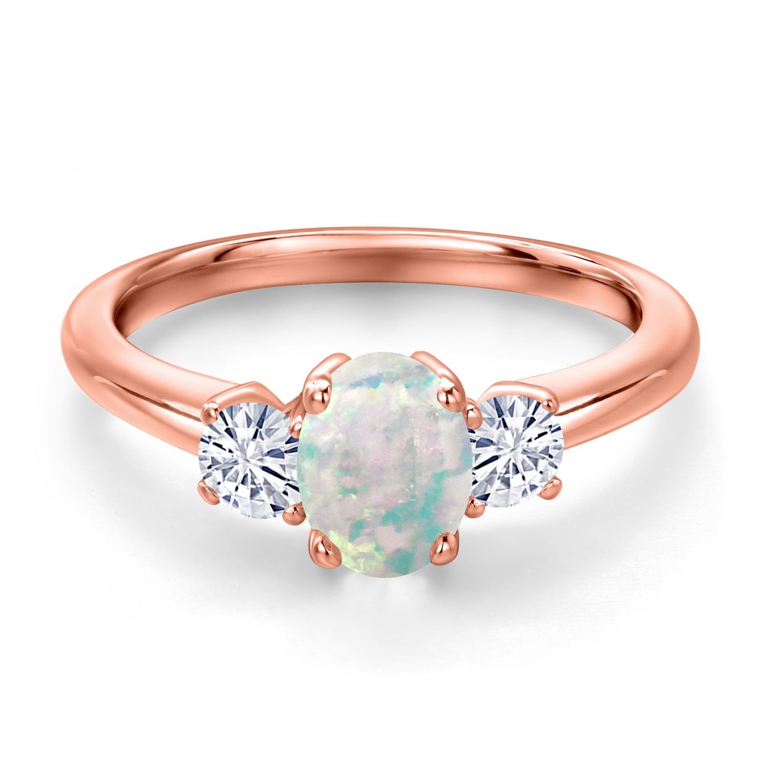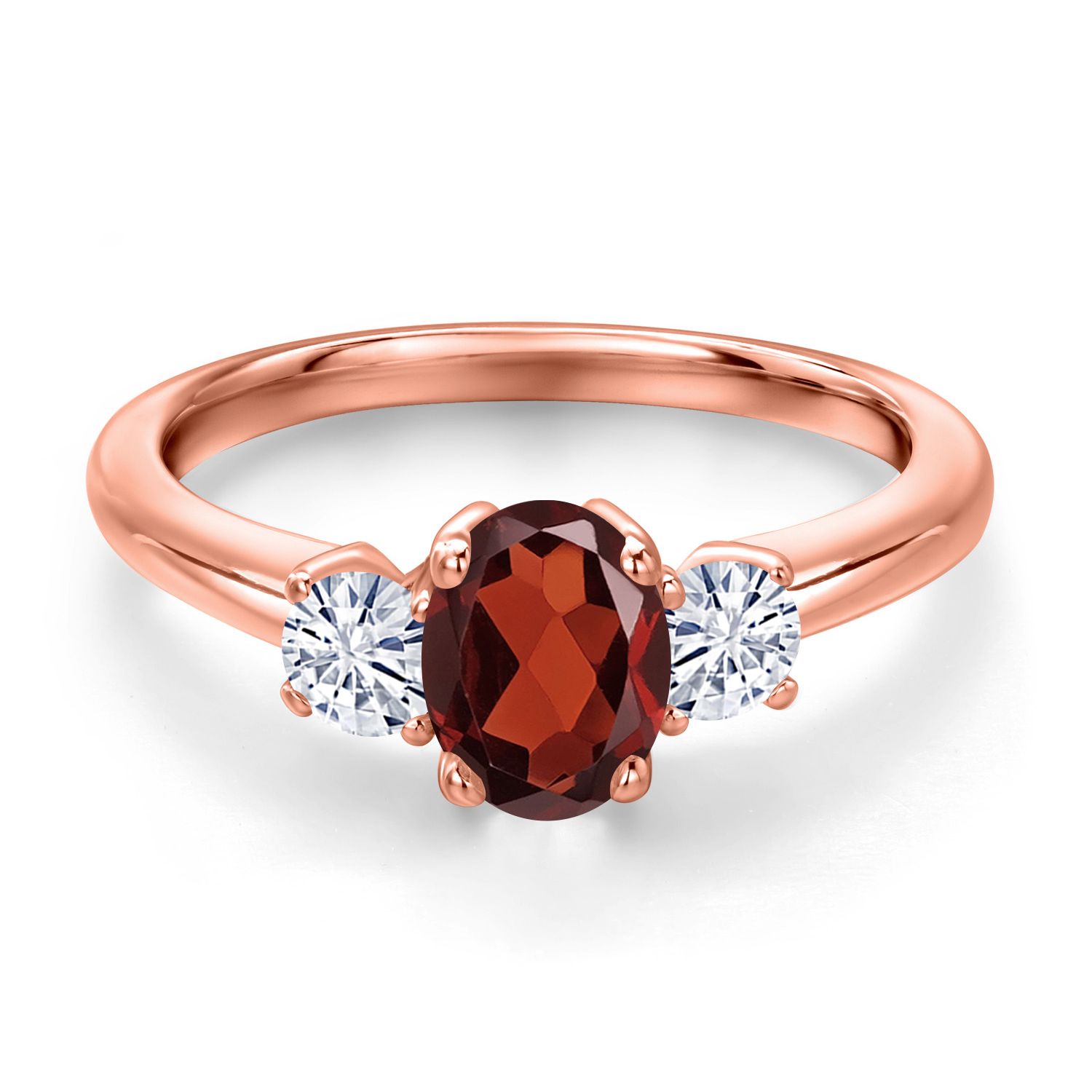 18K Rose Gold Plated Silver Gemstone Birthstone and White Moissanite 3-Stone Engagement Ring for Women | Oval 7X5MM and Round 3MM | Wedding Anniversary Promise Ring | Sizes 5, 6, 7, 8, 9