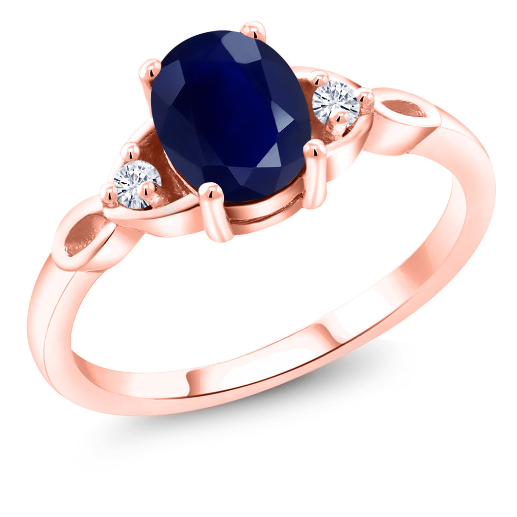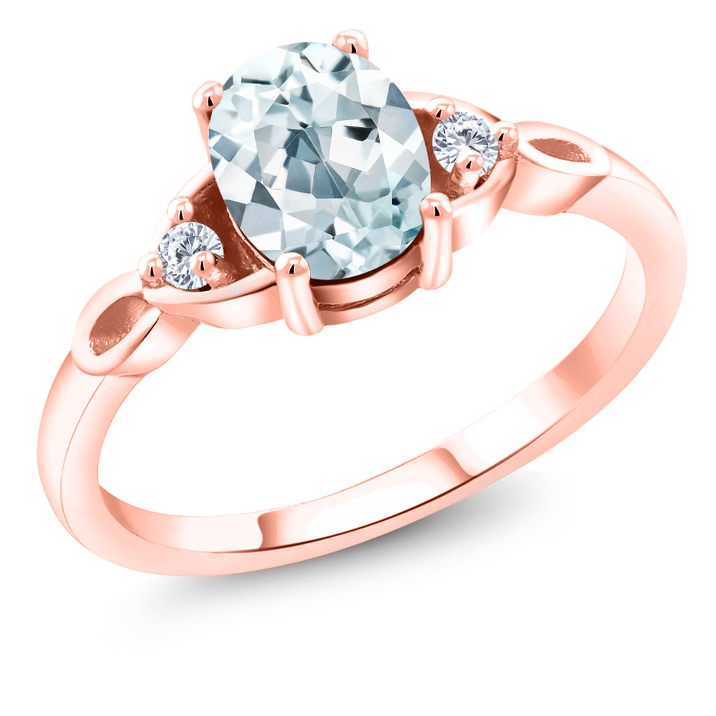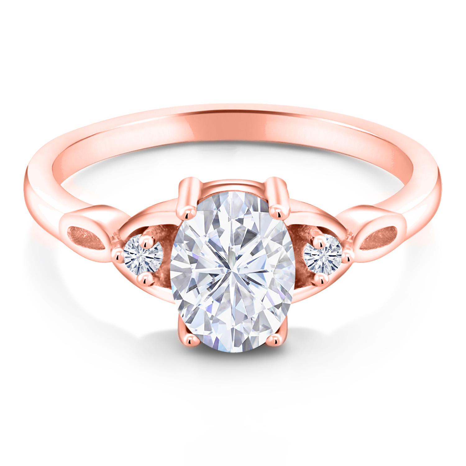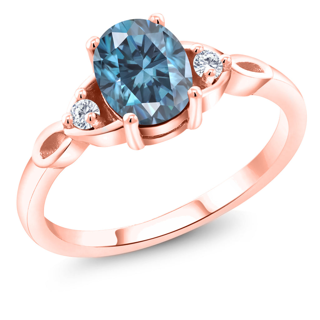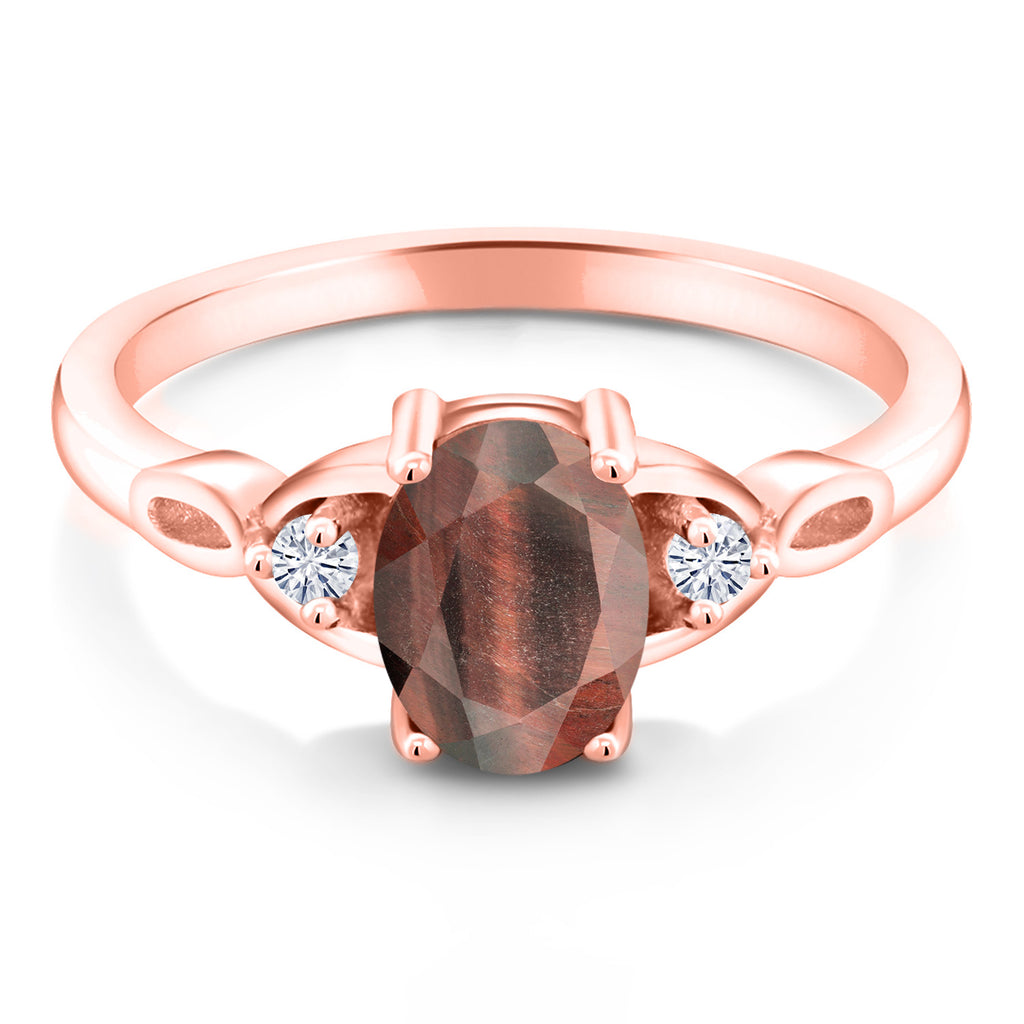 18K Rose Gold Plated Silver Gemstone Birthstone and White Moissanite 3-Stone Ring for Women | Oval 8X6MM with 2MM Round Accents | Three Stone Wedding Anniversary Engagement Promise Ring | Sizes 5-9