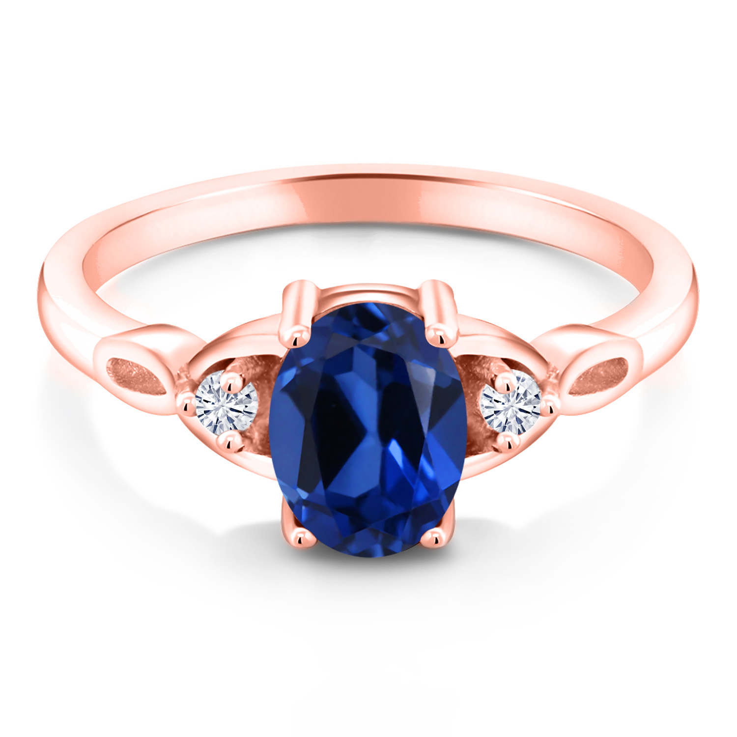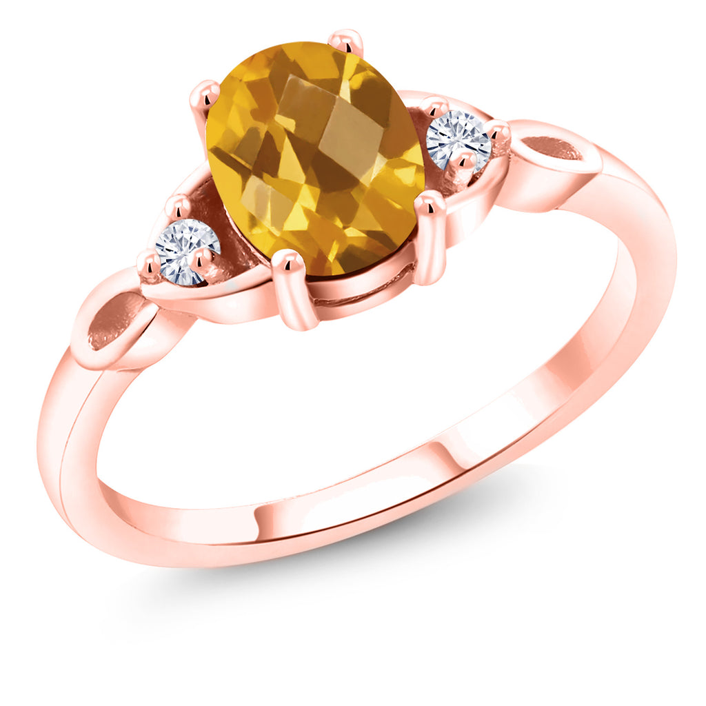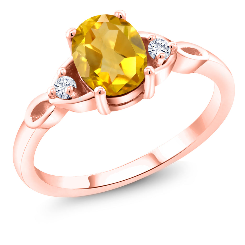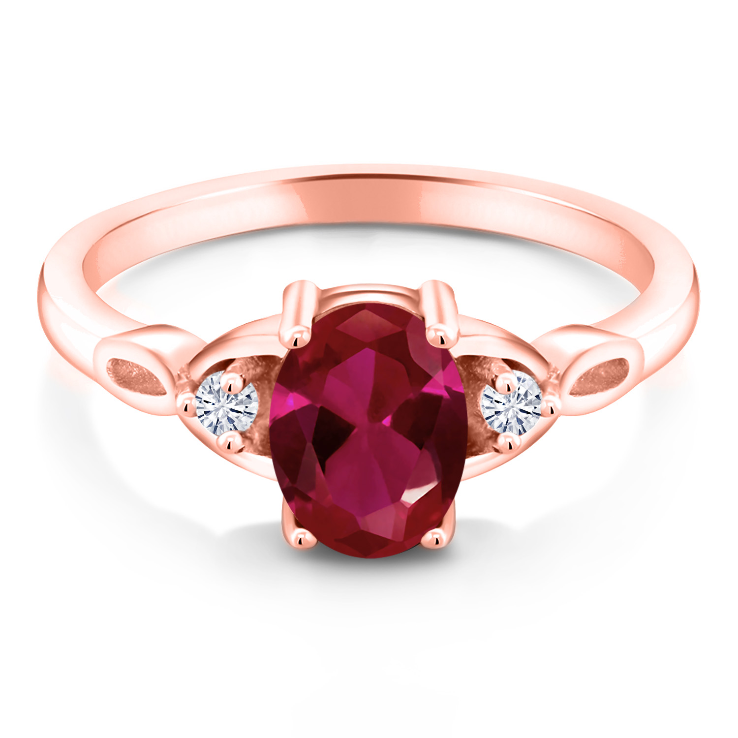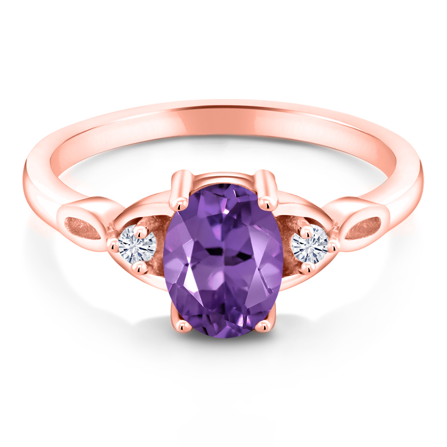 18K Rose Gold Plated Silver Gemstone Birthstone and White Moissanite 3-Stone Ring for Women | Oval 8X6MM with 2MM Round Accents | Three Stone Wedding Anniversary Engagement Promise Ring | Sizes 5-9