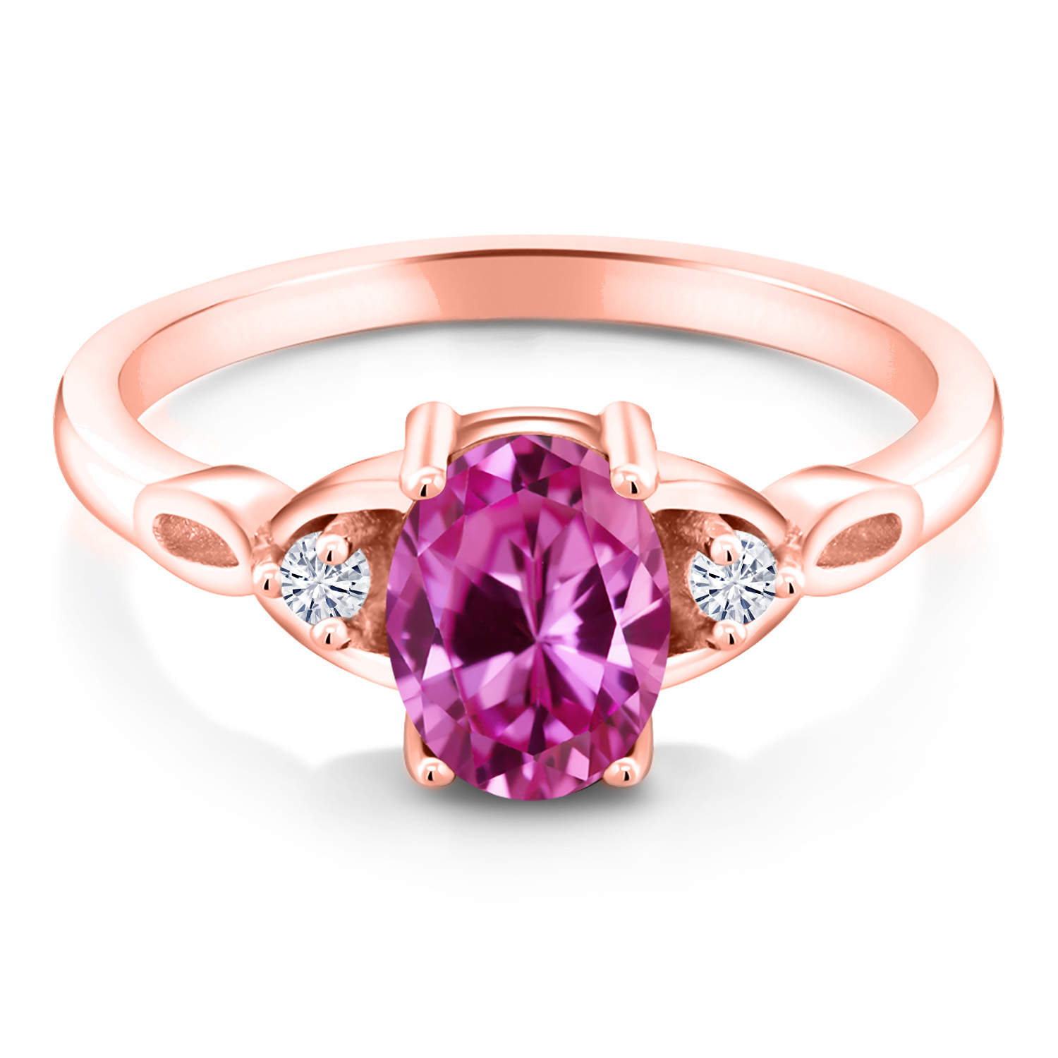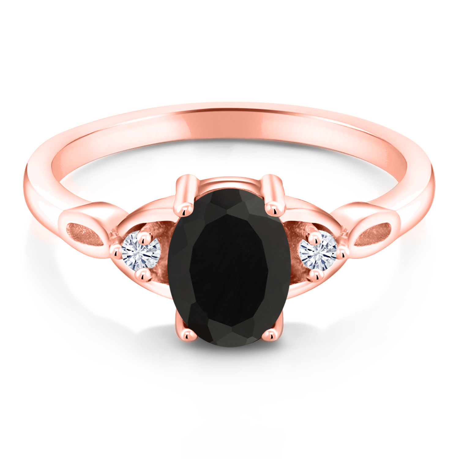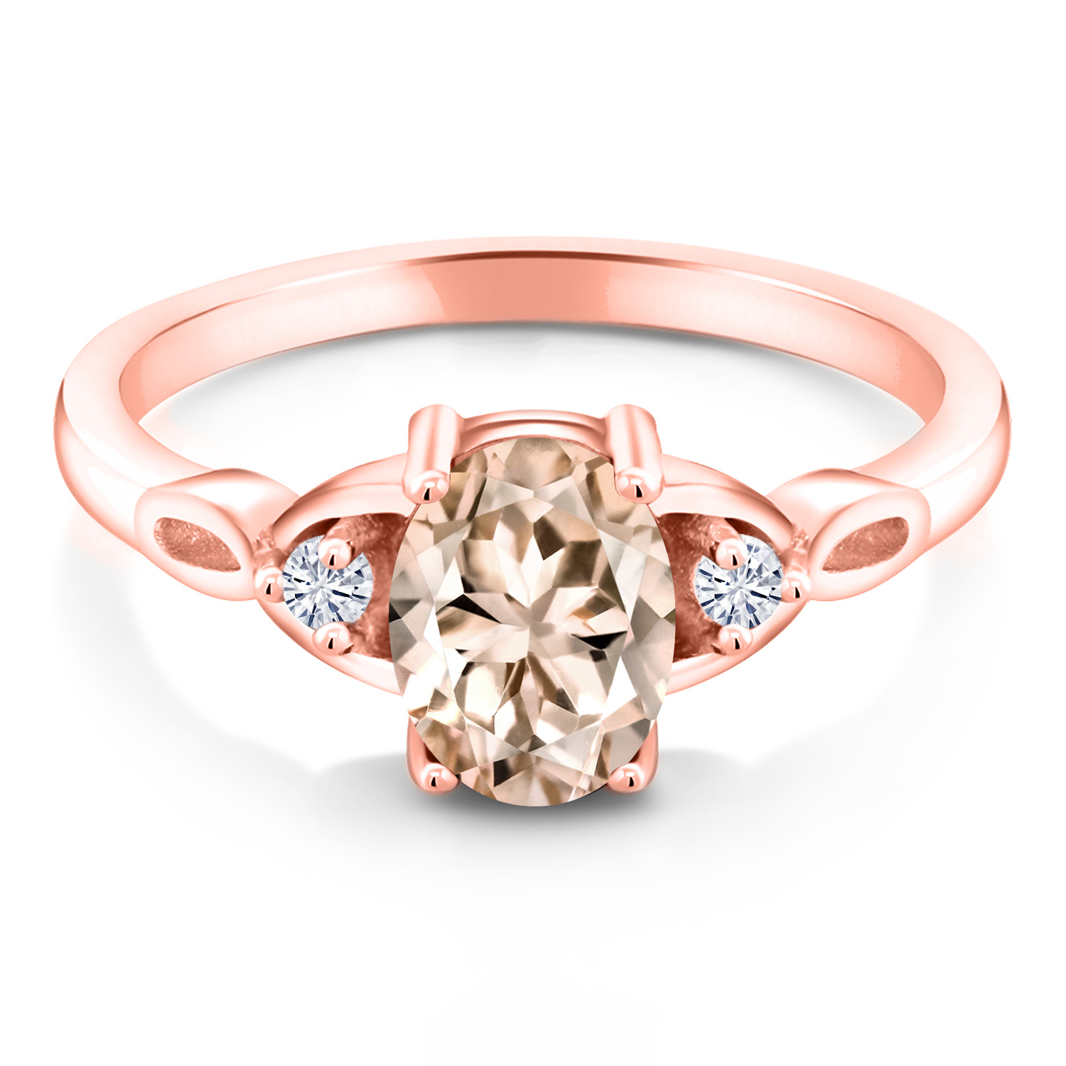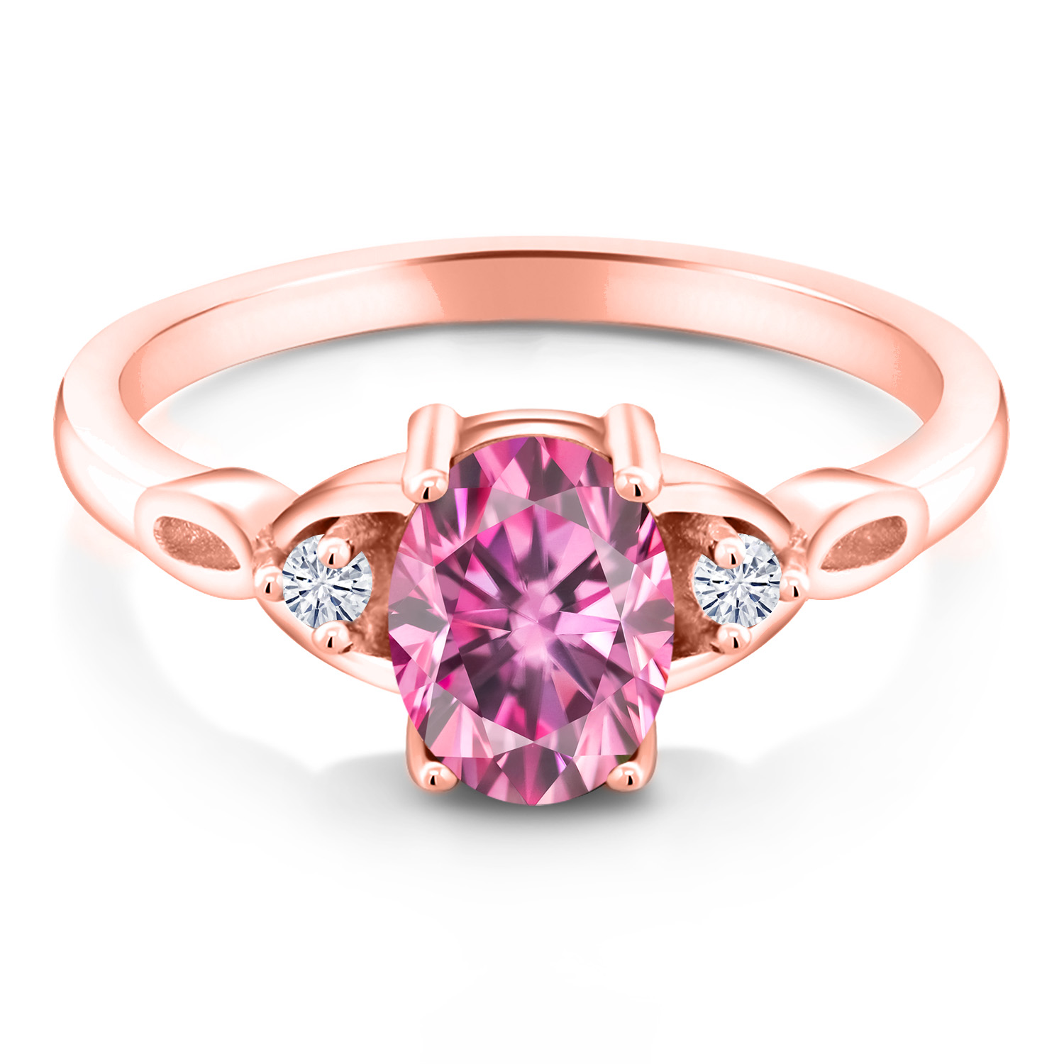18K Rose Gold Plated Silver Gemstone Birthstone and White Moissanite 3-Stone Ring for Women | Oval 8X6MM with 2MM Round Accents | Three Stone Wedding Anniversary Engagement Promise Ring | Sizes 5-9