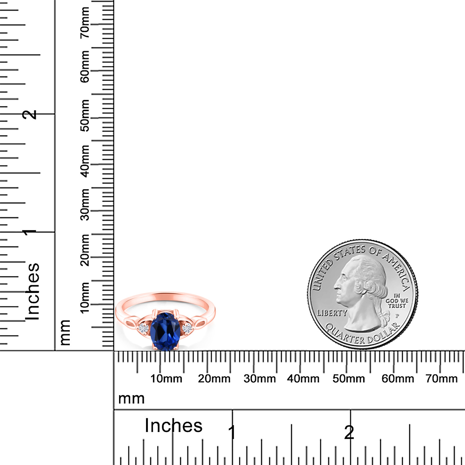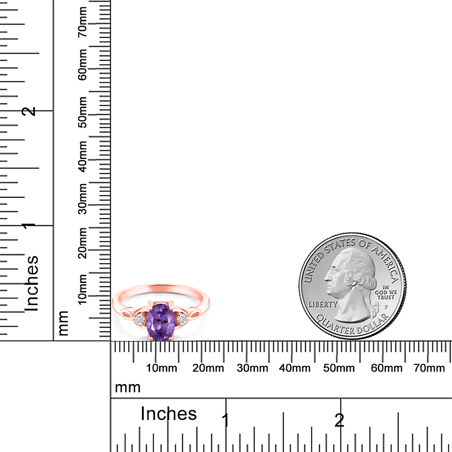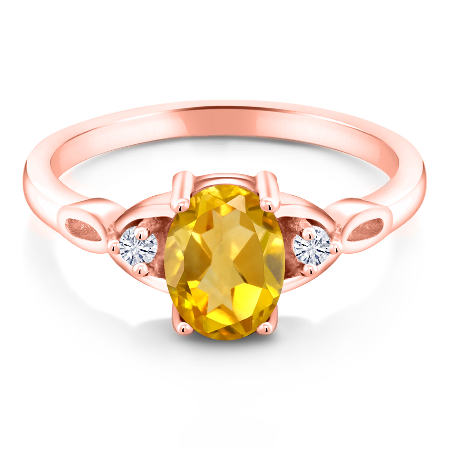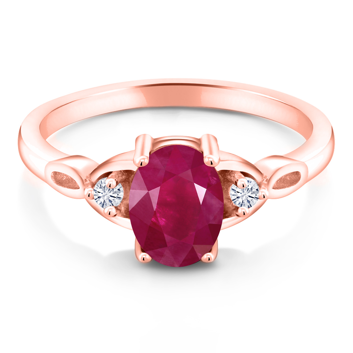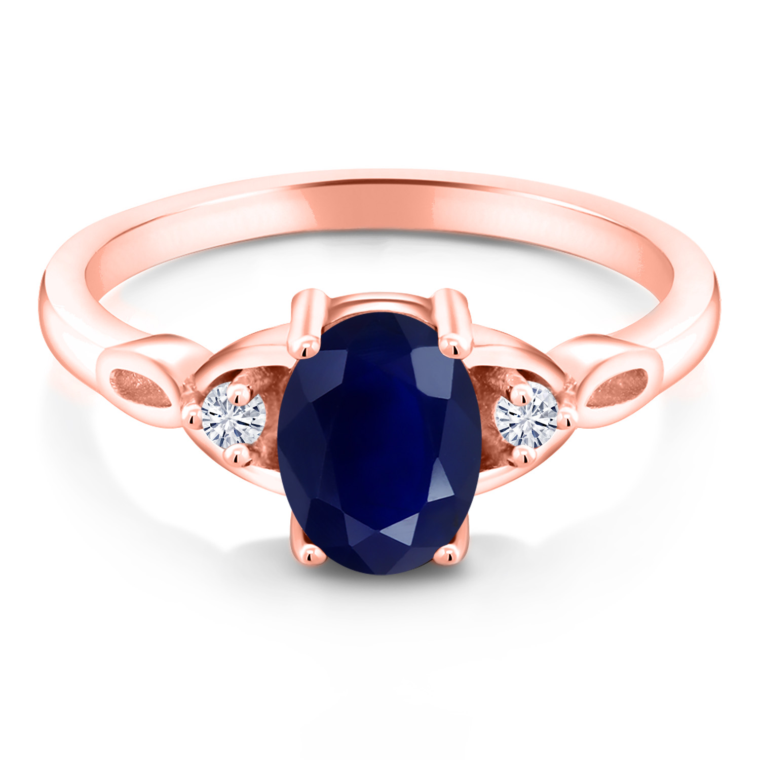 18K Rose Gold Plated Silver Gemstone Birthstone and White Moissanite 3-Stone Ring for Women | Oval 8X6MM with 2MM Round Accents | Three Stone Wedding Anniversary Engagement Promise Ring | Sizes 5-9
