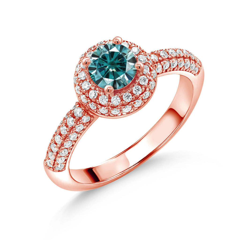 18K Rose Gold Plated Silver Gemstone Birthstone and White Moissanite Halo Engagement Ring For Women | Round 5MM | Wedding Anniversary Promise Ring | Available In Size 5, 6, 7, 8, 9