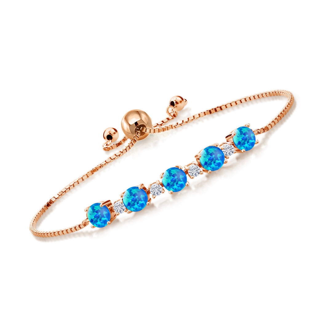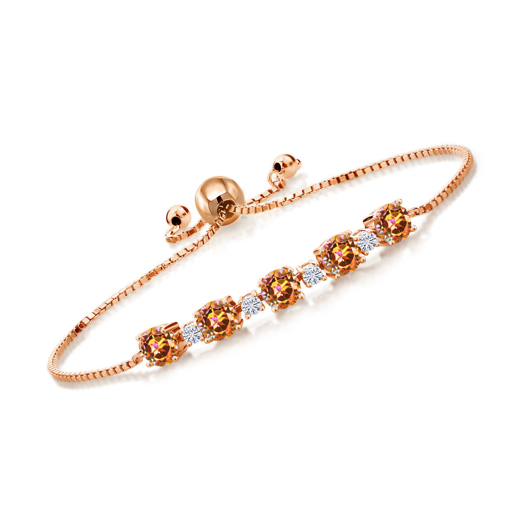 18K Rose Gold Plated Silver Gemstone Birthstone and White Moissanite Tennis Bracelet for Women | Round 5MM and 2.5MM | Adjustable Bolo Design | Easy-On Easy-Off | Fully Adjustable Up to 9 Inch