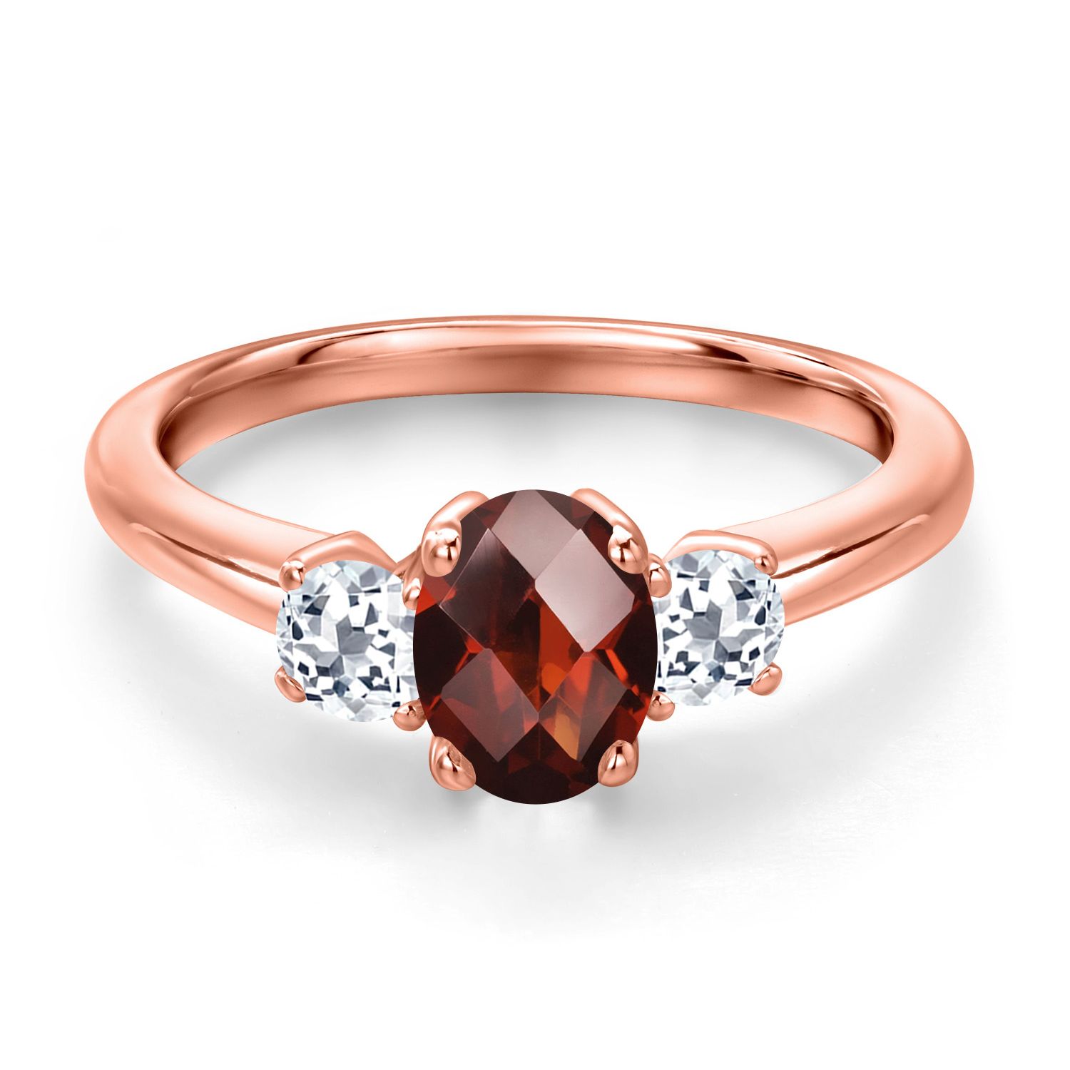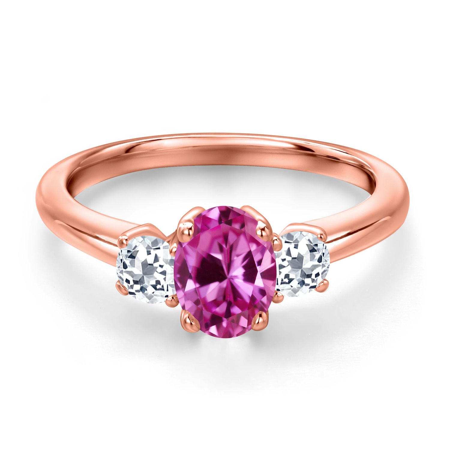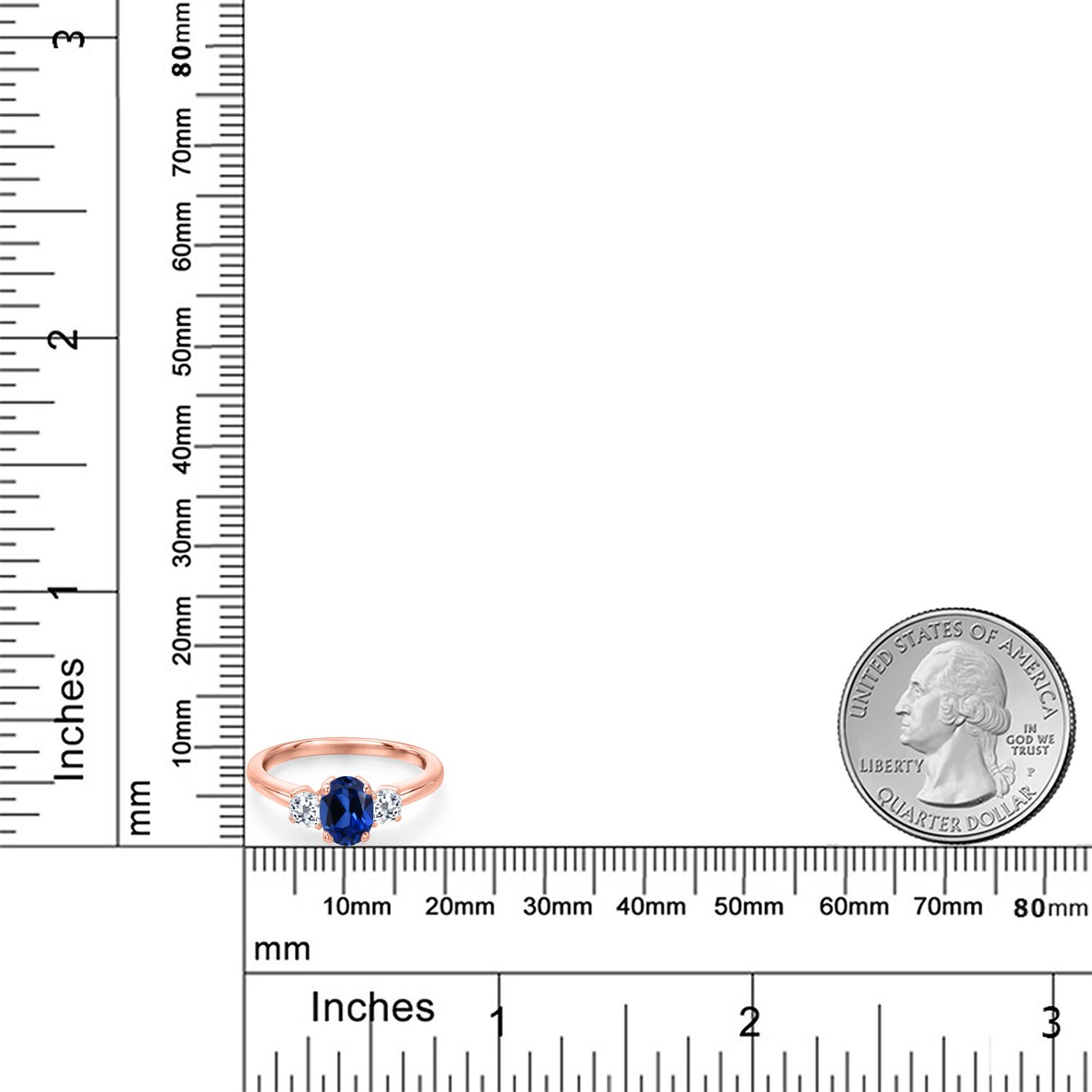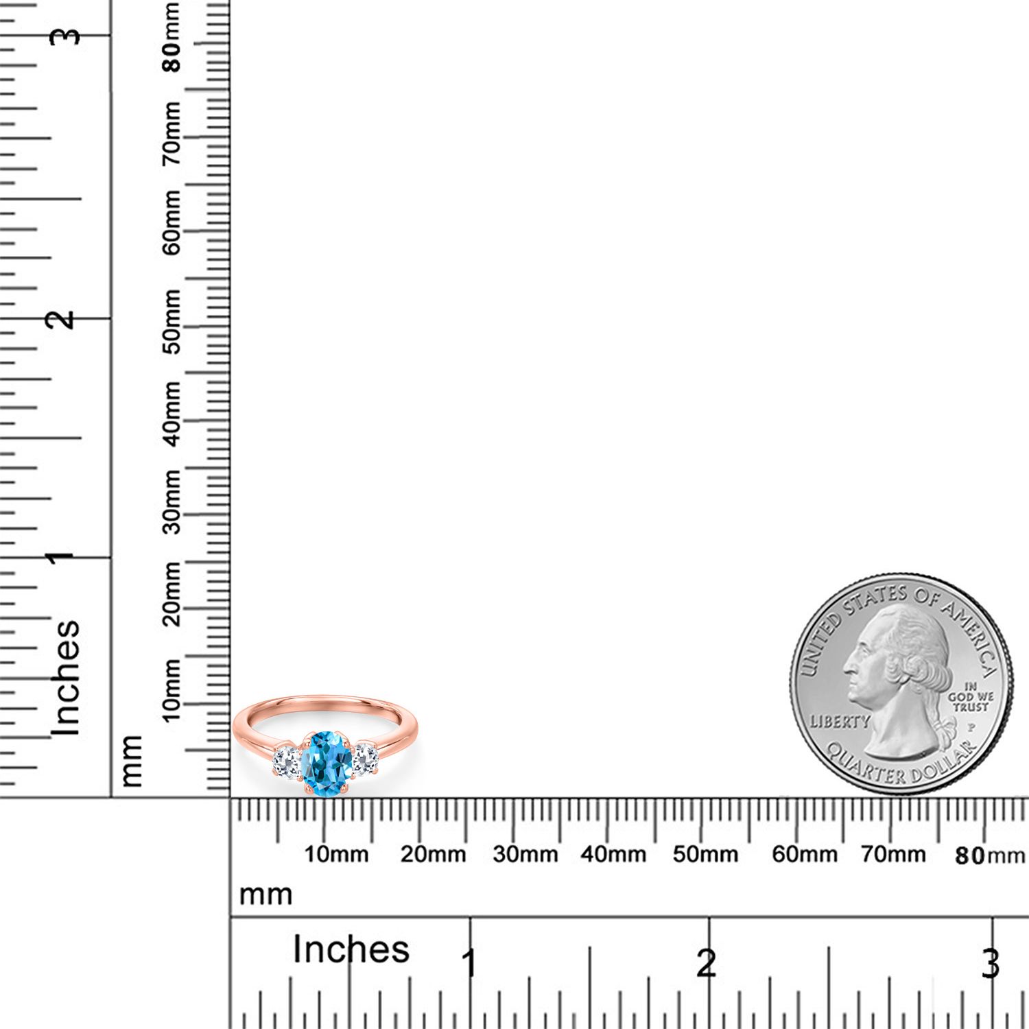 18K Rose Gold Plated Silver Gemstone Birthstone and White Topaz 3-Stone Engagement Ring for Women | Oval 7X5MM and Round 3MM | Wedding Anniversary Promise Ring | Sizes 5, 6, 7, 8, 9