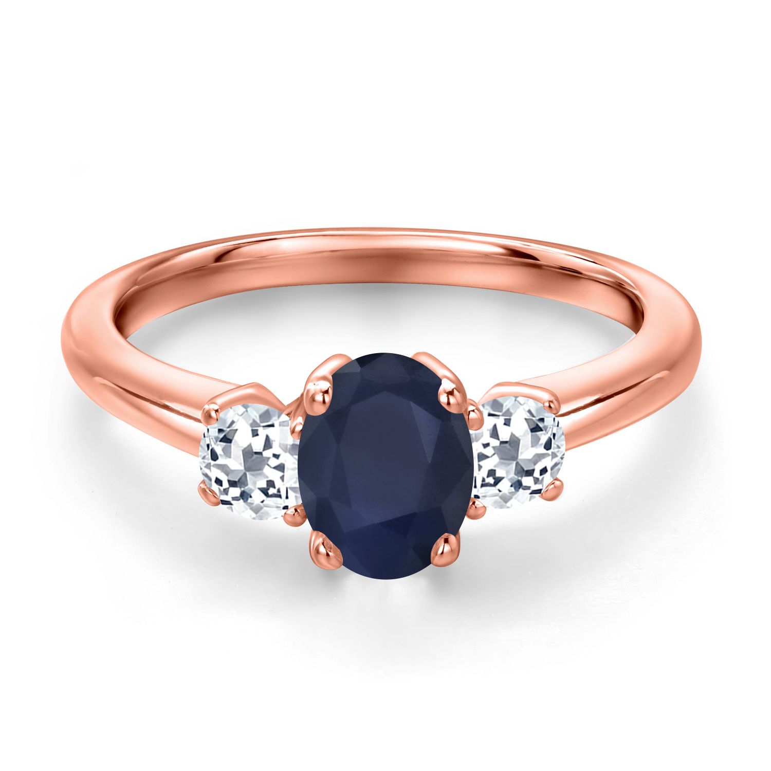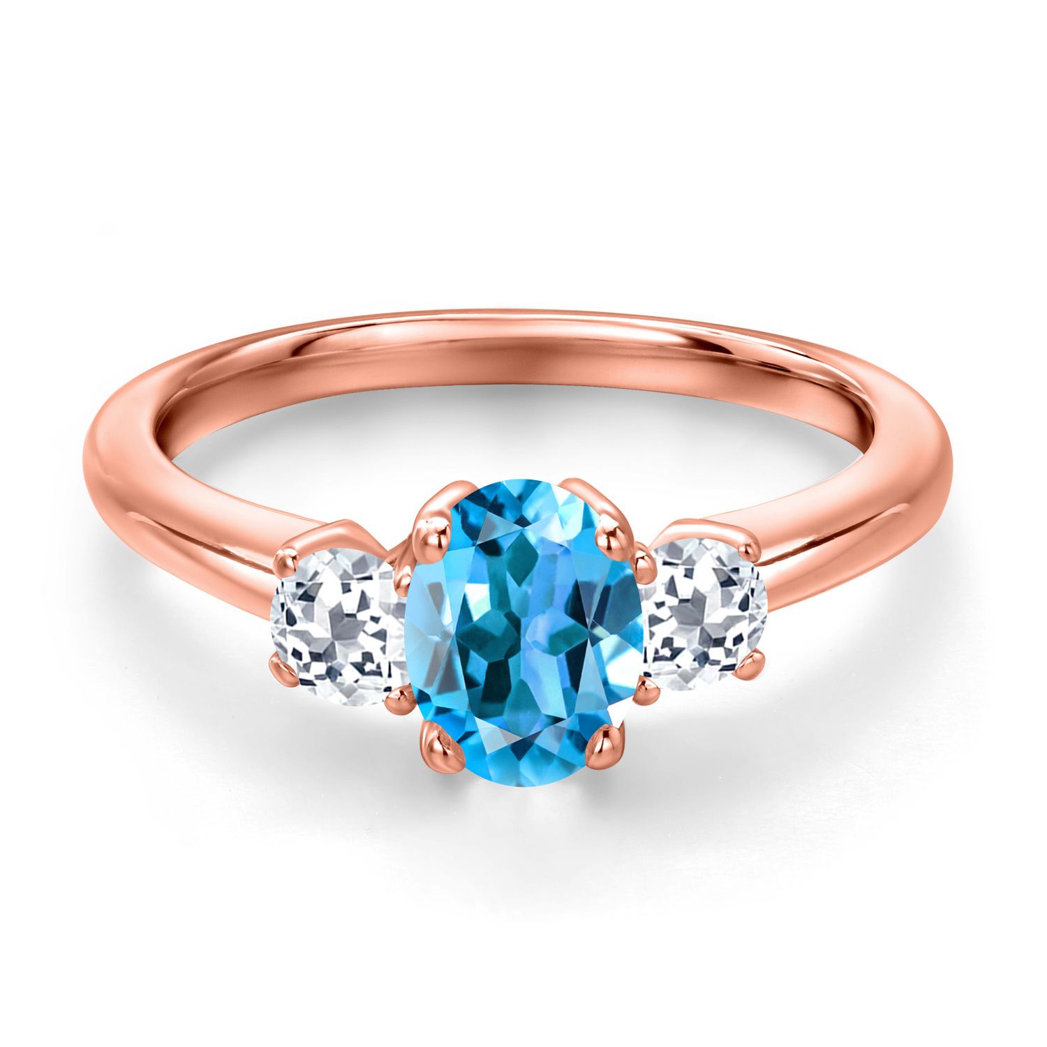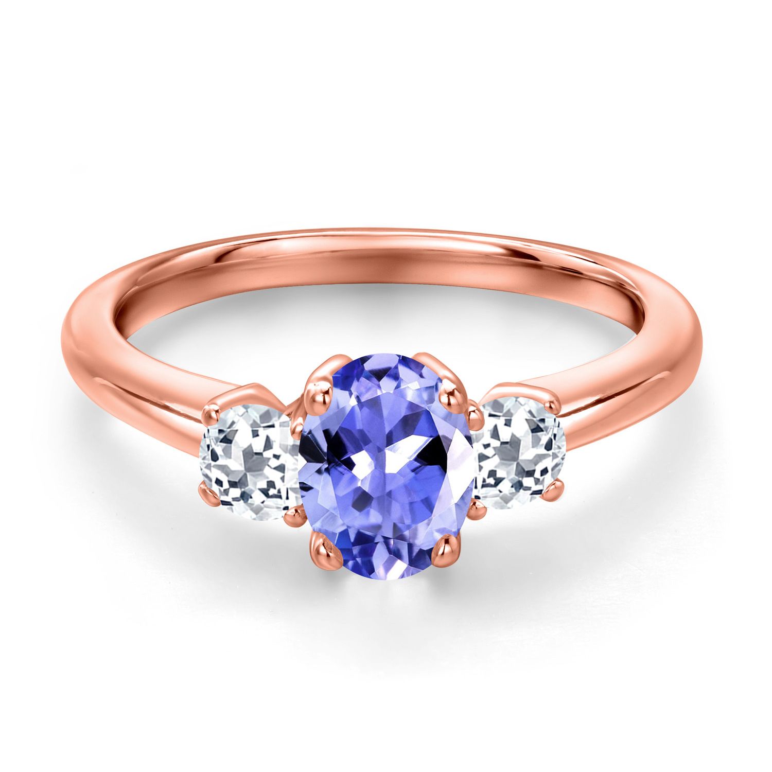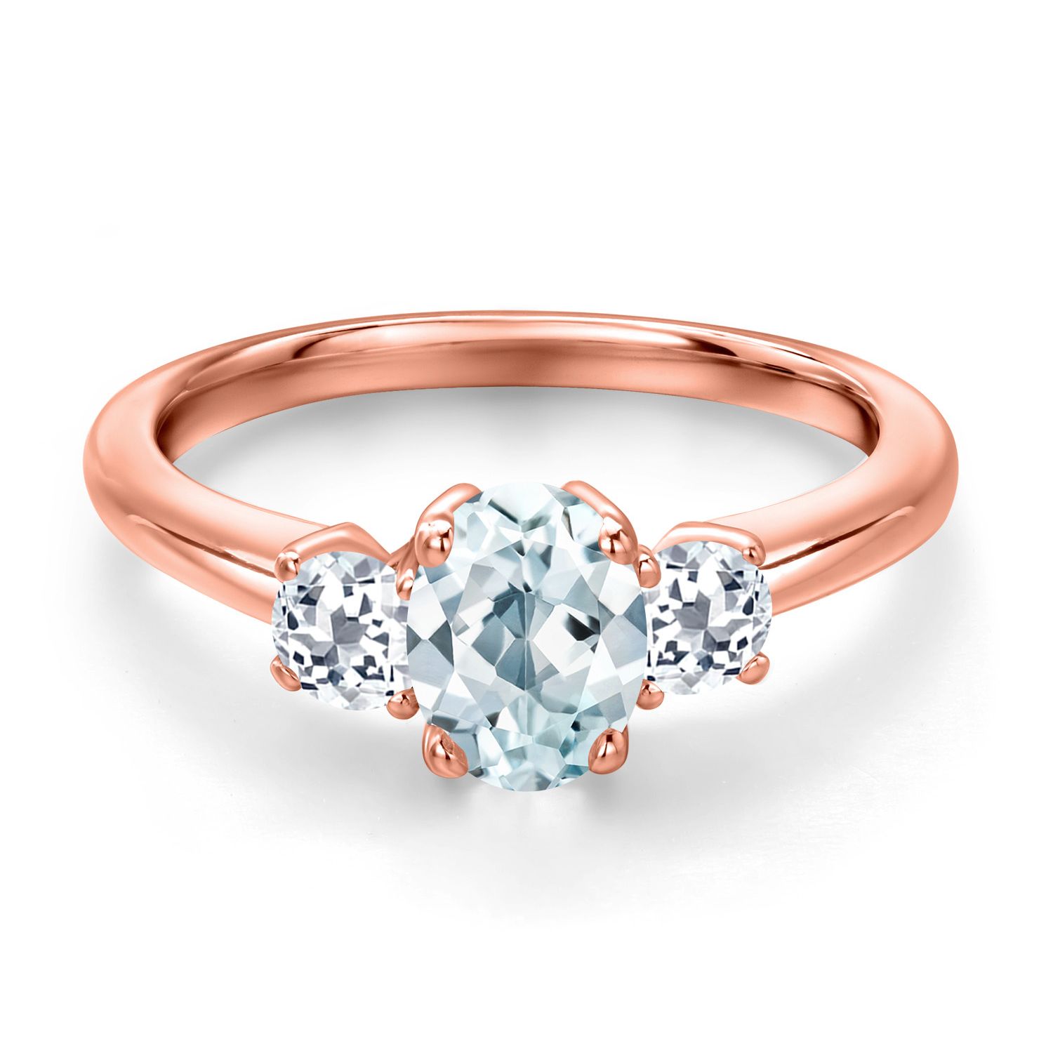 18K Rose Gold Plated Silver Gemstone Birthstone and White Topaz 3-Stone Engagement Ring for Women | Oval 7X5MM and Round 3MM | Wedding Anniversary Promise Ring | Sizes 5, 6, 7, 8, 9
