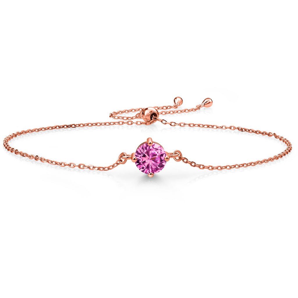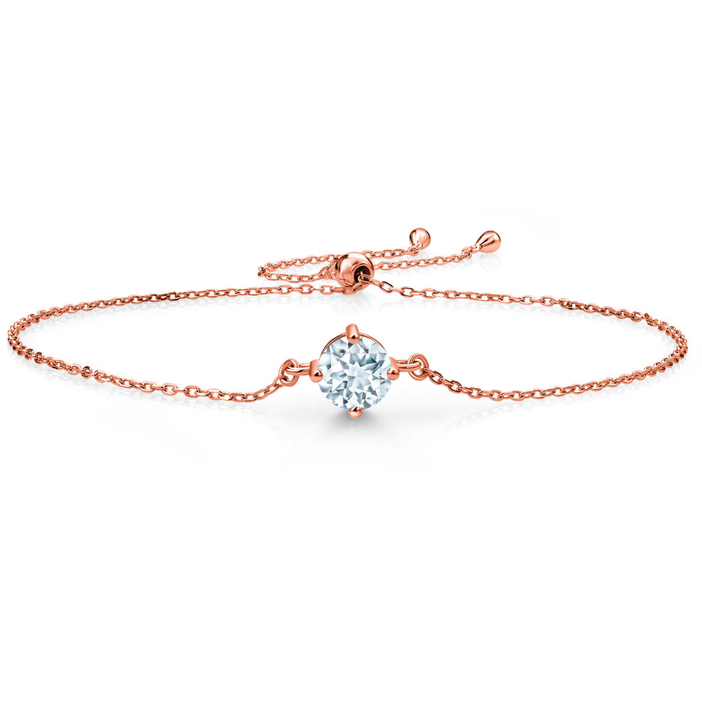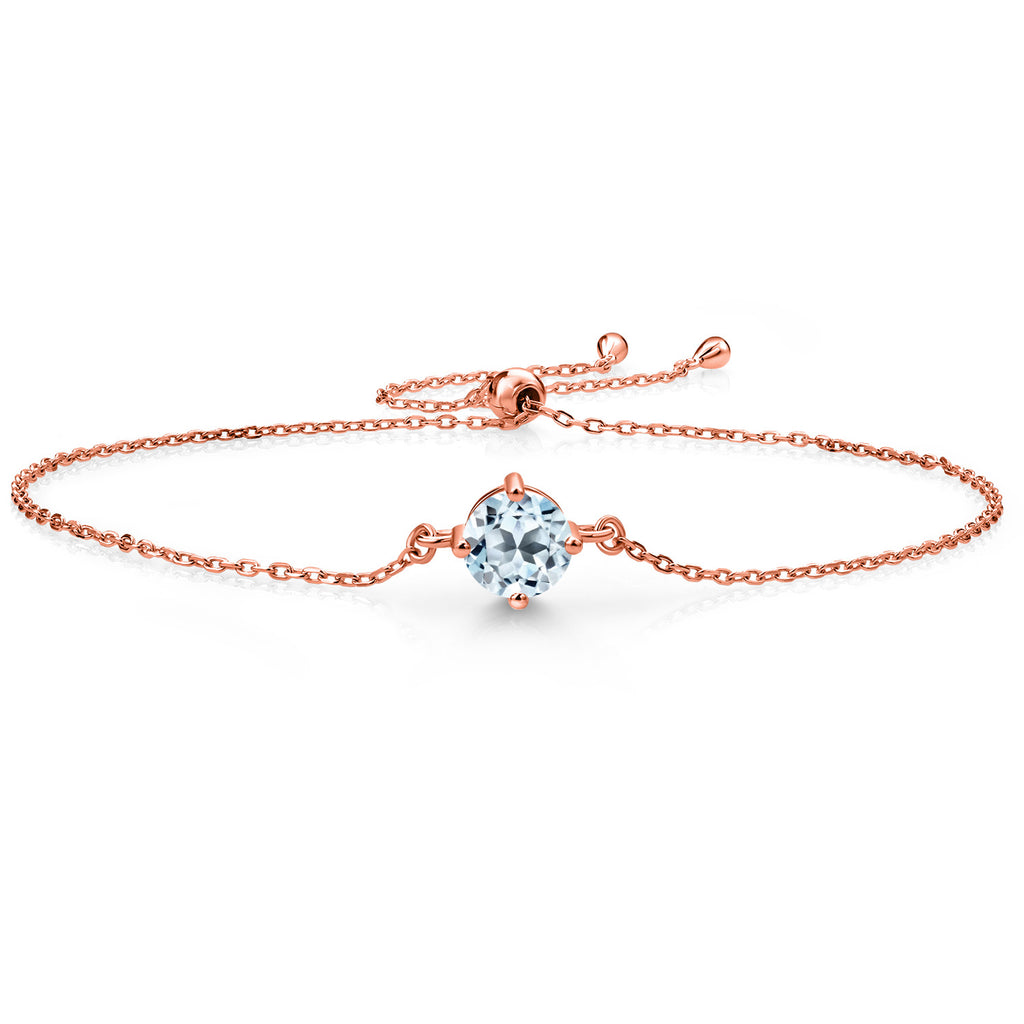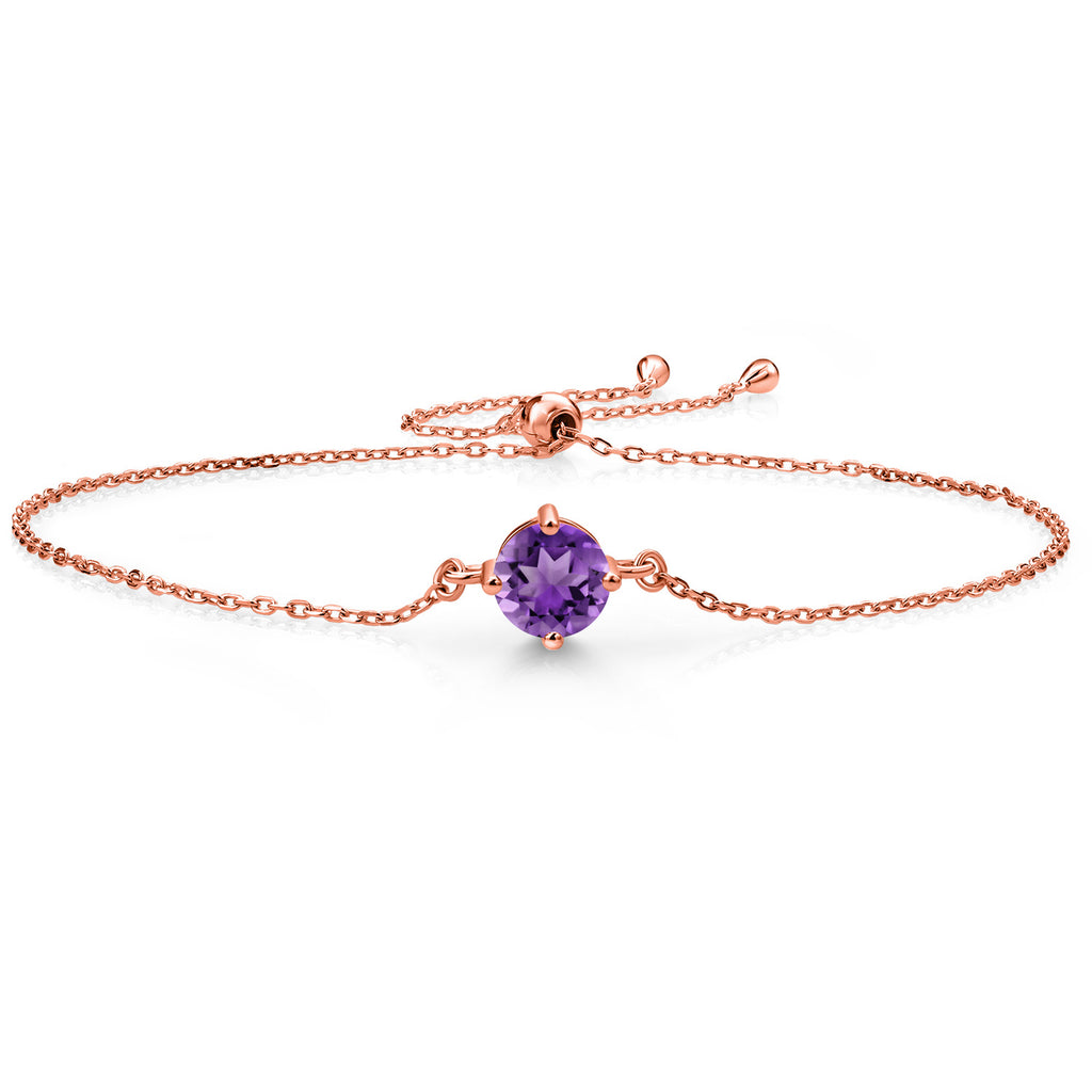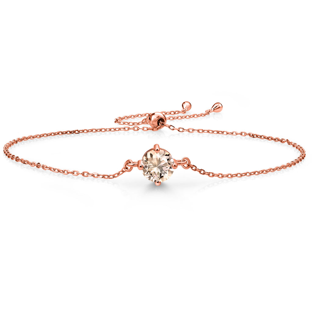 18K Rose Gold Plated Silver Gemstone Birthstone Solitaire Bracelet For Women | Round 6MM | Birthday Gifts Valentine's Day Gift for Her Women Wife Mom Lady Daughter | Fully Adjustable Up to 9 Inch