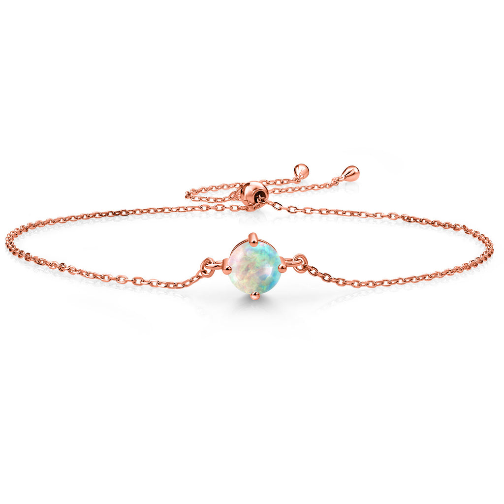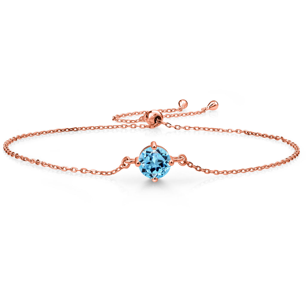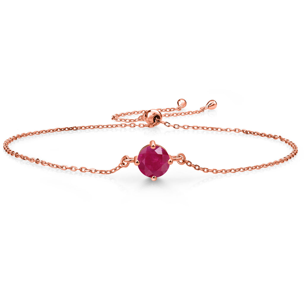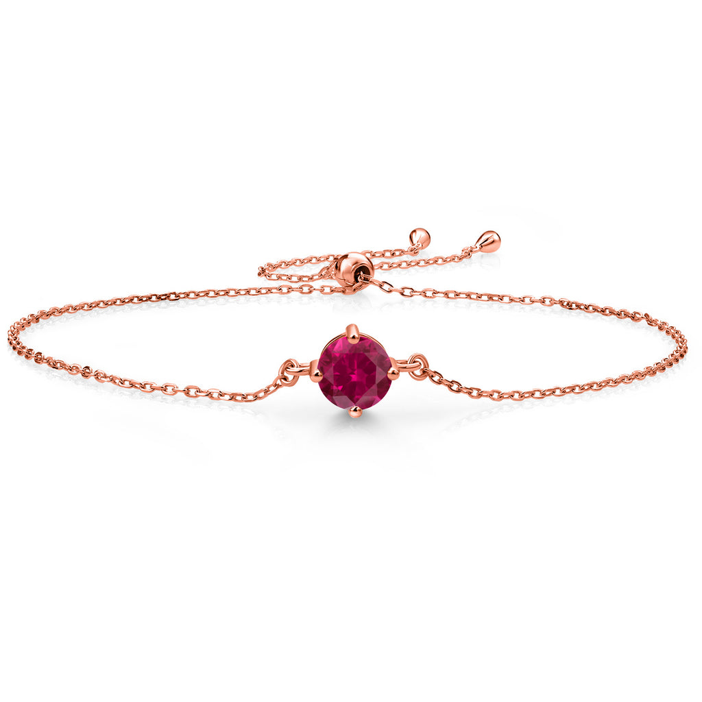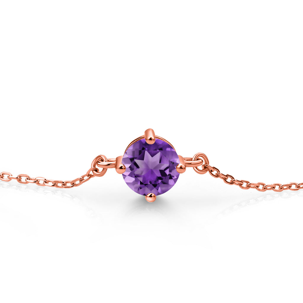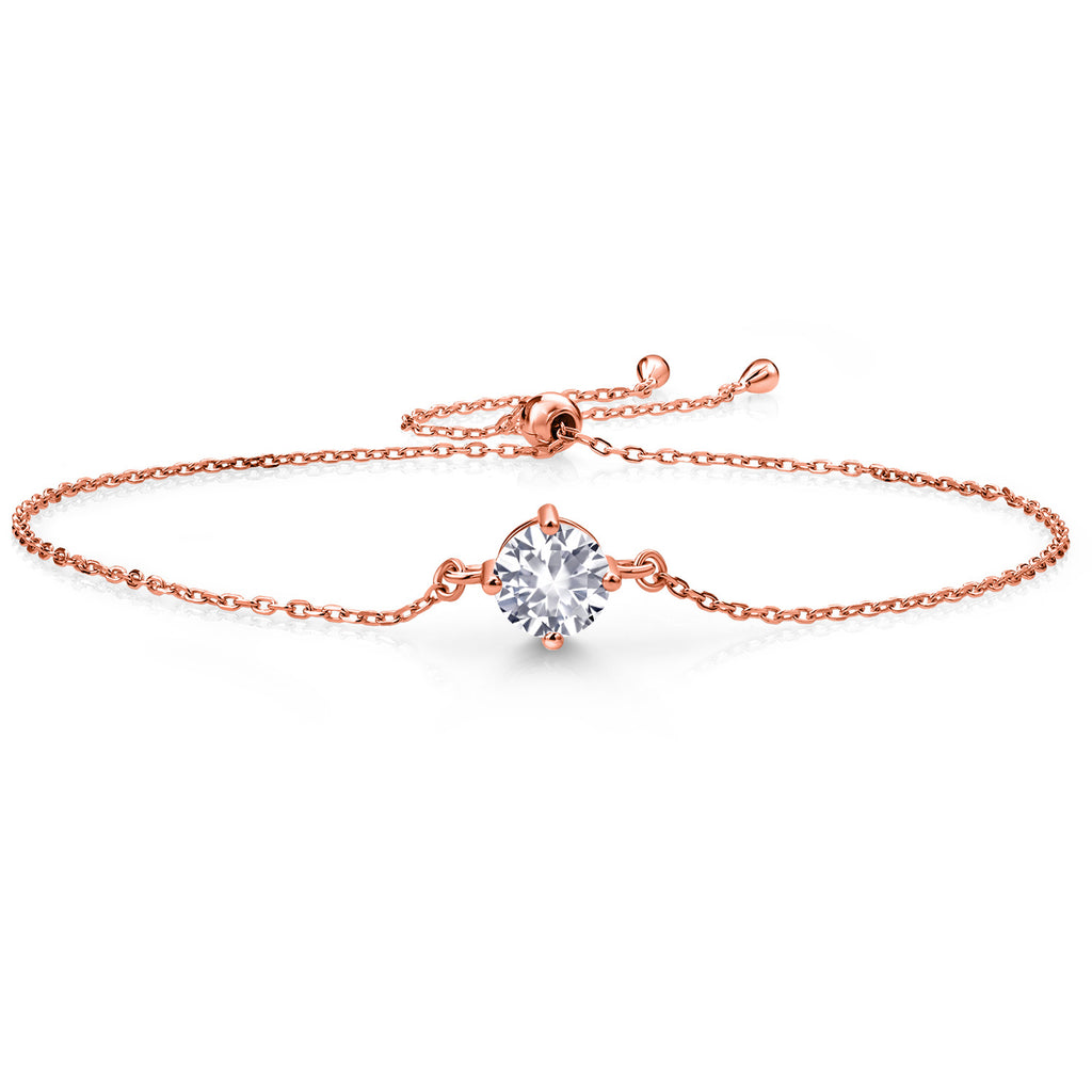 18K Rose Gold Plated Silver Gemstone Birthstone Solitaire Bracelet For Women | Round 6MM | Birthday Gifts Valentine's Day Gift for Her Women Wife Mom Lady Daughter | Fully Adjustable Up to 9 Inch