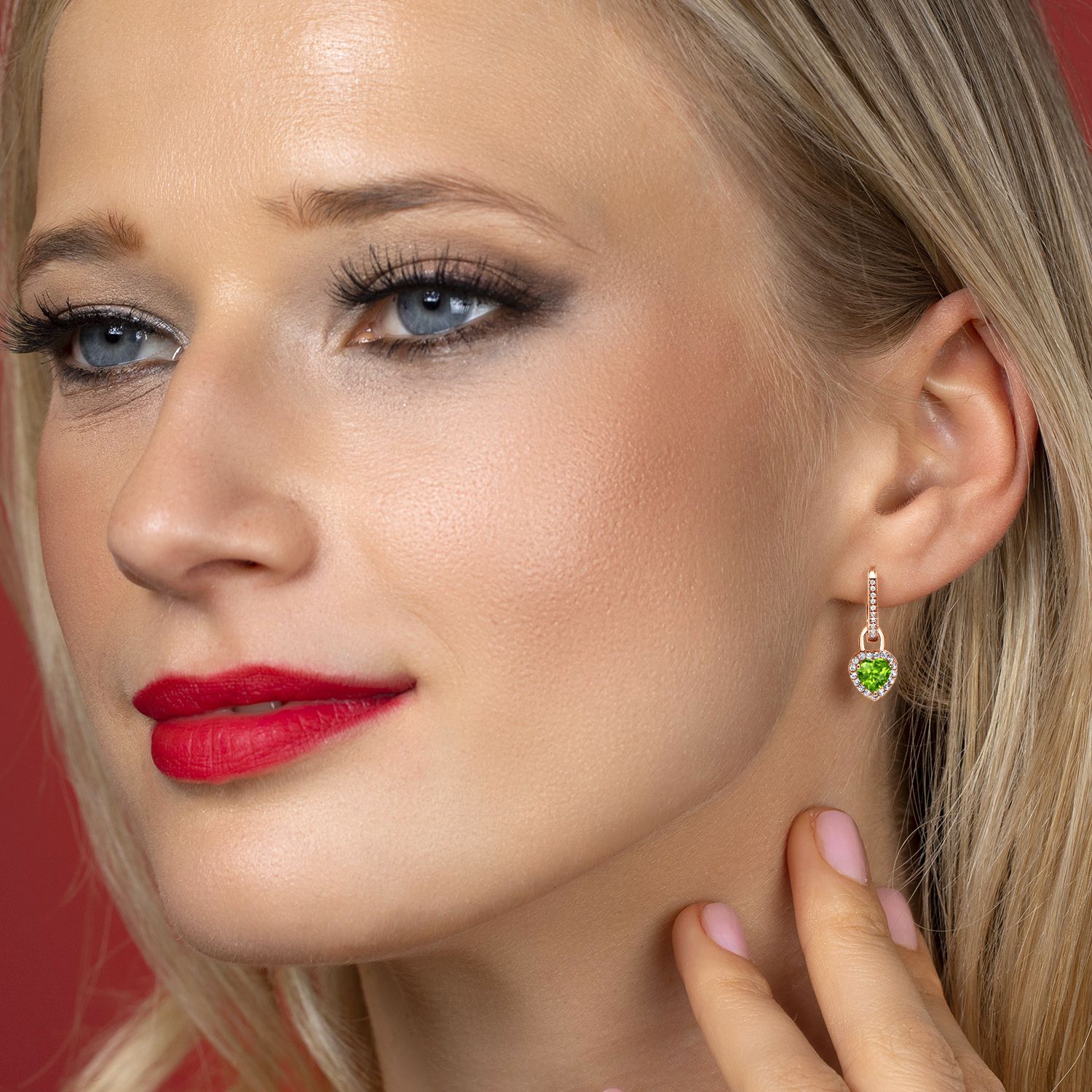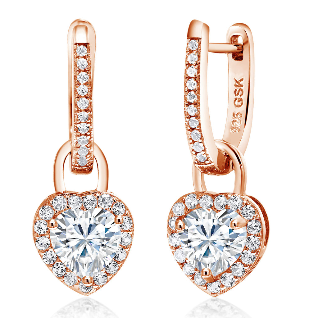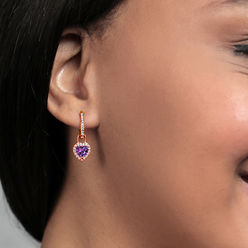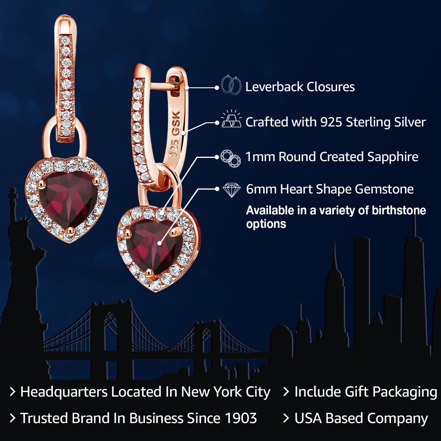 HIGH-QUALITY CRAFTSMANSHIP: Crafted from 18K Rose Gold Plated Silver, these earrings offer both durability and a luxurious shine. The heart-shaped gemstone birthstones and white created sapphires are meticulously selected for their exceptional clarity and vibrant color, ensuring a radiant sparkle that will be admired from every angle.