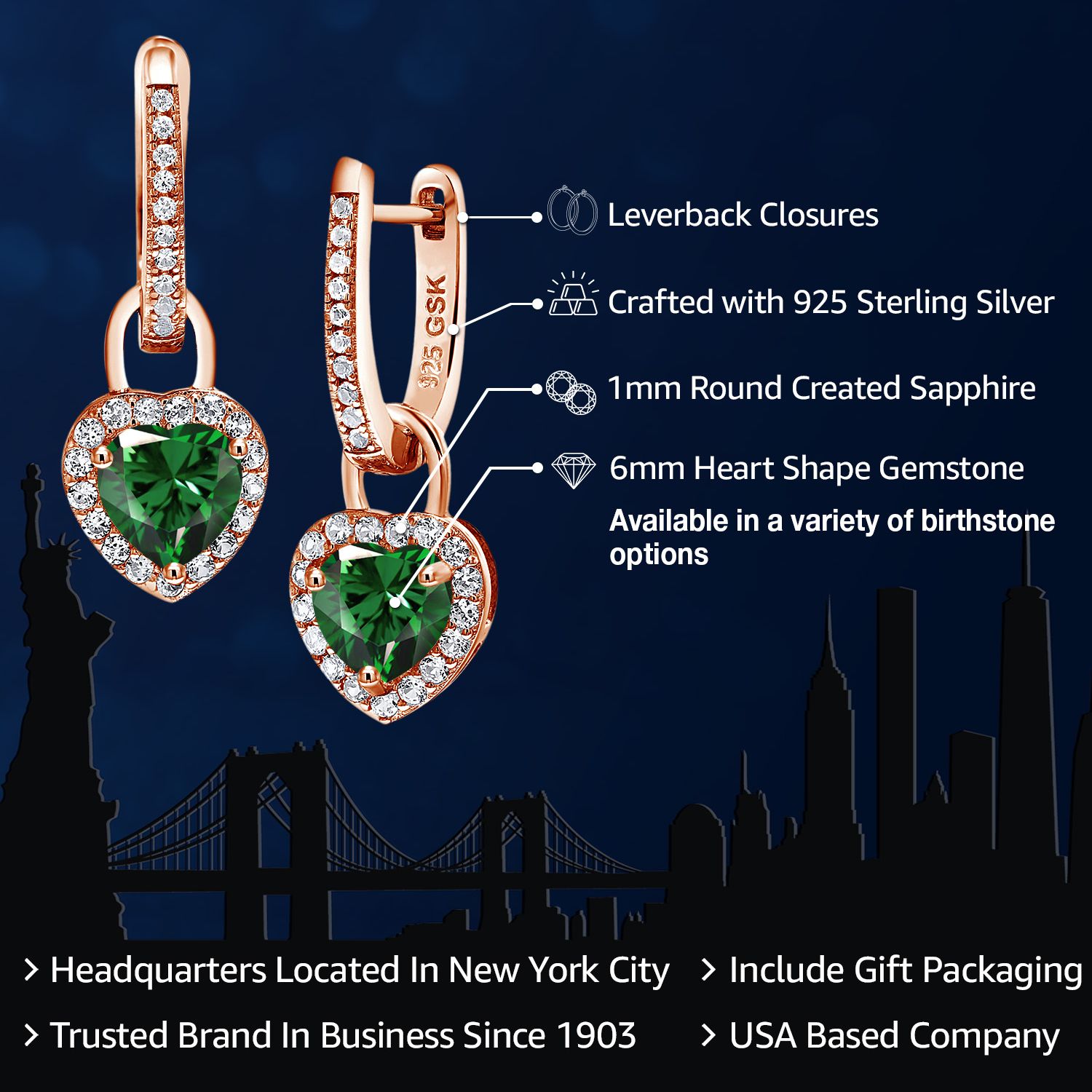 CHARMING HEART-SHAPED DESIGN: These elegant drop dangle earrings feature a beautiful 6MM heart-shaped gemstone birthstone, paired with sparkling white created sapphires. The combination of vibrant gemstones and sophisticated design makes these earrings perfect for adding a touch of romance and elegance to any outfit.