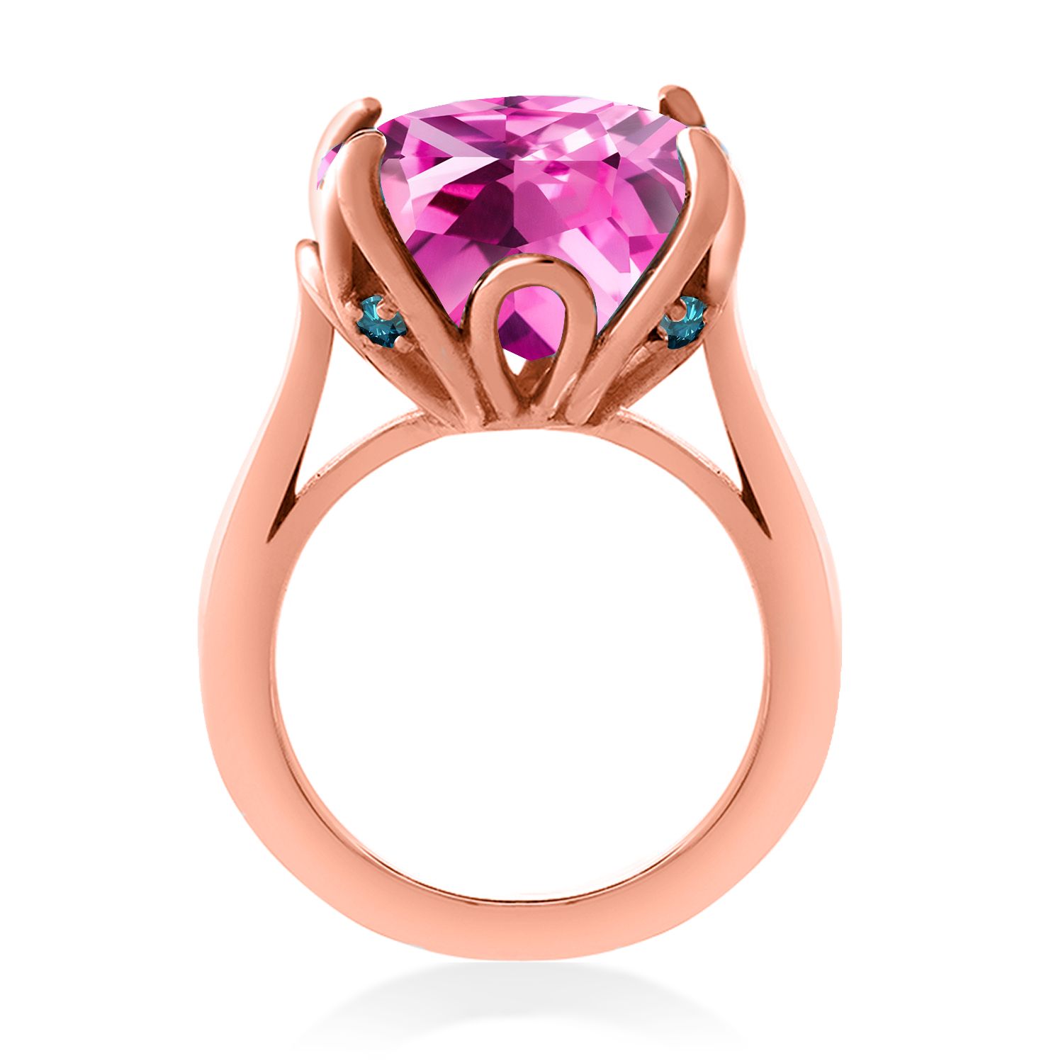 18K Rose Gold Plated Silver Pink Created Sapphire and Blue Diamond Engagement Ring For Women (14.62 Cttw, 14MM Cushion, Available in Size 5,6,7,8,9)