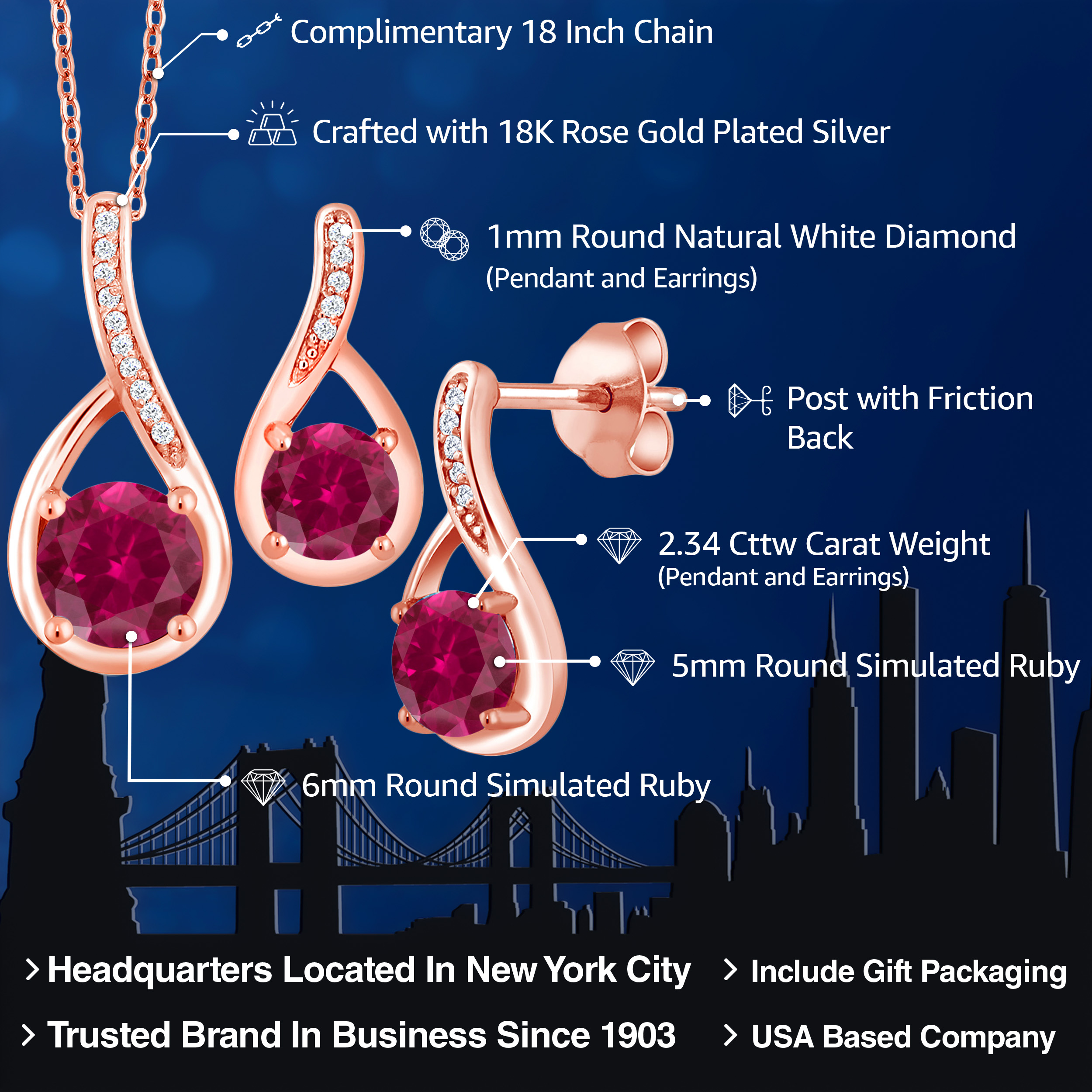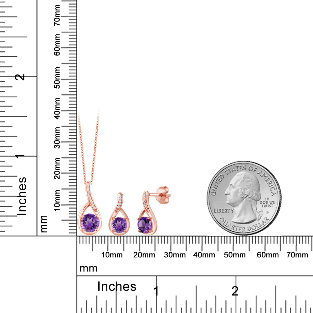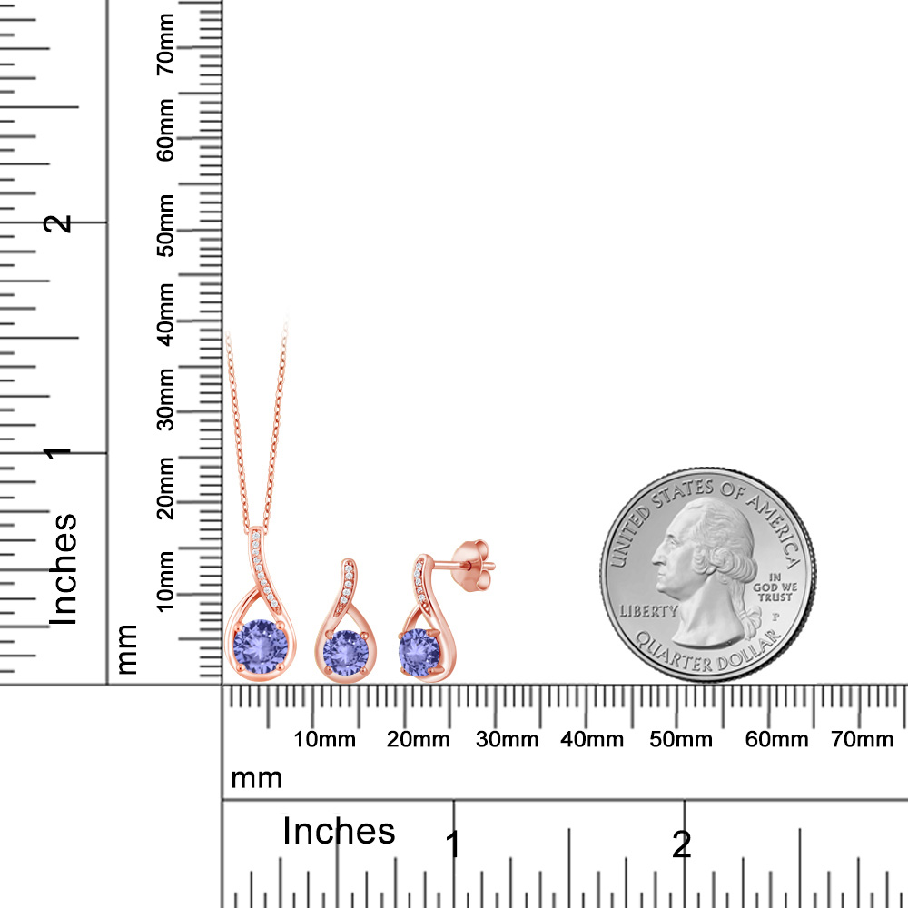 18K Rose Gold Plated Silver Gemstone Birthstone and White Diamond Pendant and Earrings Jewelry Set For Women | With 18 Inch Chain | Fine Jewelry Gifts for Her Mom Women Wife