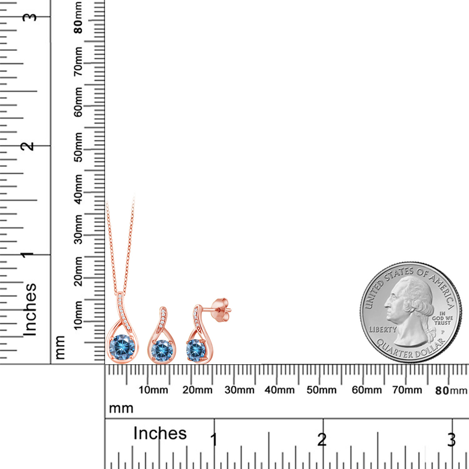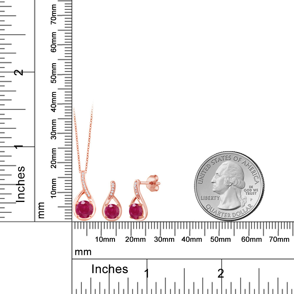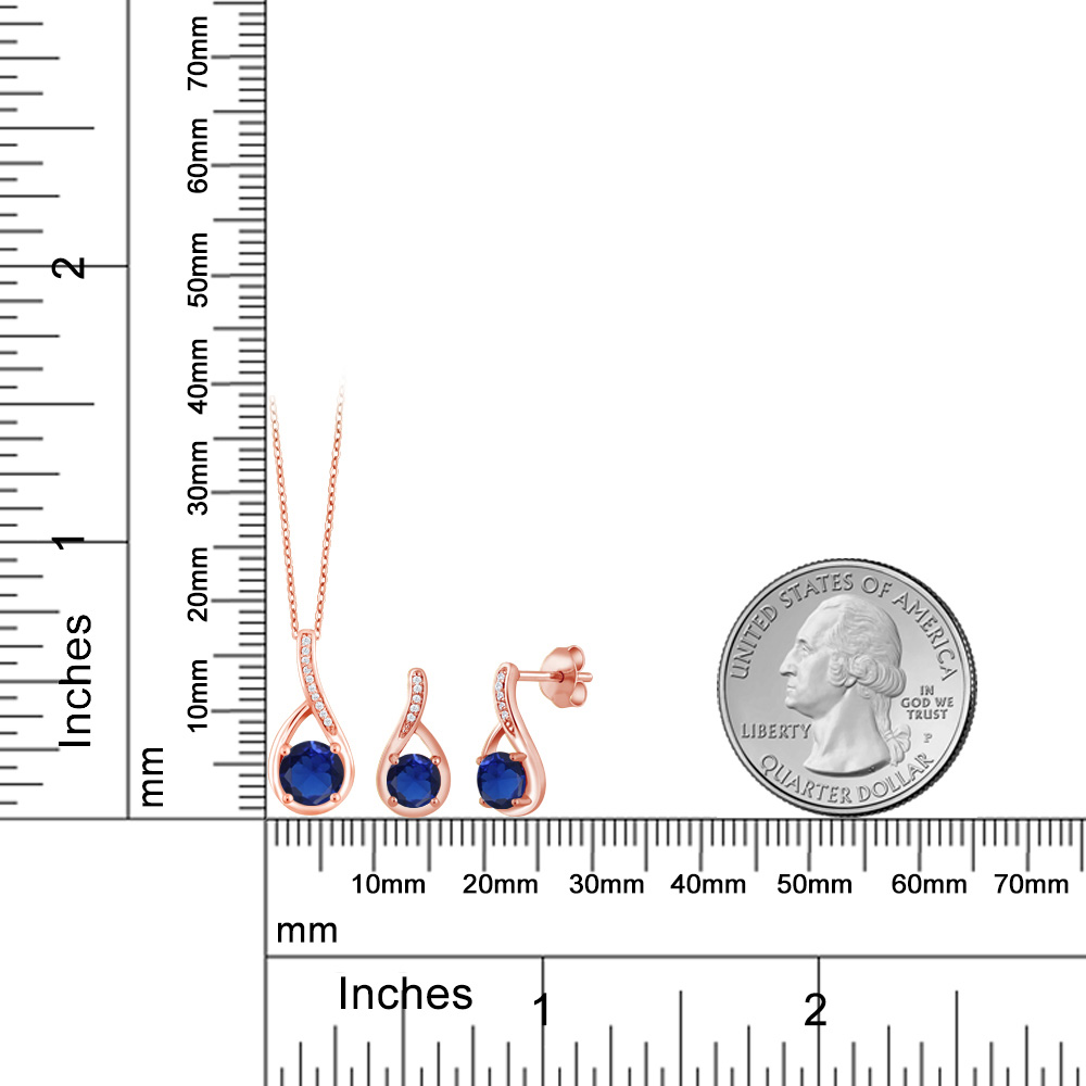 18K Rose Gold Plated Silver Gemstone Birthstone and White Diamond Pendant and Earrings Jewelry Set For Women | With 18 Inch Chain | Fine Jewelry Gifts for Her Mom Women Wife