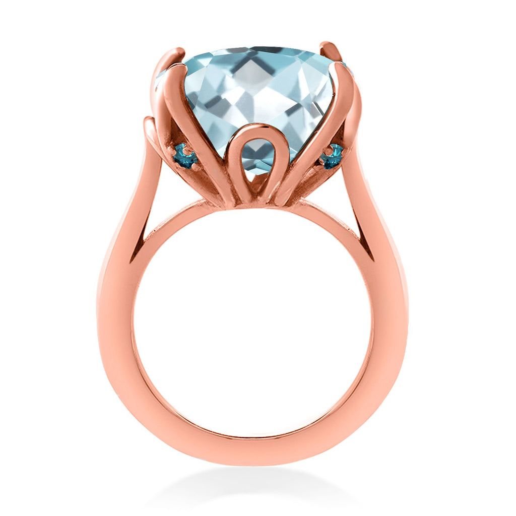 18K Rose Gold Plated Silver Sky Blue Simulated Aquamarine and Blue Diamond Engagement Ring For Women (10.92 Cttw, 14MM Cushion, Available in Size 5,6,7,8,9)