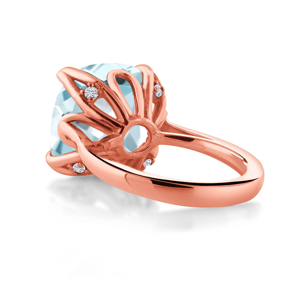 18K Rose Gold Plated Silver Sky Blue Simulated Aquamarine and White Diamond Engagement Ring For Women (10.92 Cttw, 14MM Cushion, Available in Size 5,6,7,8,9)