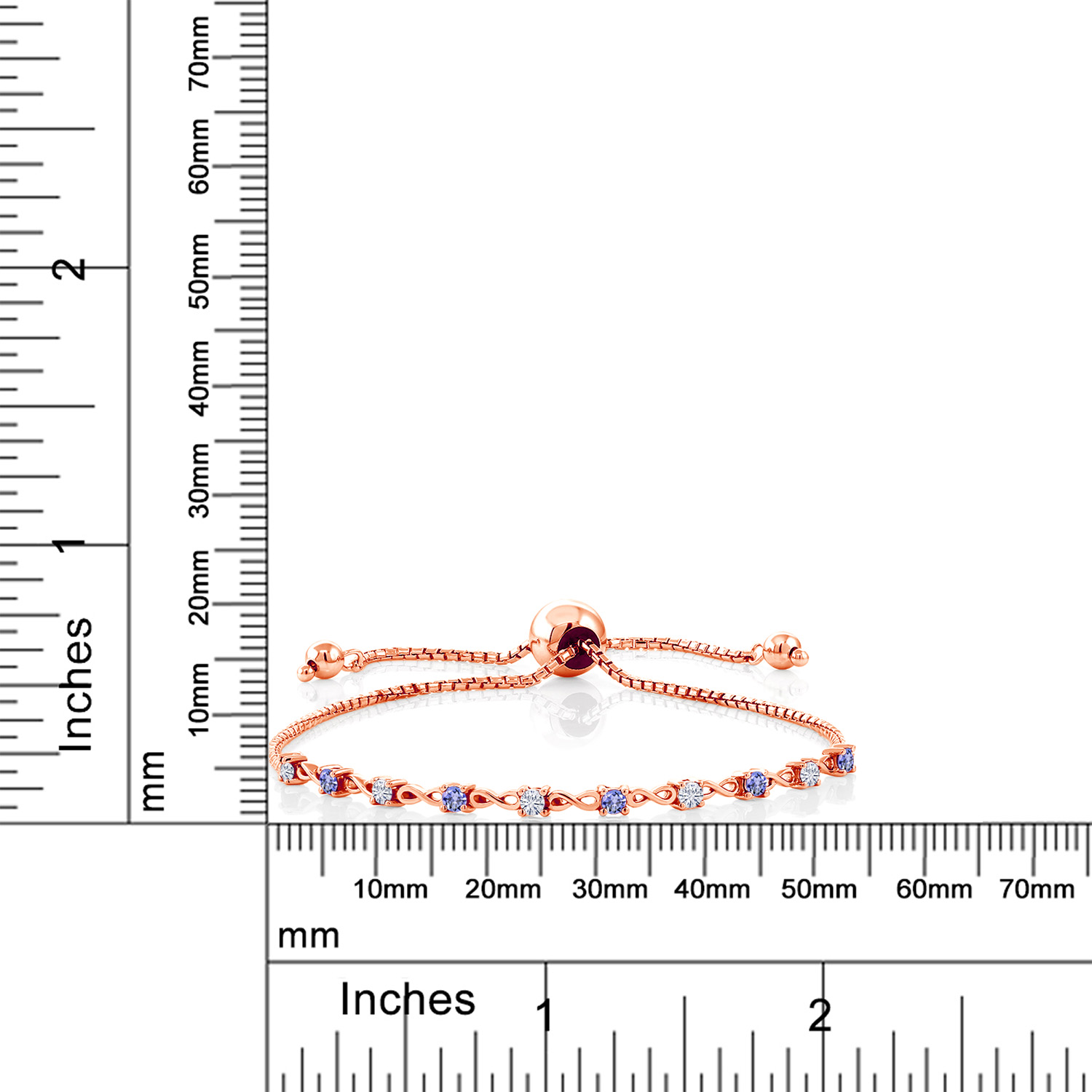 18K Rose Gold Plated Silver White Moissanite and Gemstone Birthstone Infinity Tennis Bracelet For Women | Round 2.5MM | Adjustable Bolo Bracelet Up to 9 Inch | Easy-On Easy-Off