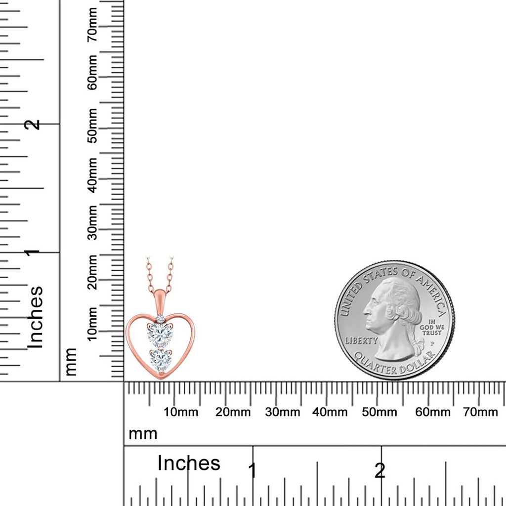 18K Rose Gold Plated Silver White Moissanite and White Lab Grown Diamond Pendant Necklace For Women (0.66 Cttw, Gemstone Birthstone, Heart 5MM and 4MM, with 18 Inch Silver Chain)