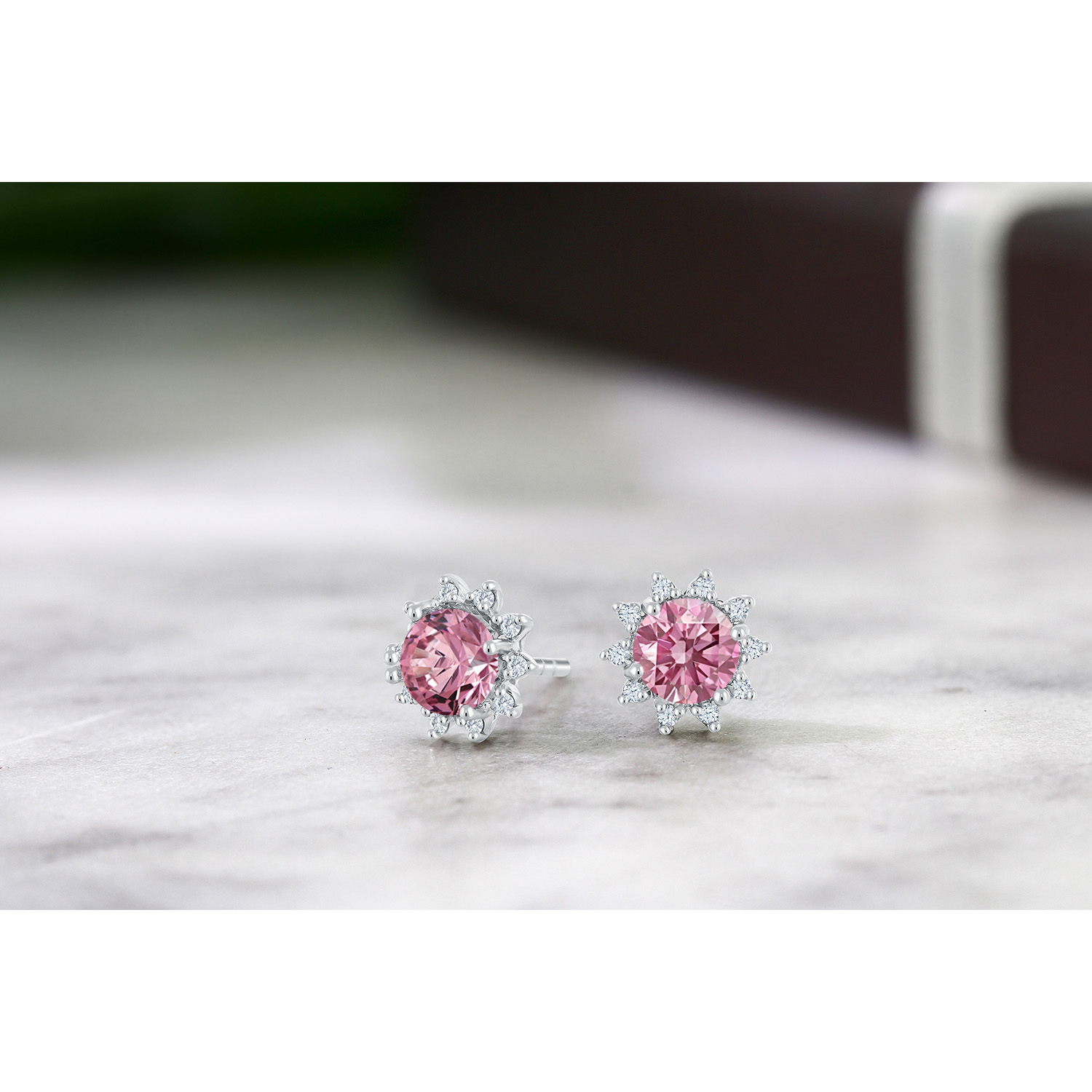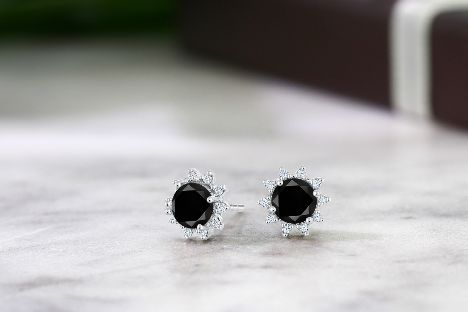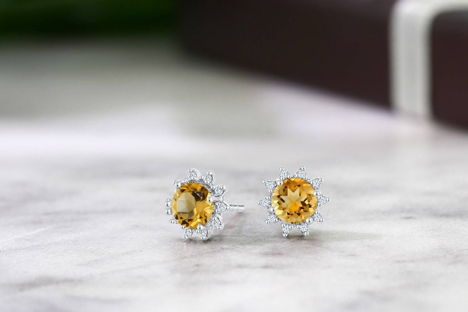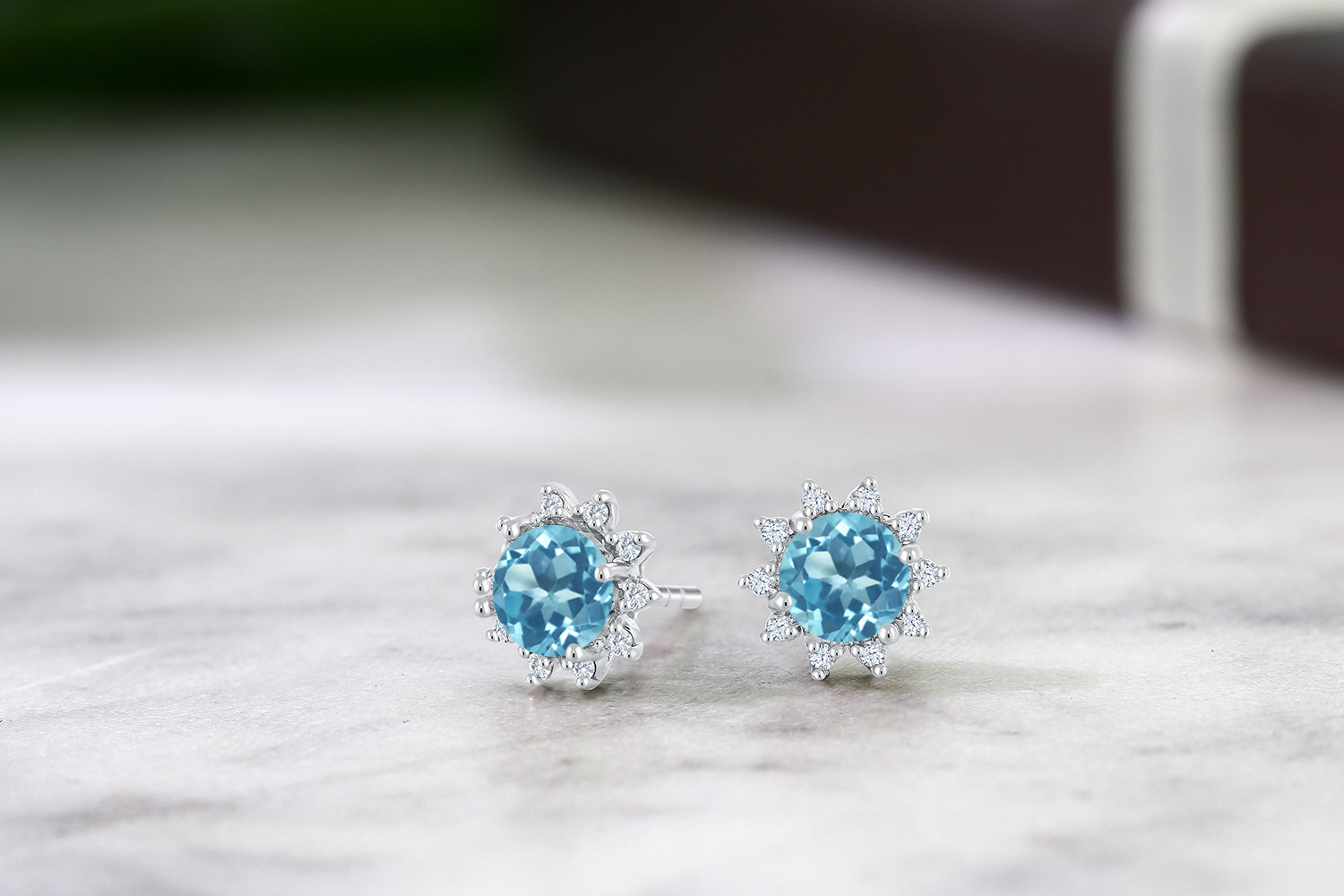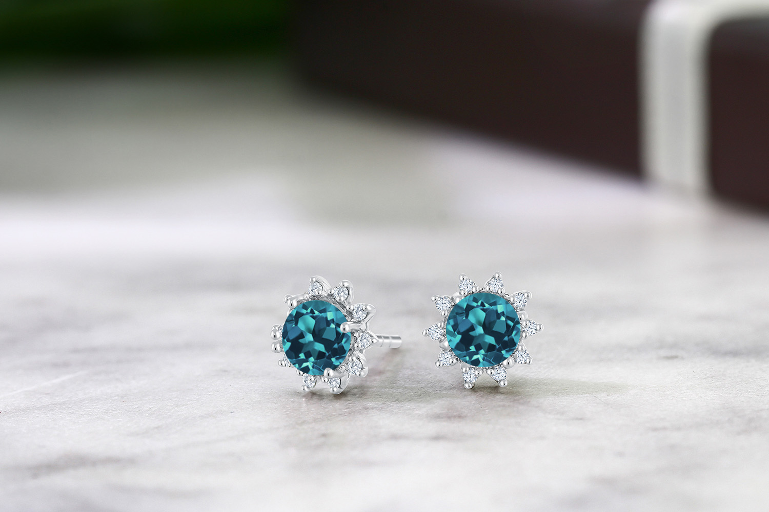 EXQUISITE GEMSTONE AND DIAMOND COMBINATION: These stud earrings feature dazzling round 4MM gemstones of your choice, accented by sparkling white diamonds. The combination of the vibrant gemstones and the brilliance of the diamonds creates a stunning and elegant look.
