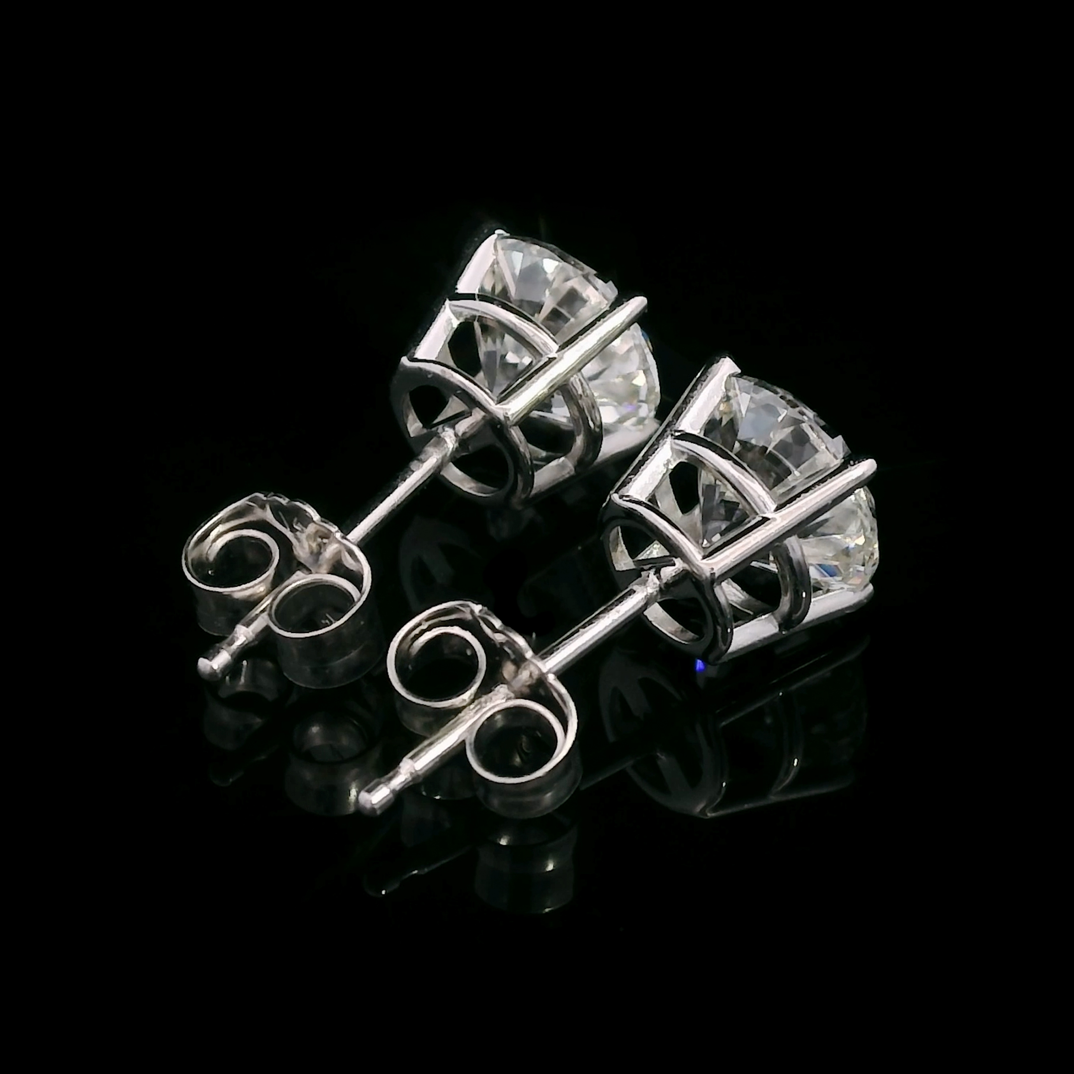 18K White Gold Lab Grown Diamond Earrings for Women | 1.48 Cttw | Gemstone April Birthstone | Round 6MM