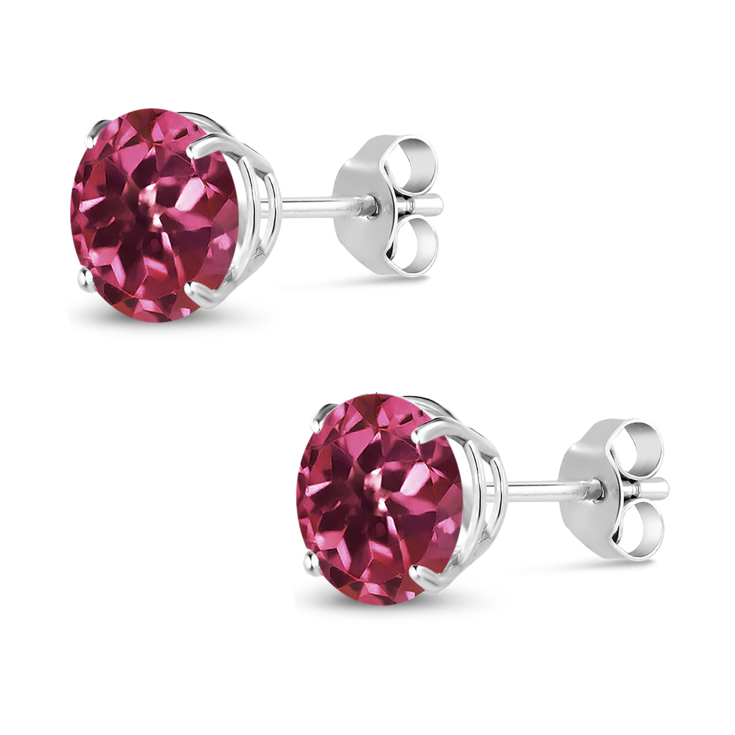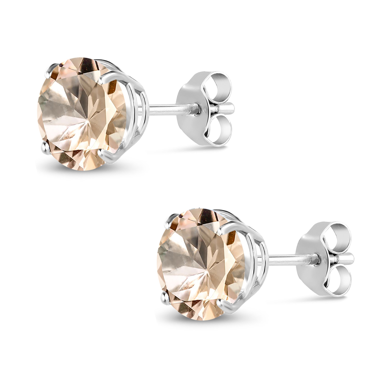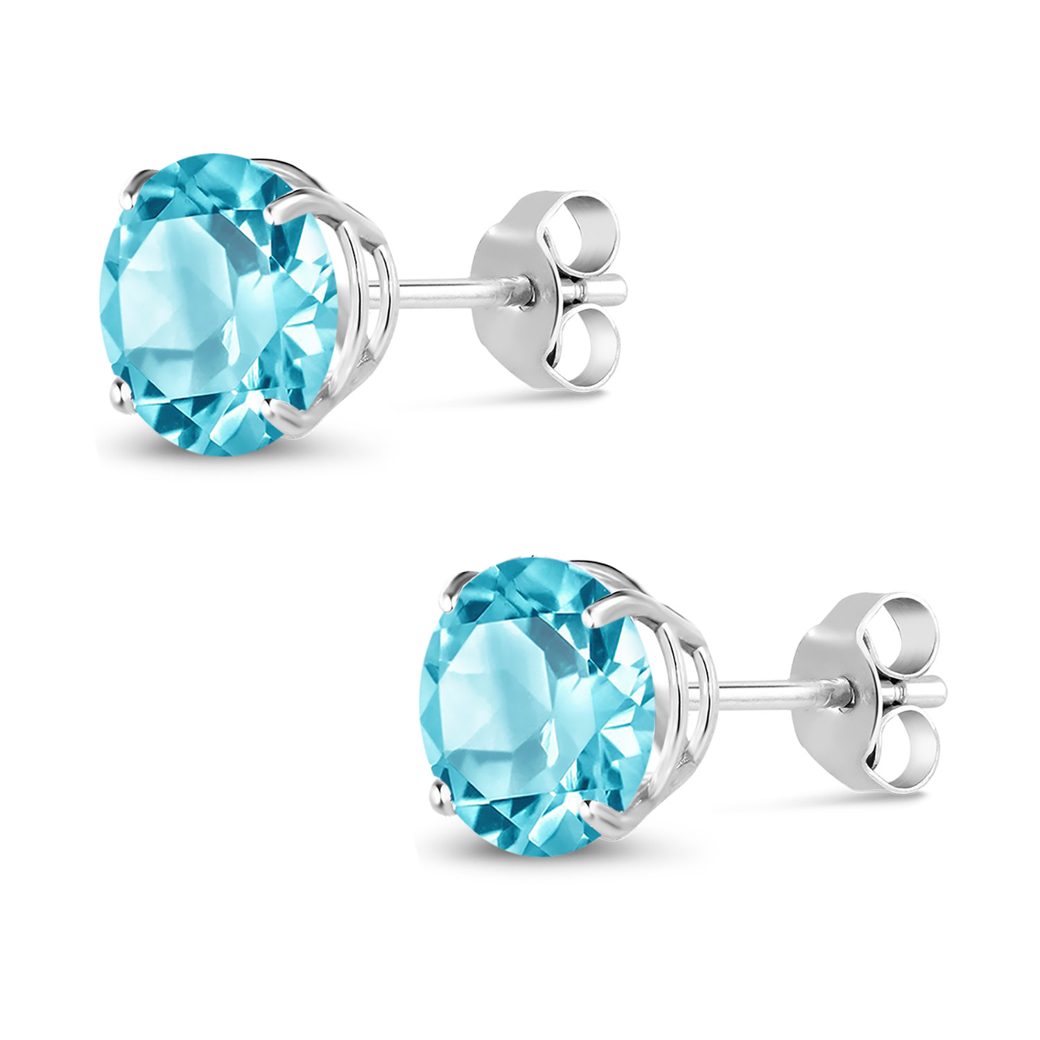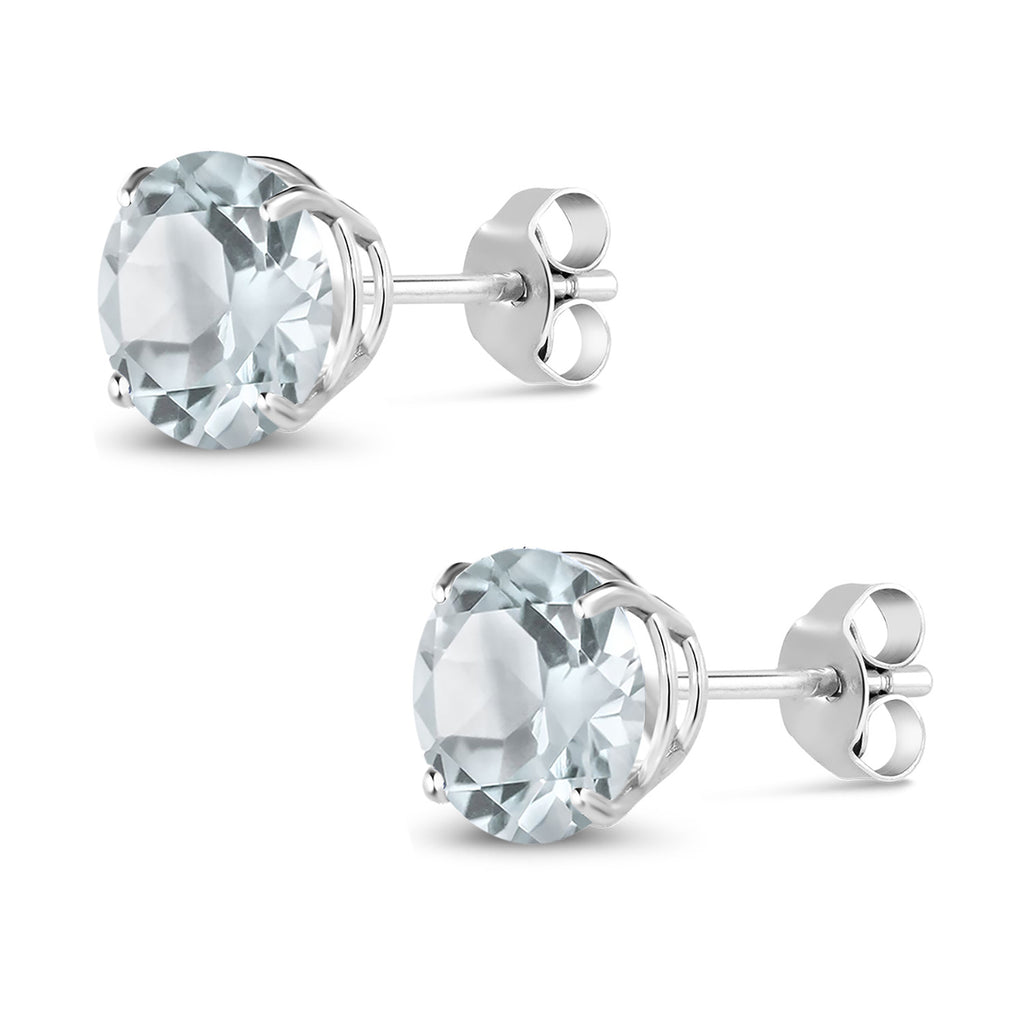 18K White Gold Round 5MM Gemstone Birthstone Stud Earrings | White Gold Earrings For Women Men
