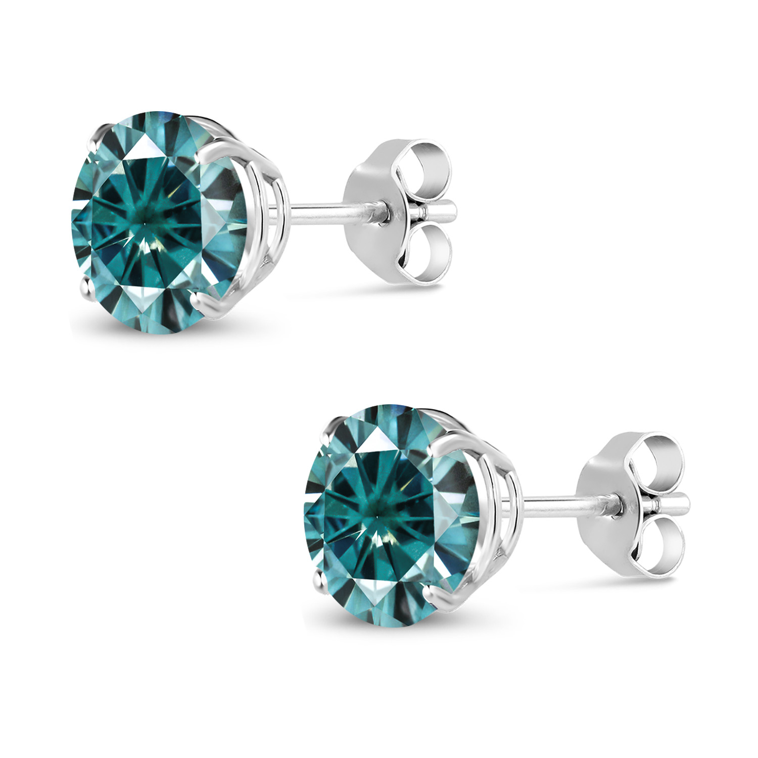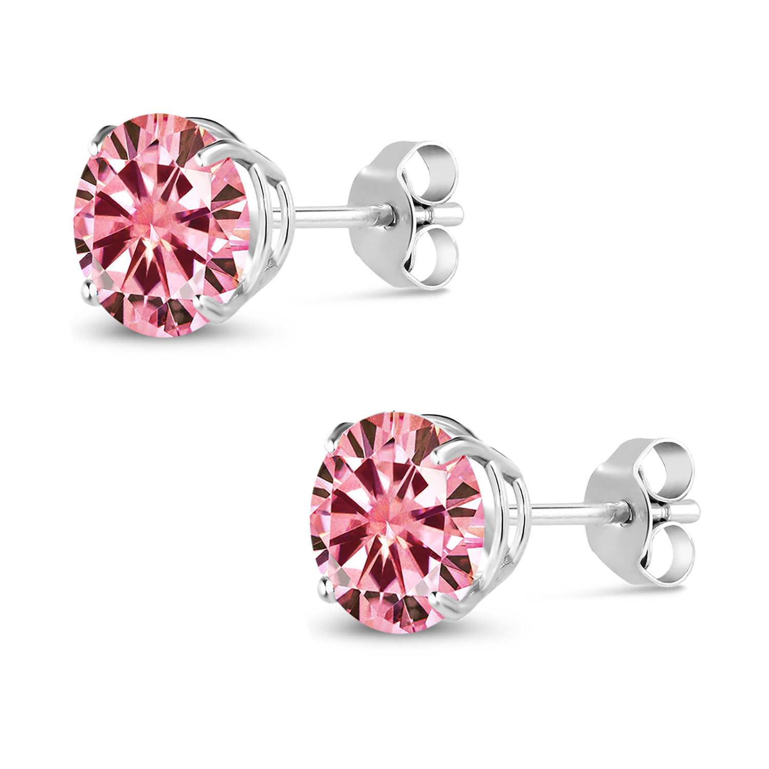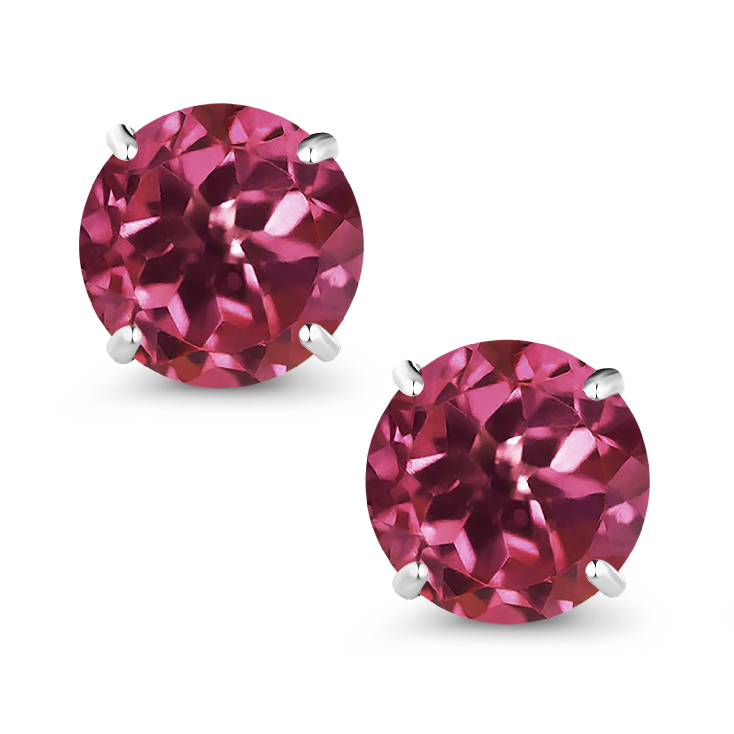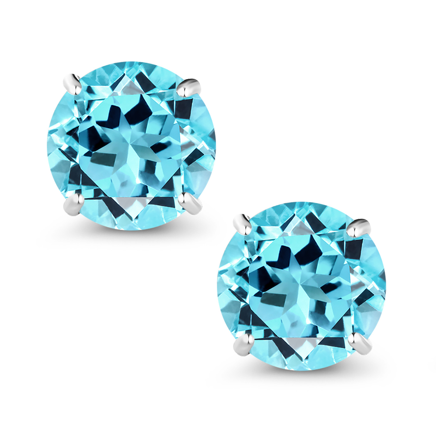 18K White Gold Round 5MM Gemstone Birthstone Stud Earrings | White Gold Earrings For Women Men