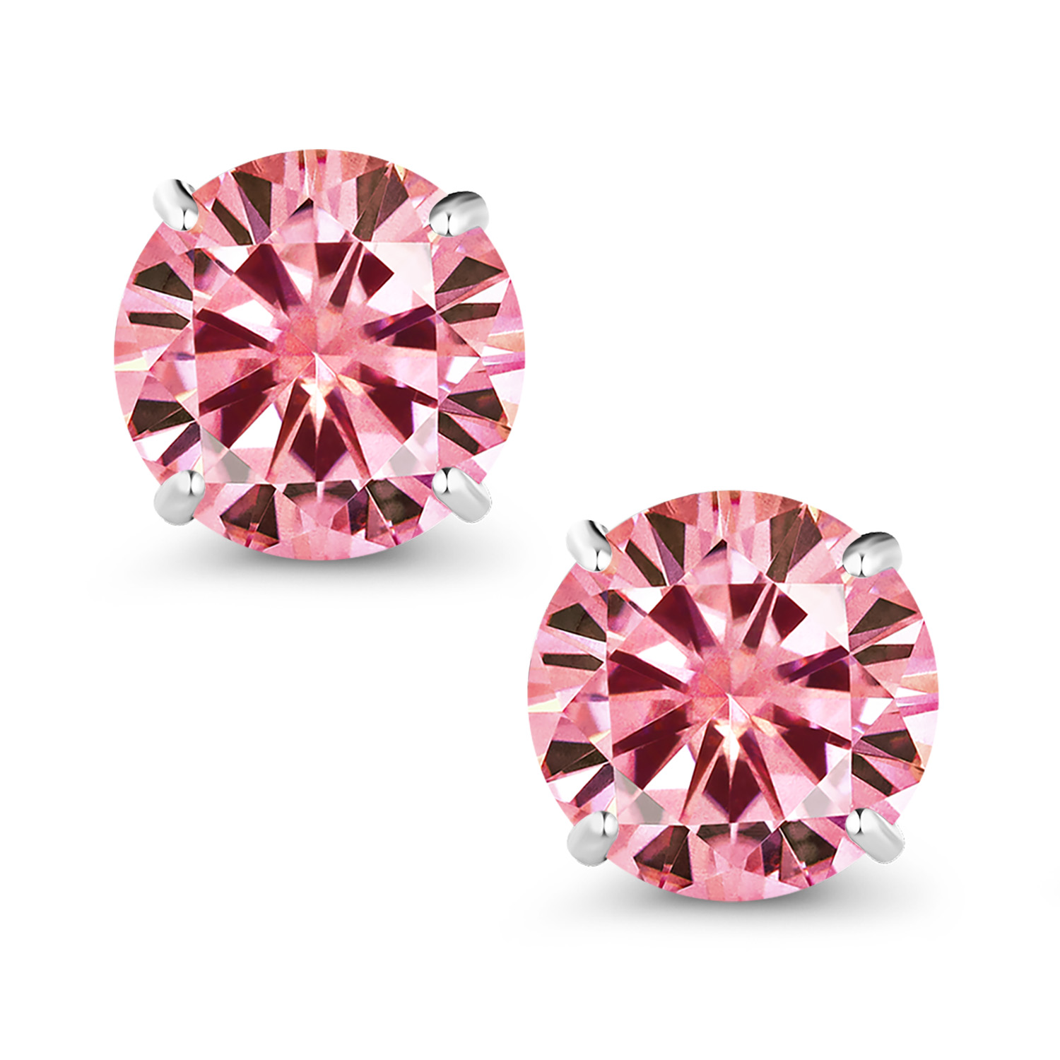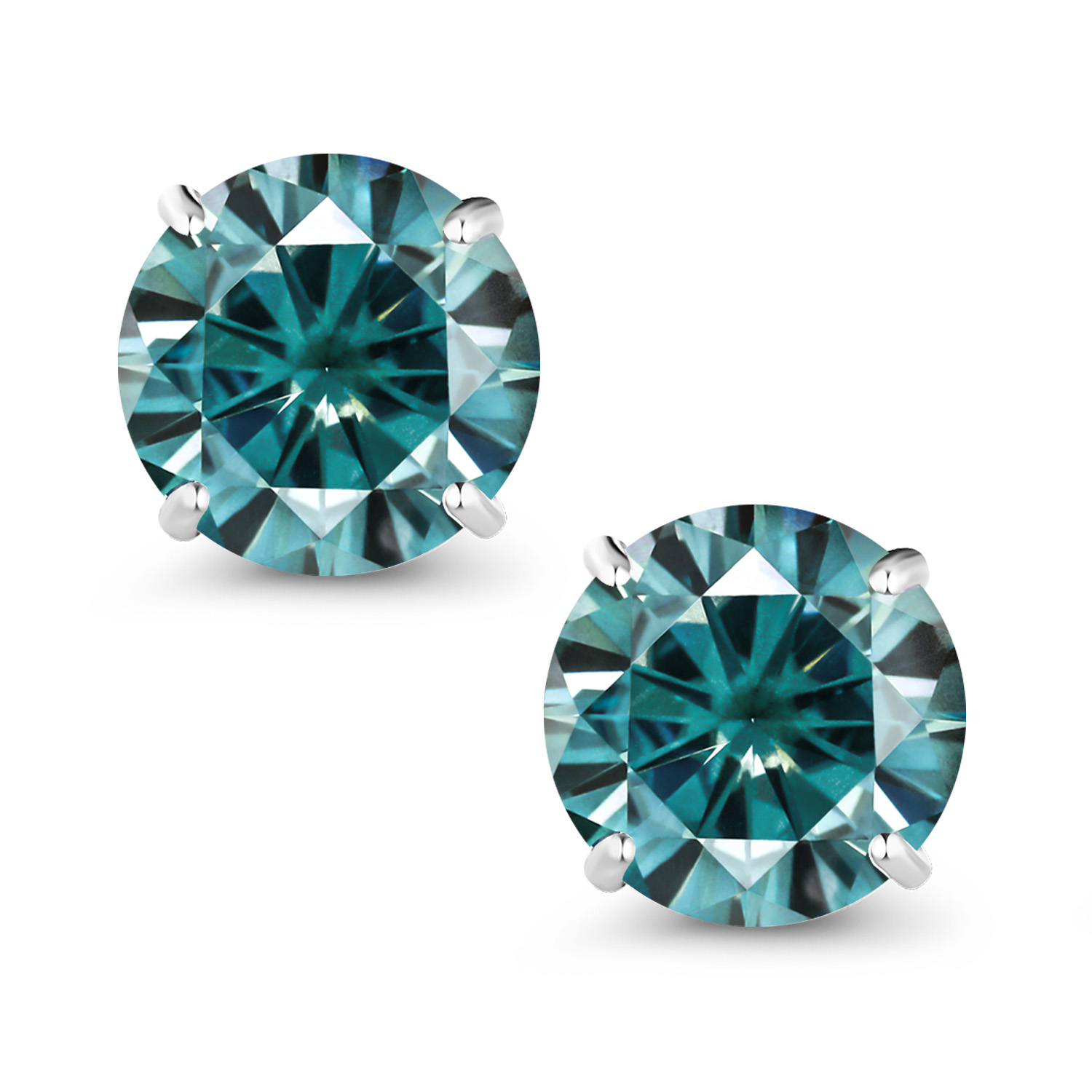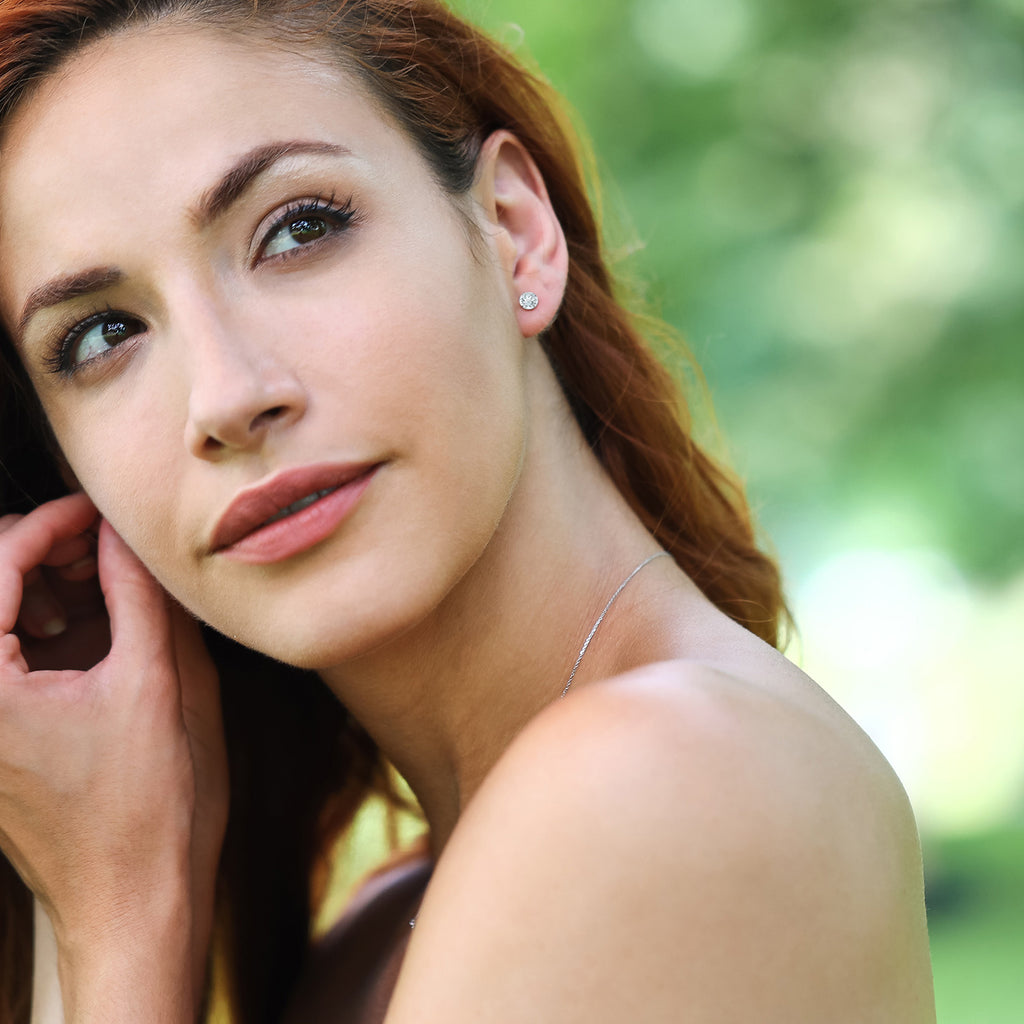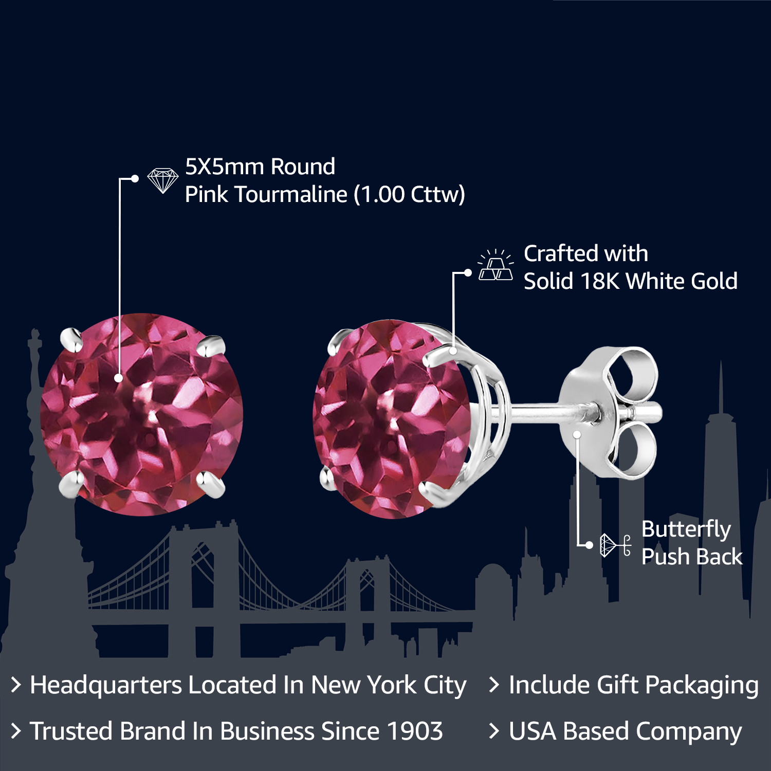 18K White Gold Round 5MM Gemstone Birthstone Stud Earrings | White Gold Earrings For Women Men