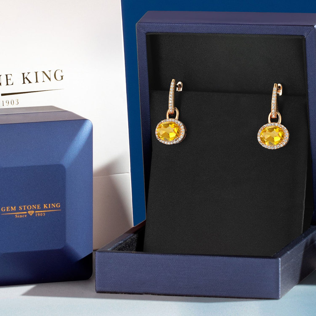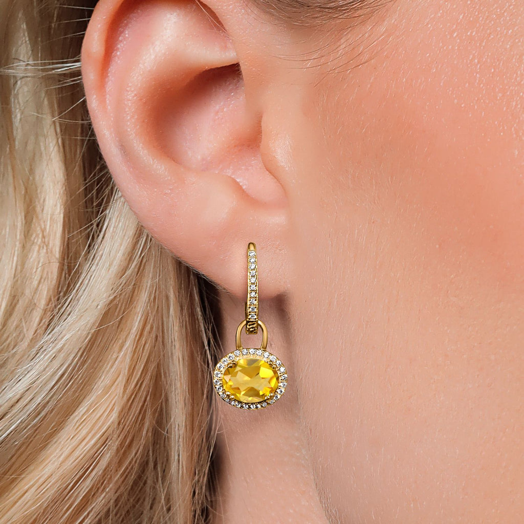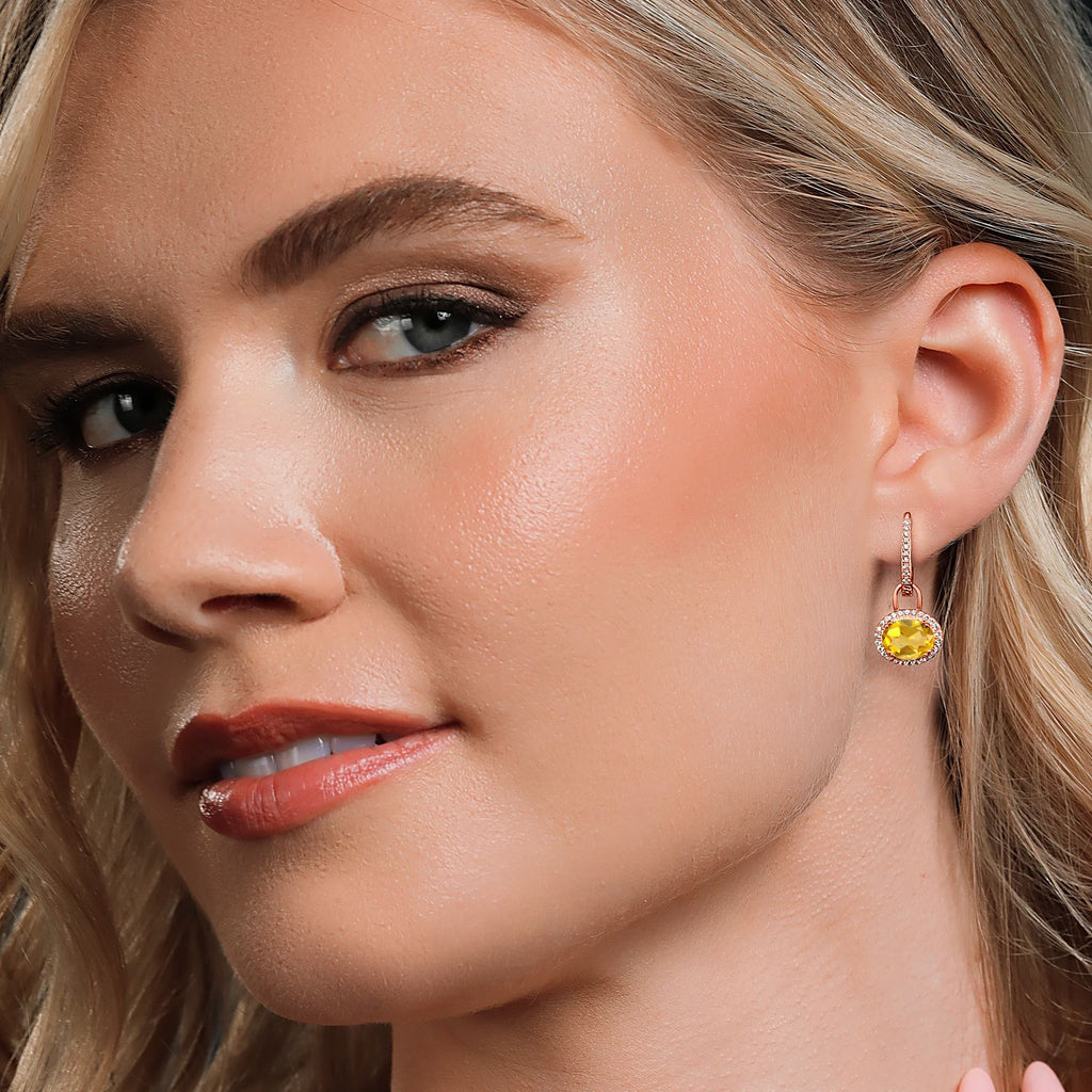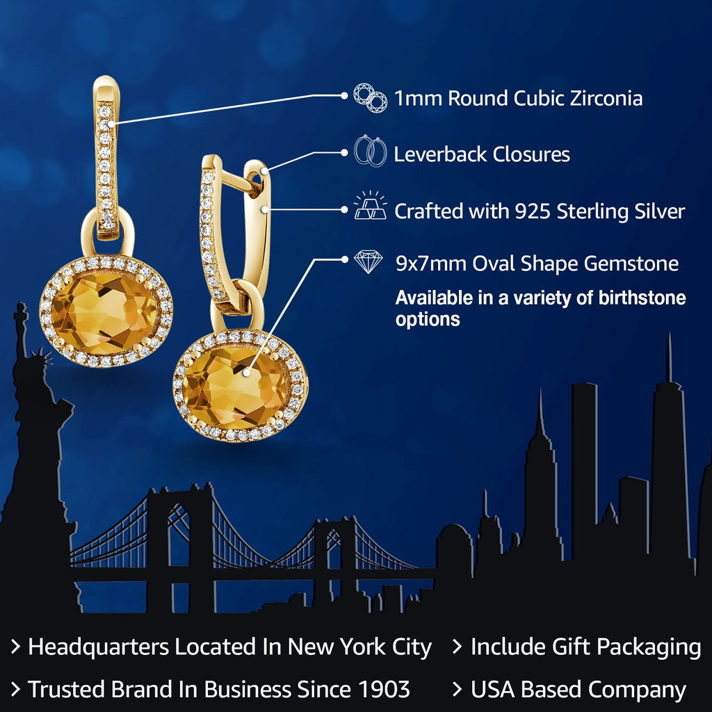 18K Yellow Gold Plated Silver Halo Leverback Oval Drop Dangle Earrings for Women | 9X7MM Oval Gemstone Birthstone | Fine Jewelry Gifts for Her Mom Women Wife