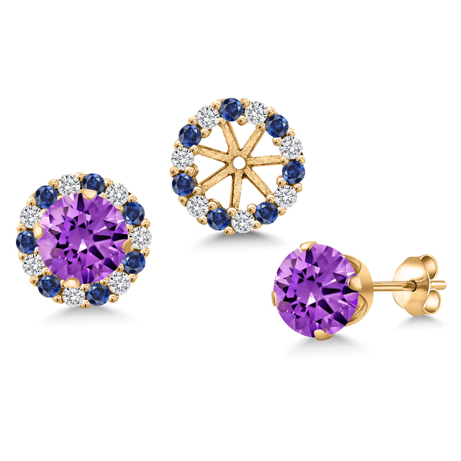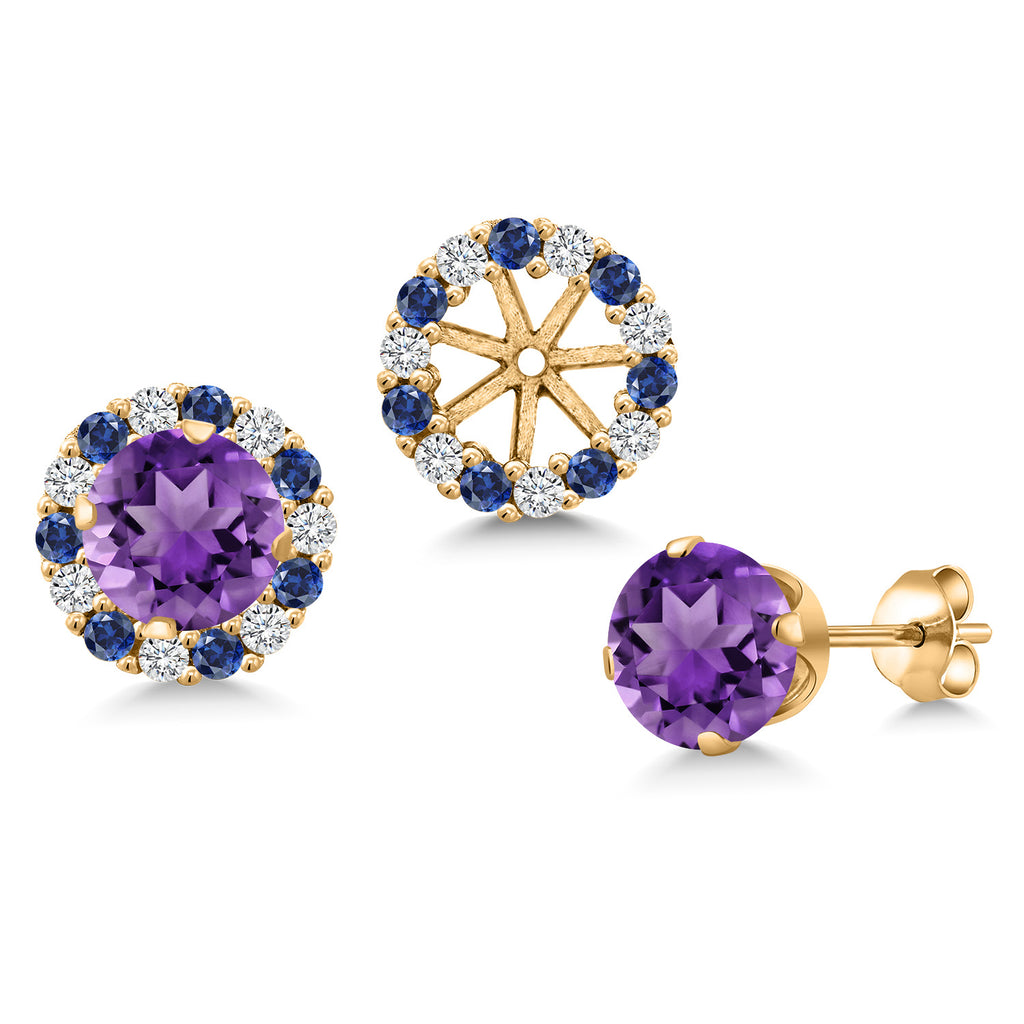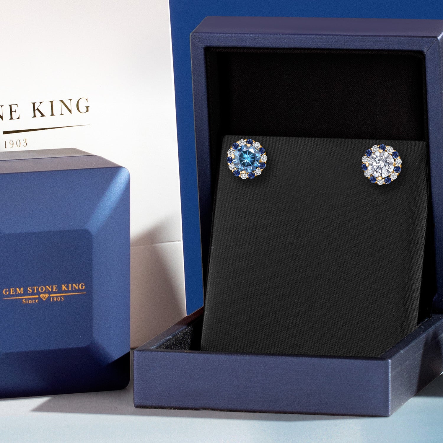 CUSTOMIZABLE GEMSTONE ELEGANCE: Featuring 6MM round gemstone birthstones of your choice, these earrings offer a personalized touch. Surrounded by sparkling 1.3MM round white and blue zirconia, each piece showcases dazzling brilliance, perfect for gifting or self-expression. Ideal for birthdays, anniversaries, or everyday wear, these earrings blend beauty with versatility.