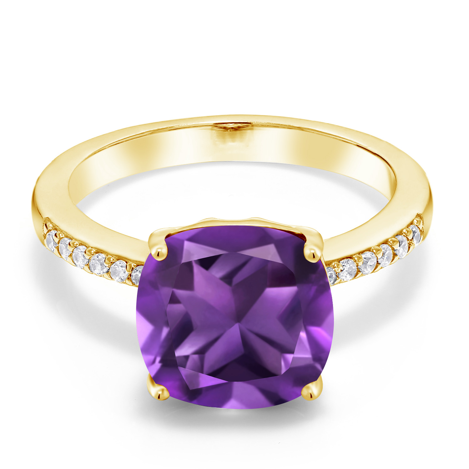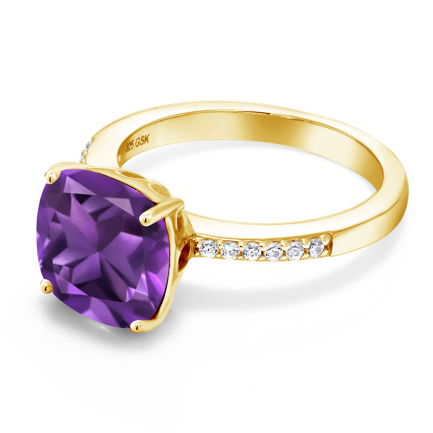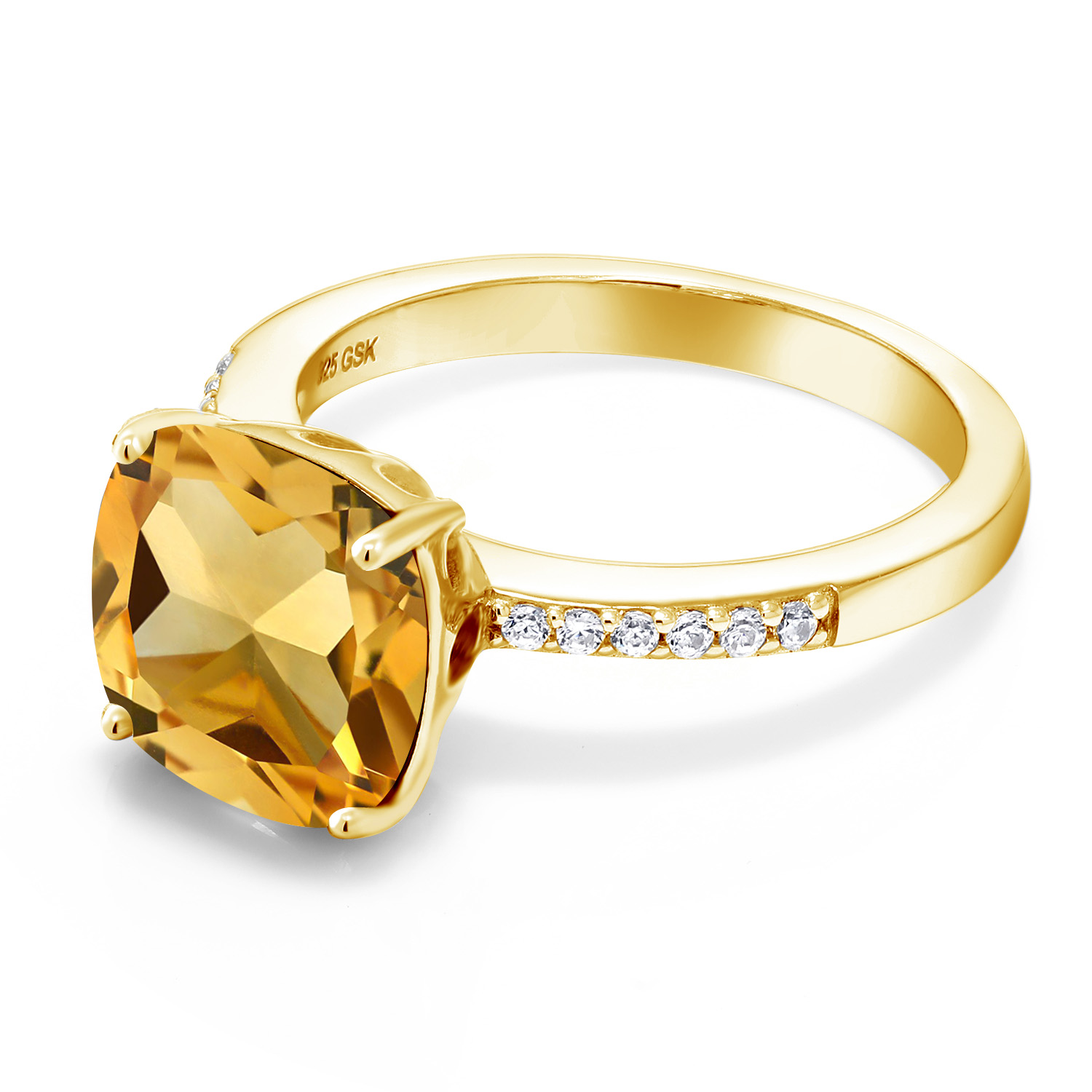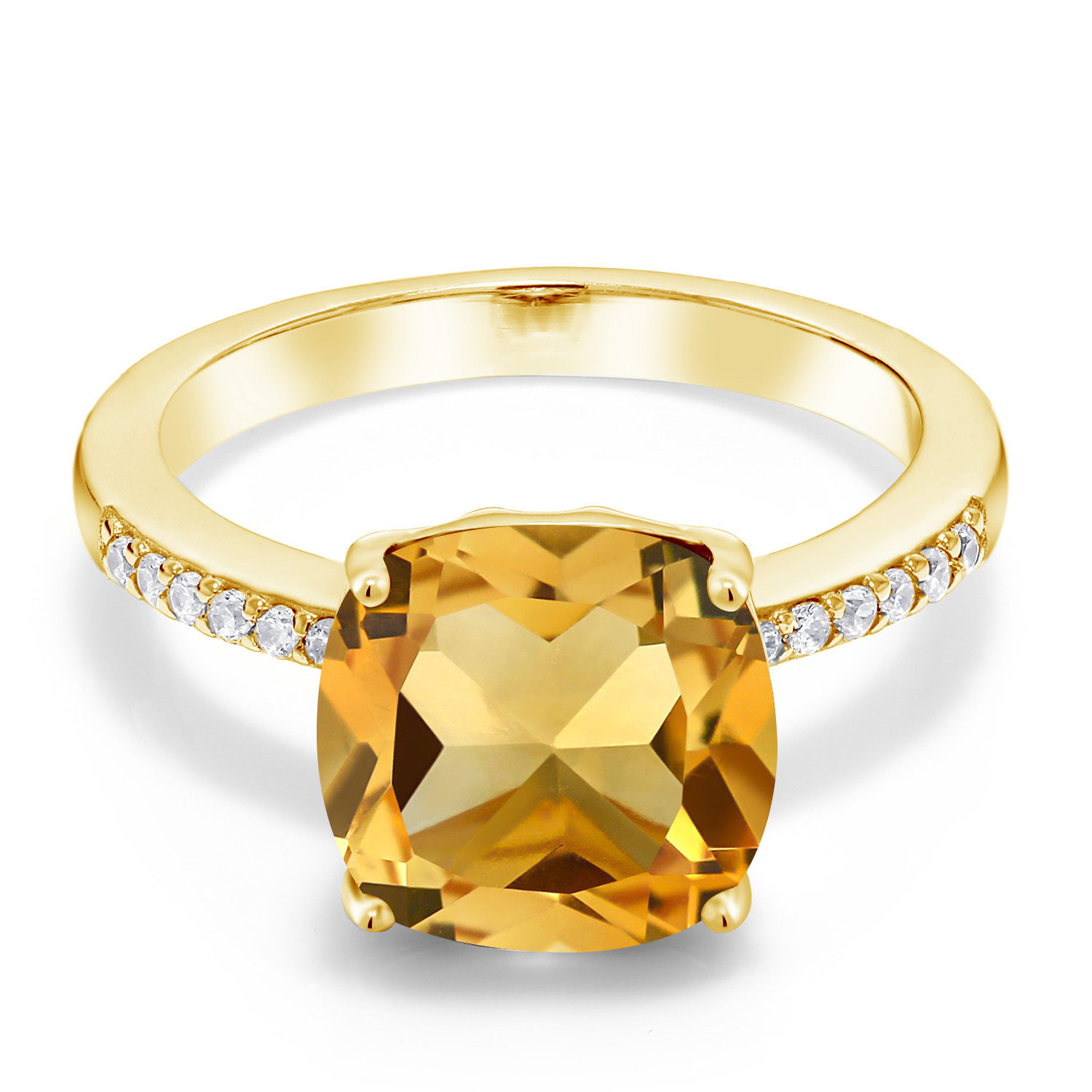 18K Yellow Gold Plated Silver 10MM Cushion Gemstone Birthstone Engagement Ring | Wedding Anniversary Promise Ring For Women | Available In Size 5, 6, 7, 8, 9