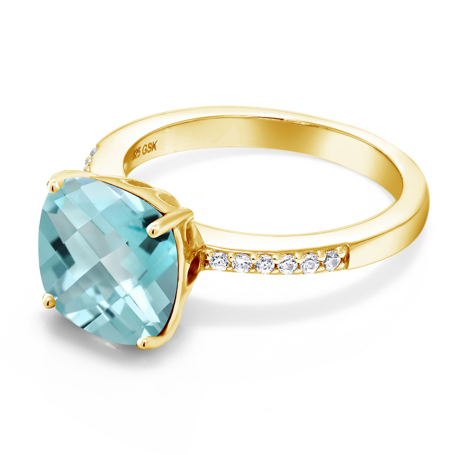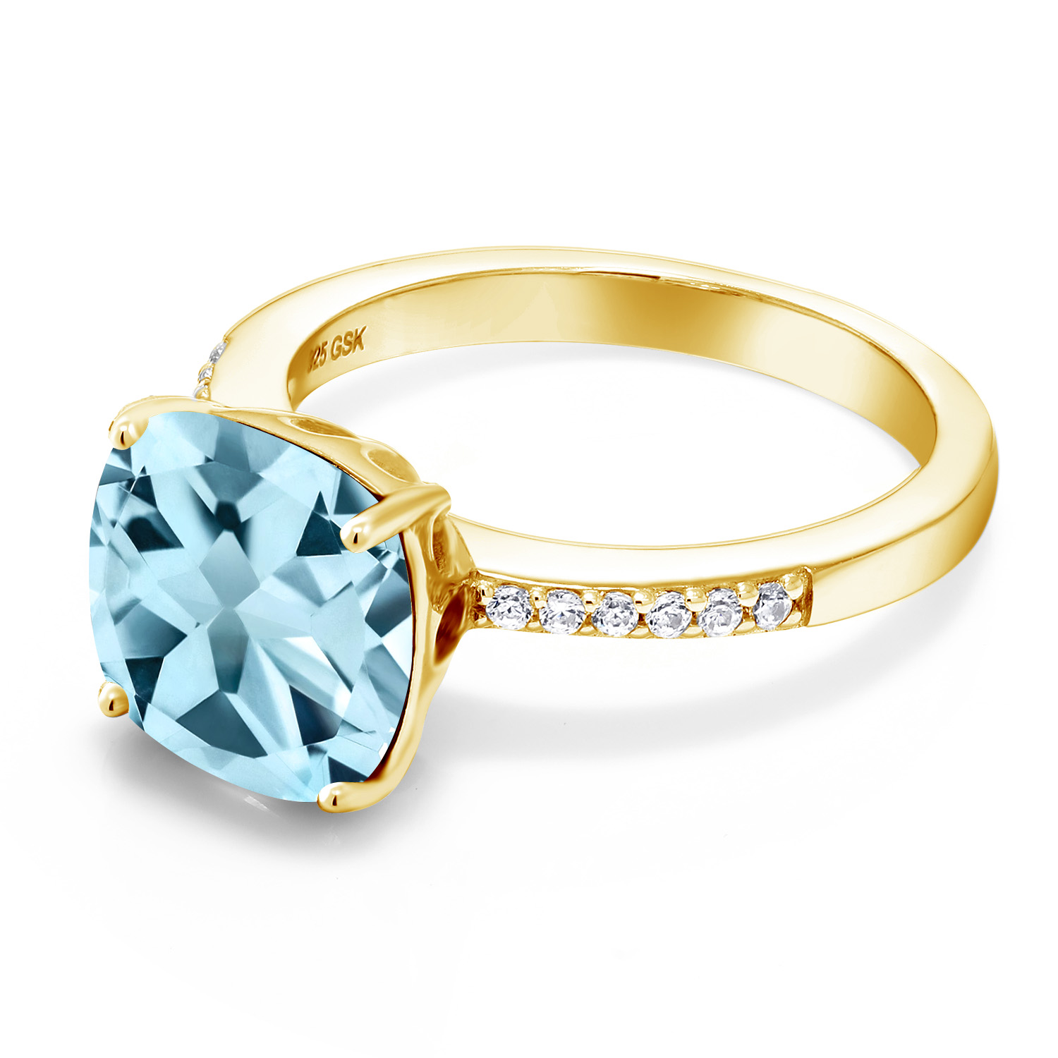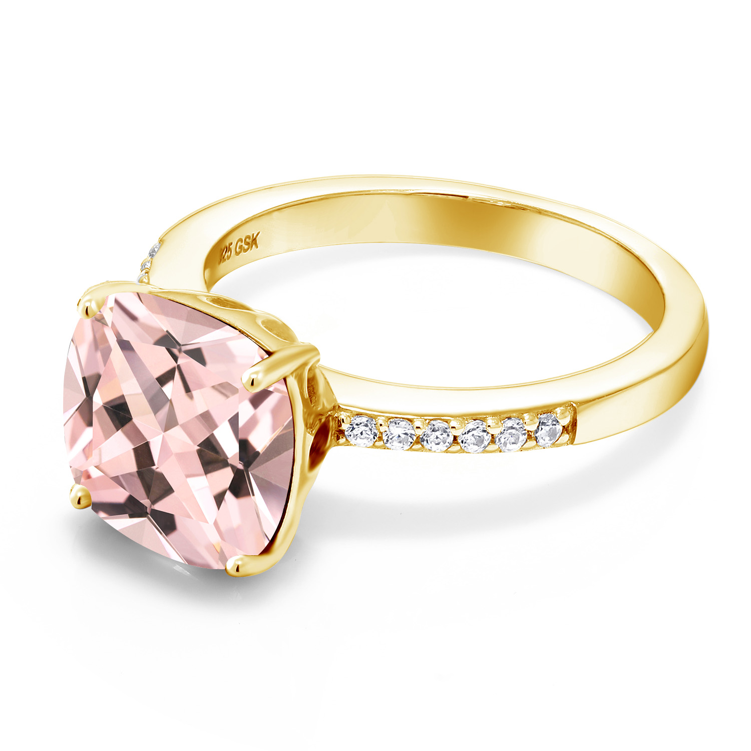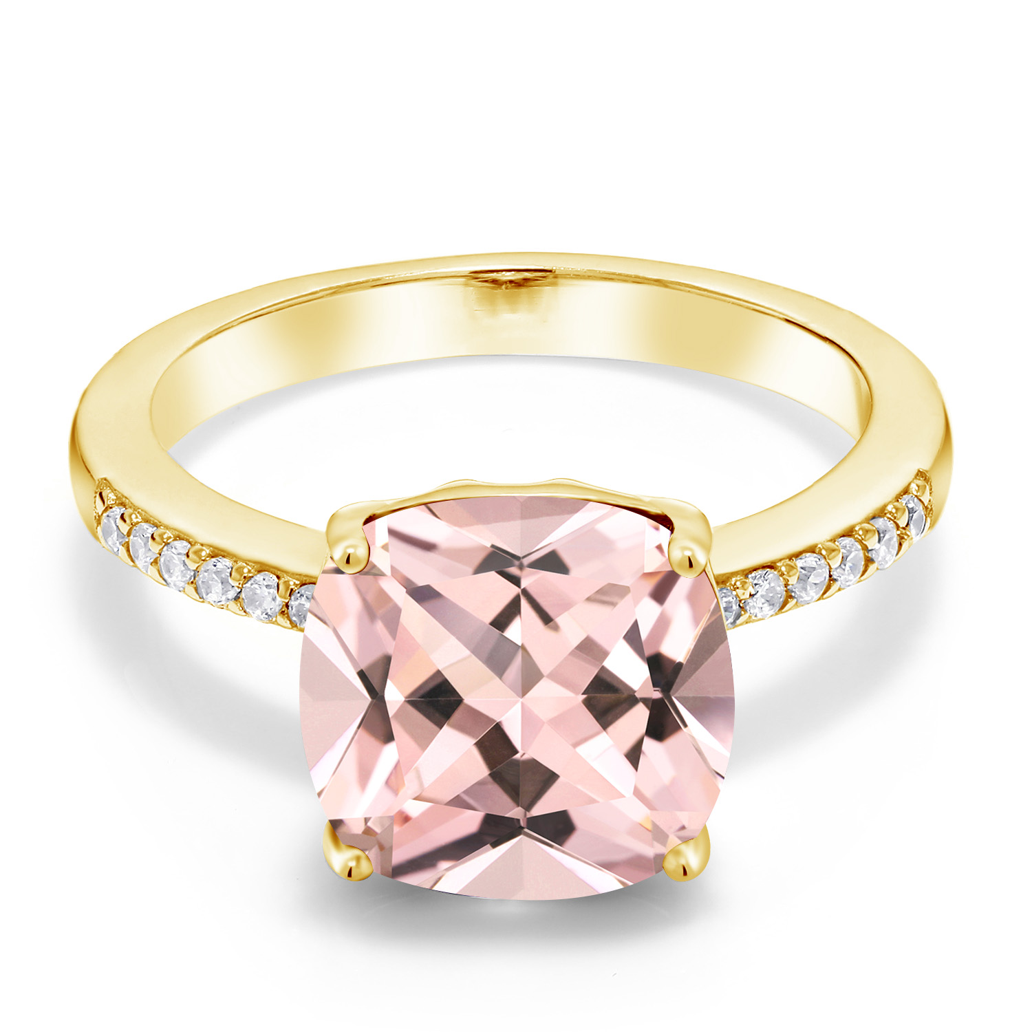 18K Yellow Gold Plated Silver 10MM Cushion Gemstone Birthstone Engagement Ring | Wedding Anniversary Promise Ring For Women | Available In Size 5, 6, 7, 8, 9