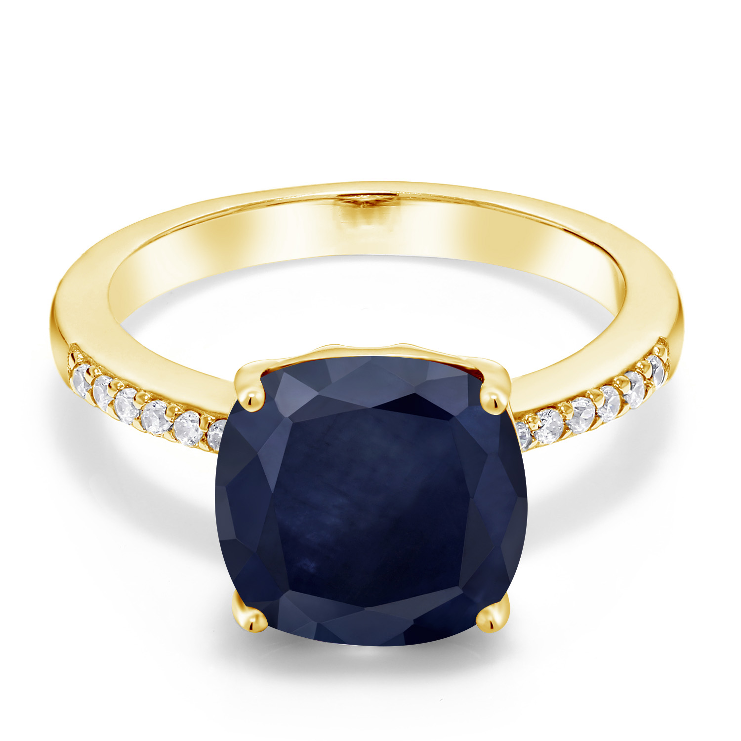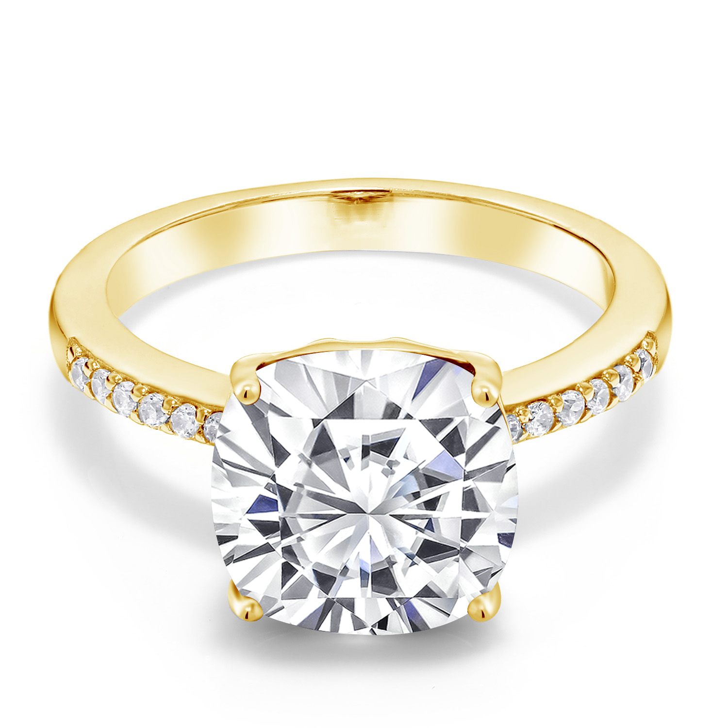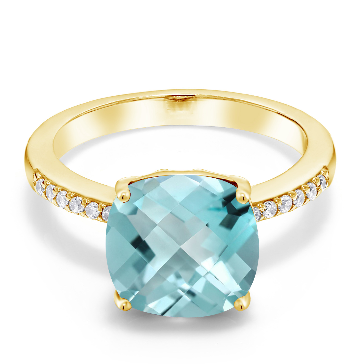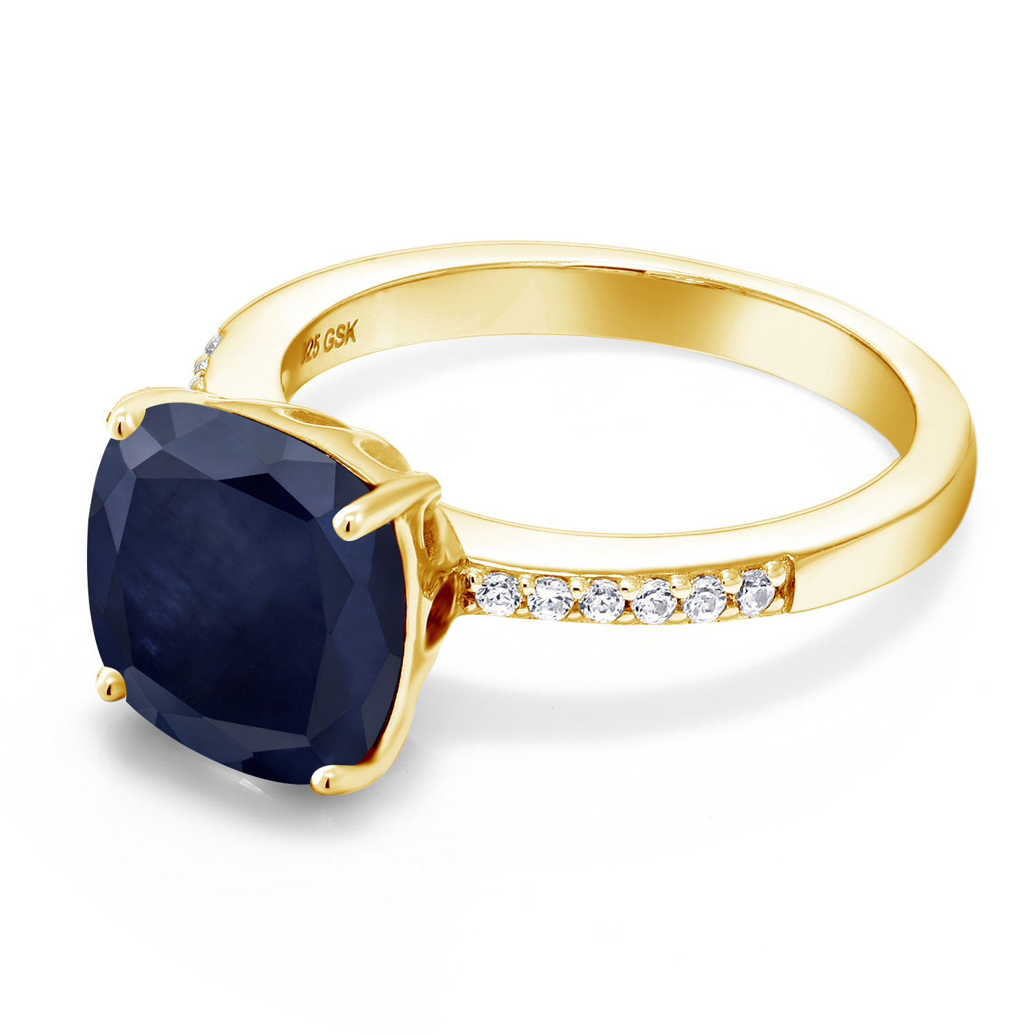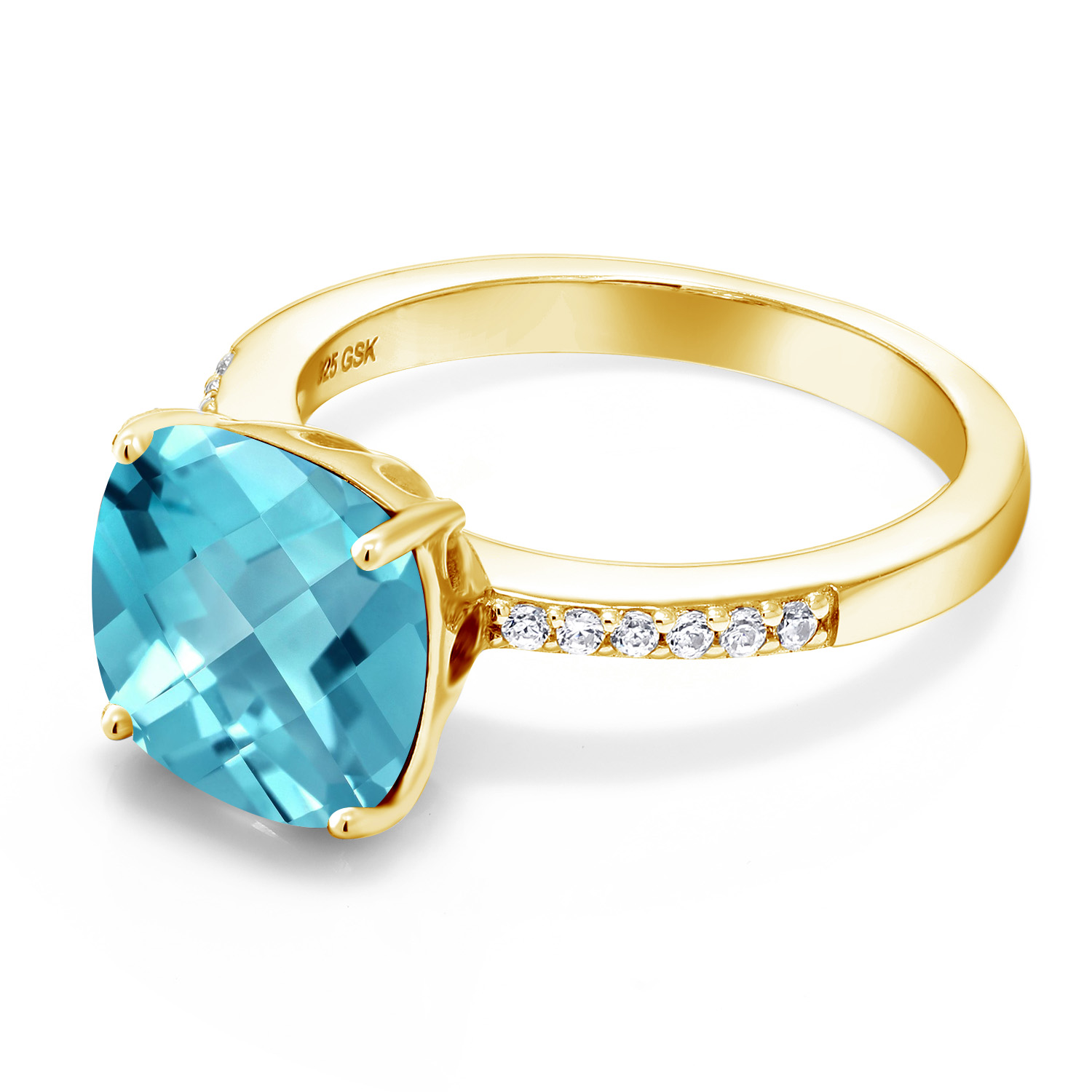 18K Yellow Gold Plated Silver 10MM Cushion Gemstone Birthstone Engagement Ring | Wedding Anniversary Promise Ring For Women | Available In Size 5, 6, 7, 8, 9
