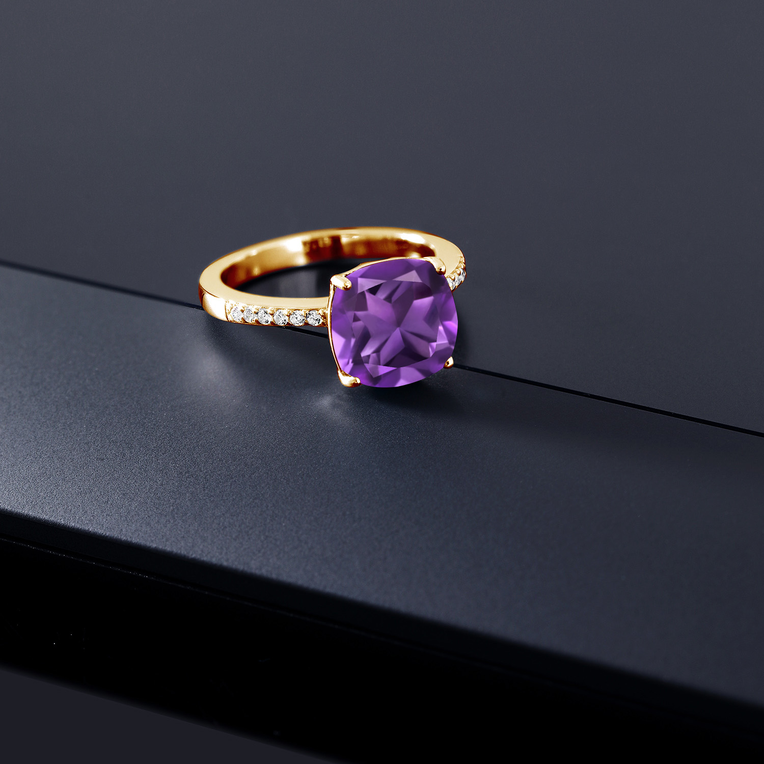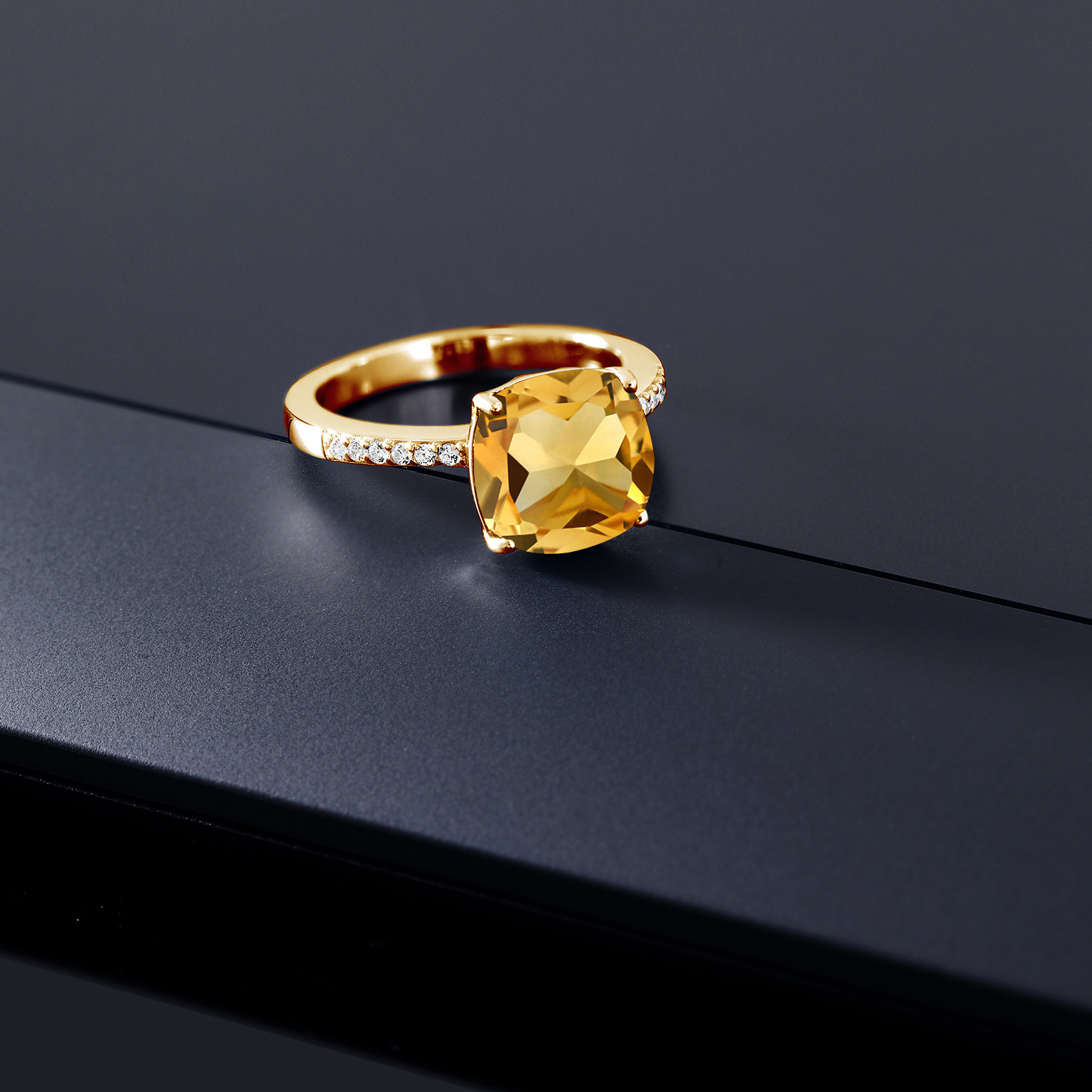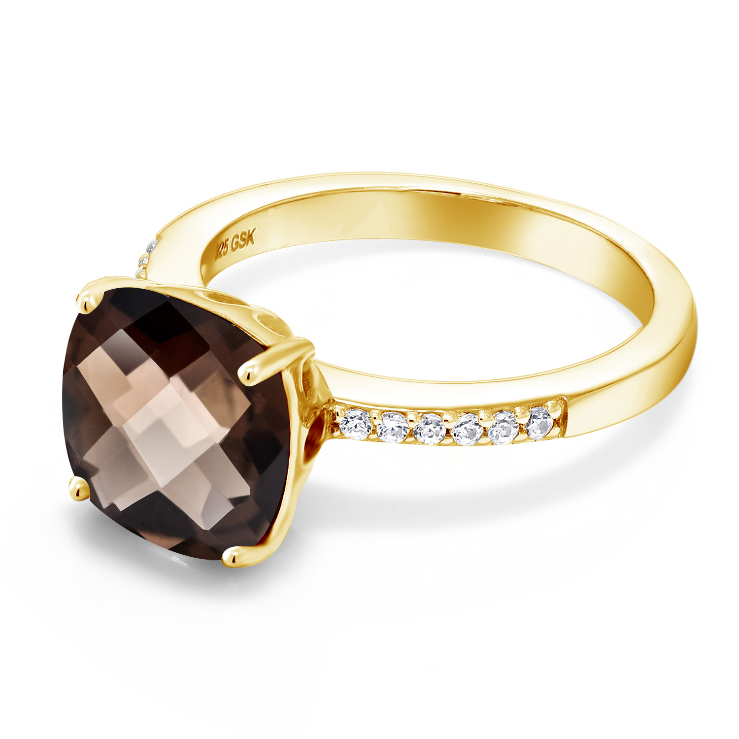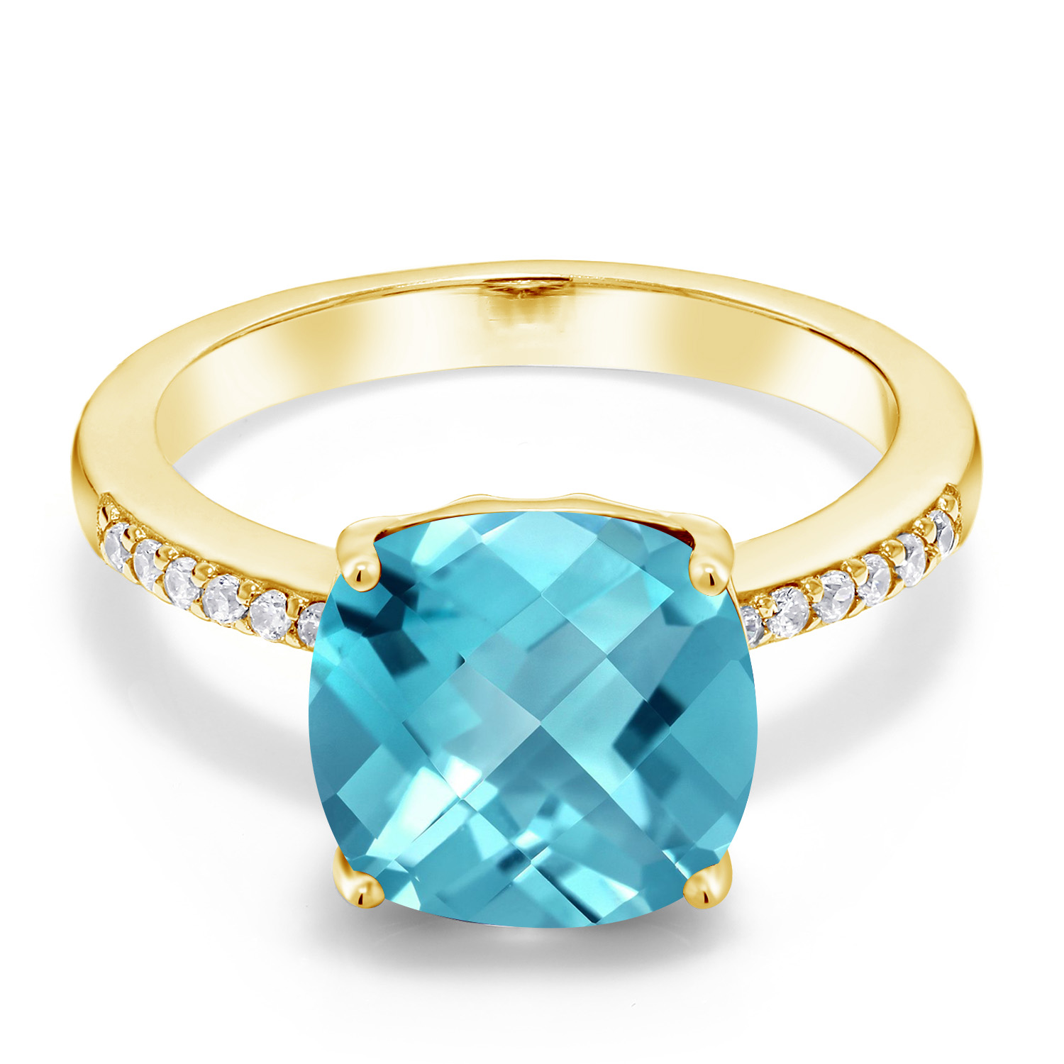 18K Yellow Gold Plated Silver 10MM Cushion Gemstone Birthstone Engagement Ring | Wedding Anniversary Promise Ring For Women | Available In Size 5, 6, 7, 8, 9