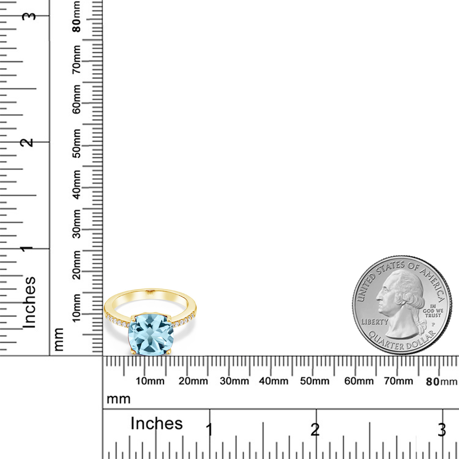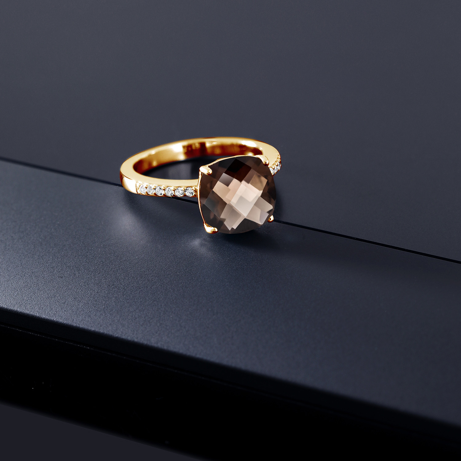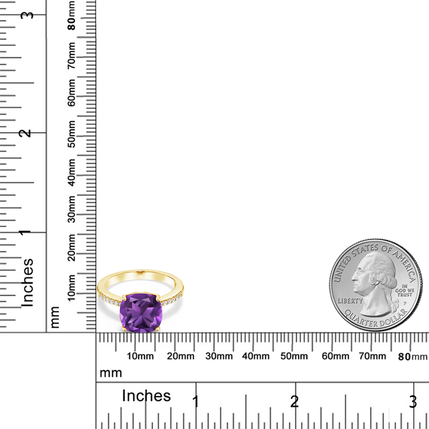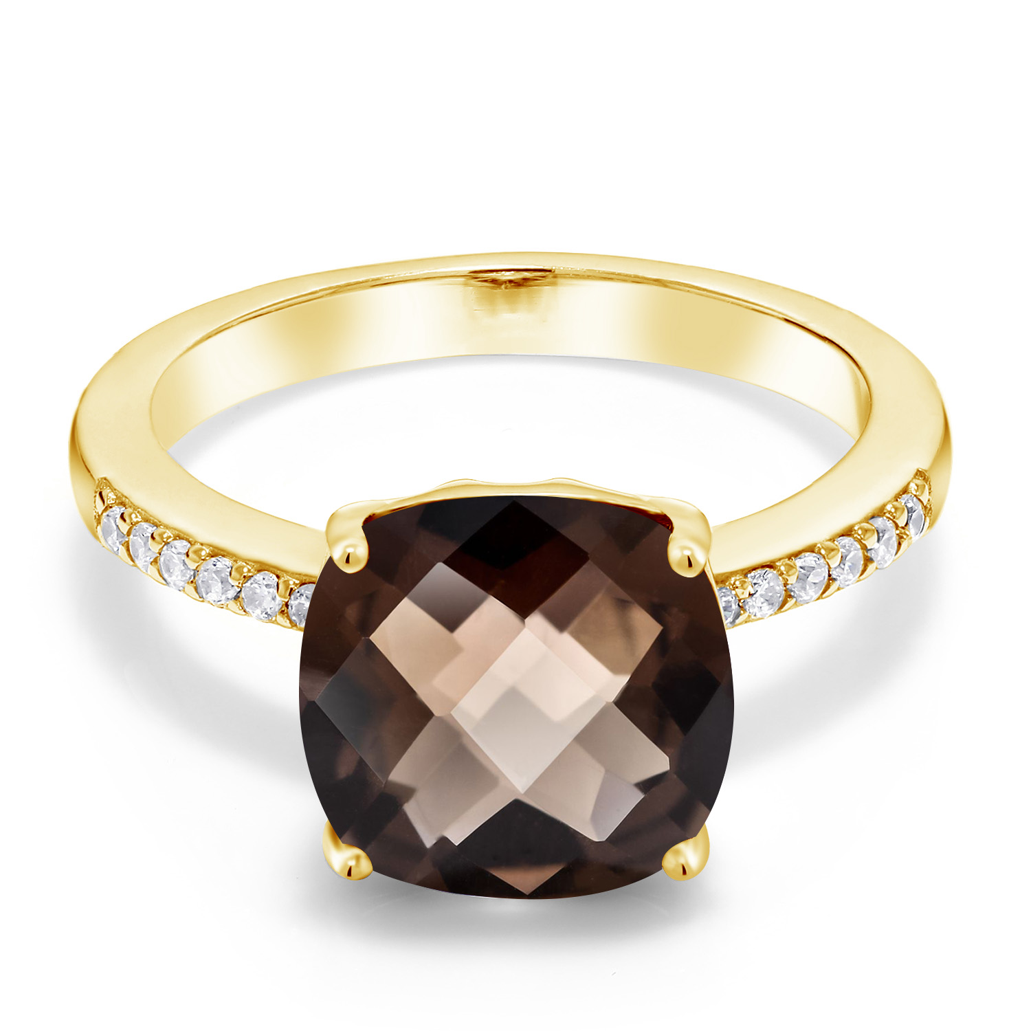 18K Yellow Gold Plated Silver 10MM Cushion Gemstone Birthstone Engagement Ring | Wedding Anniversary Promise Ring For Women | Available In Size 5, 6, 7, 8, 9