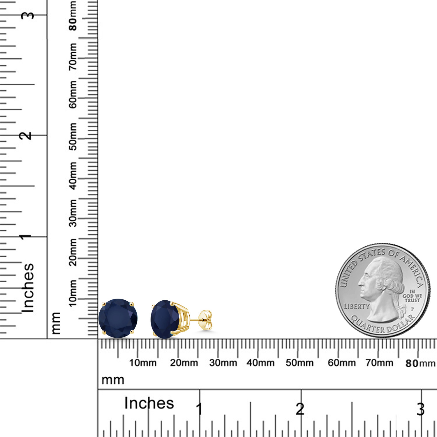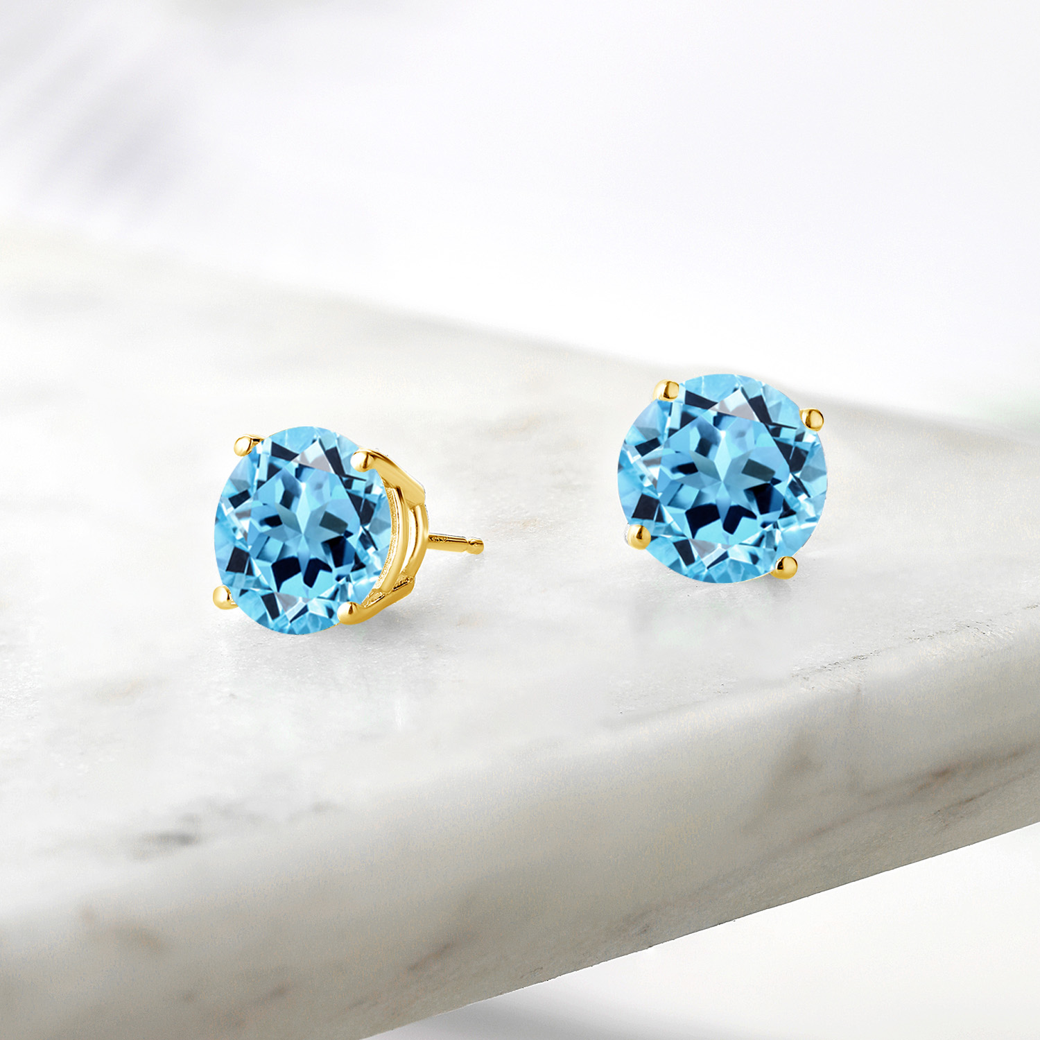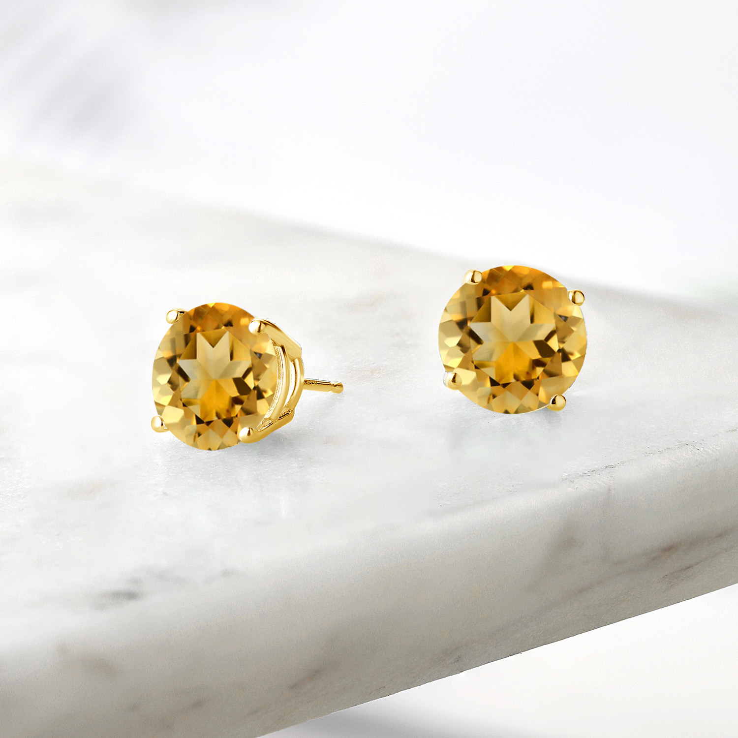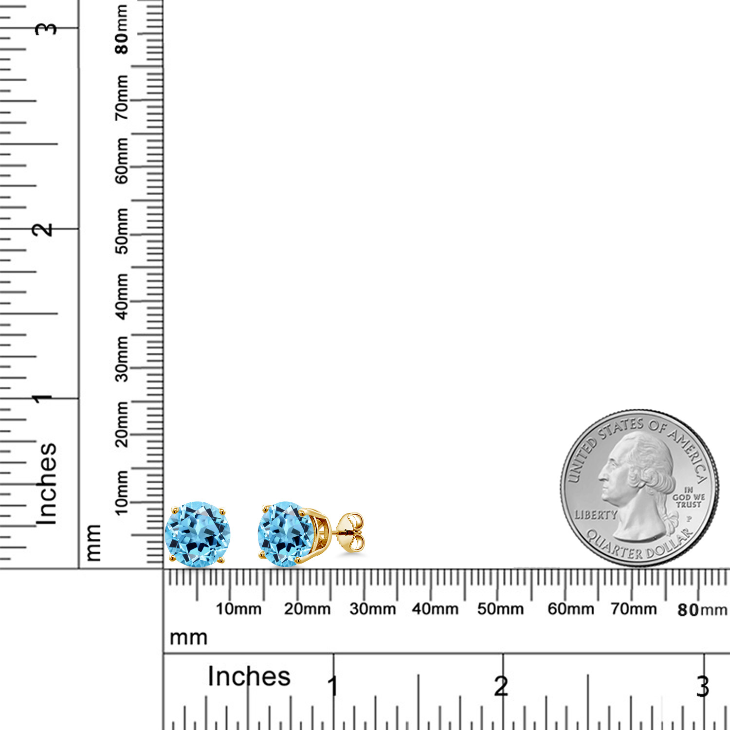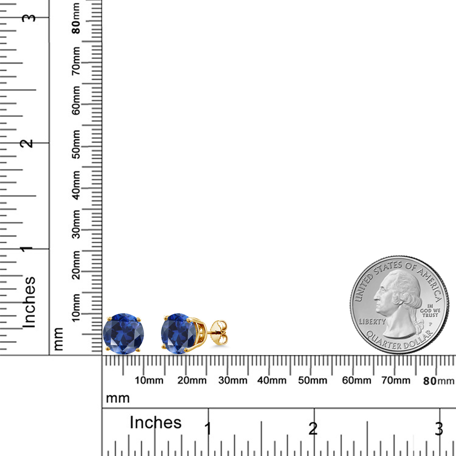 18K Yellow Gold Plated Silver 10MM Round Gemstone Birthstone Stud Earrings For Women Men