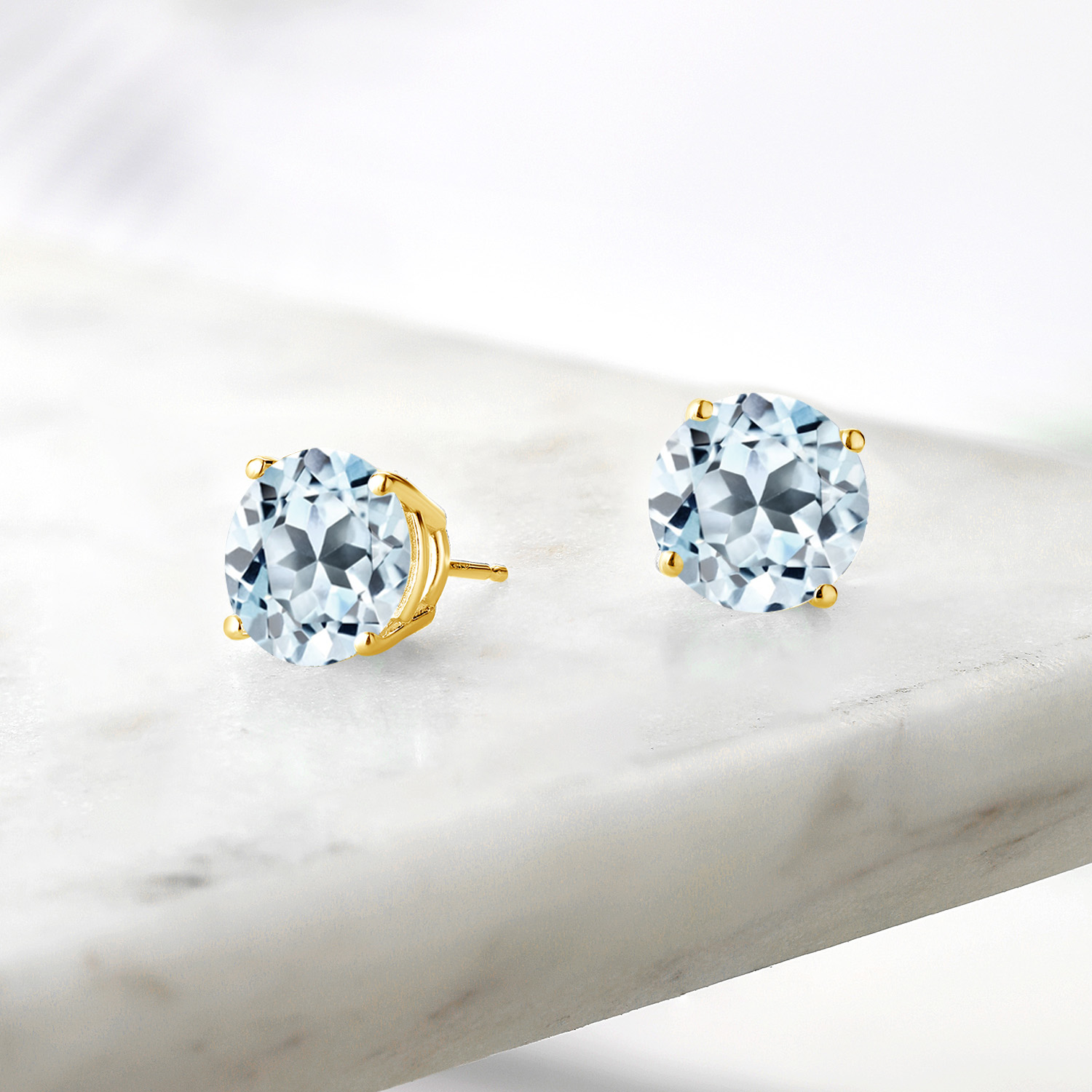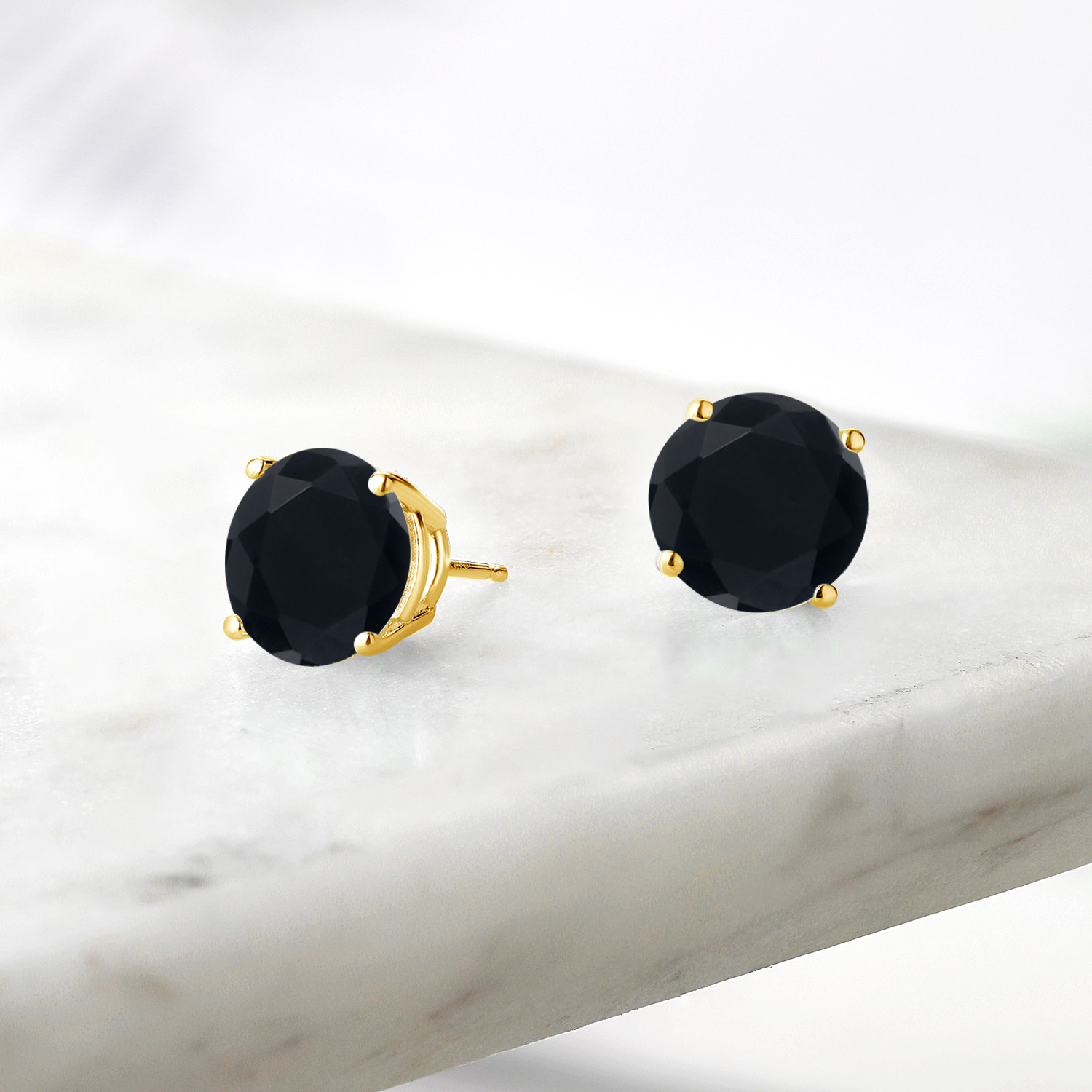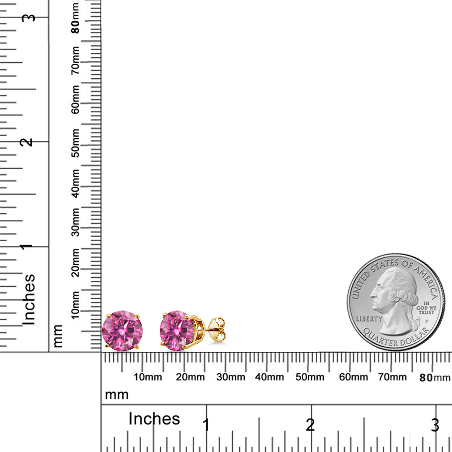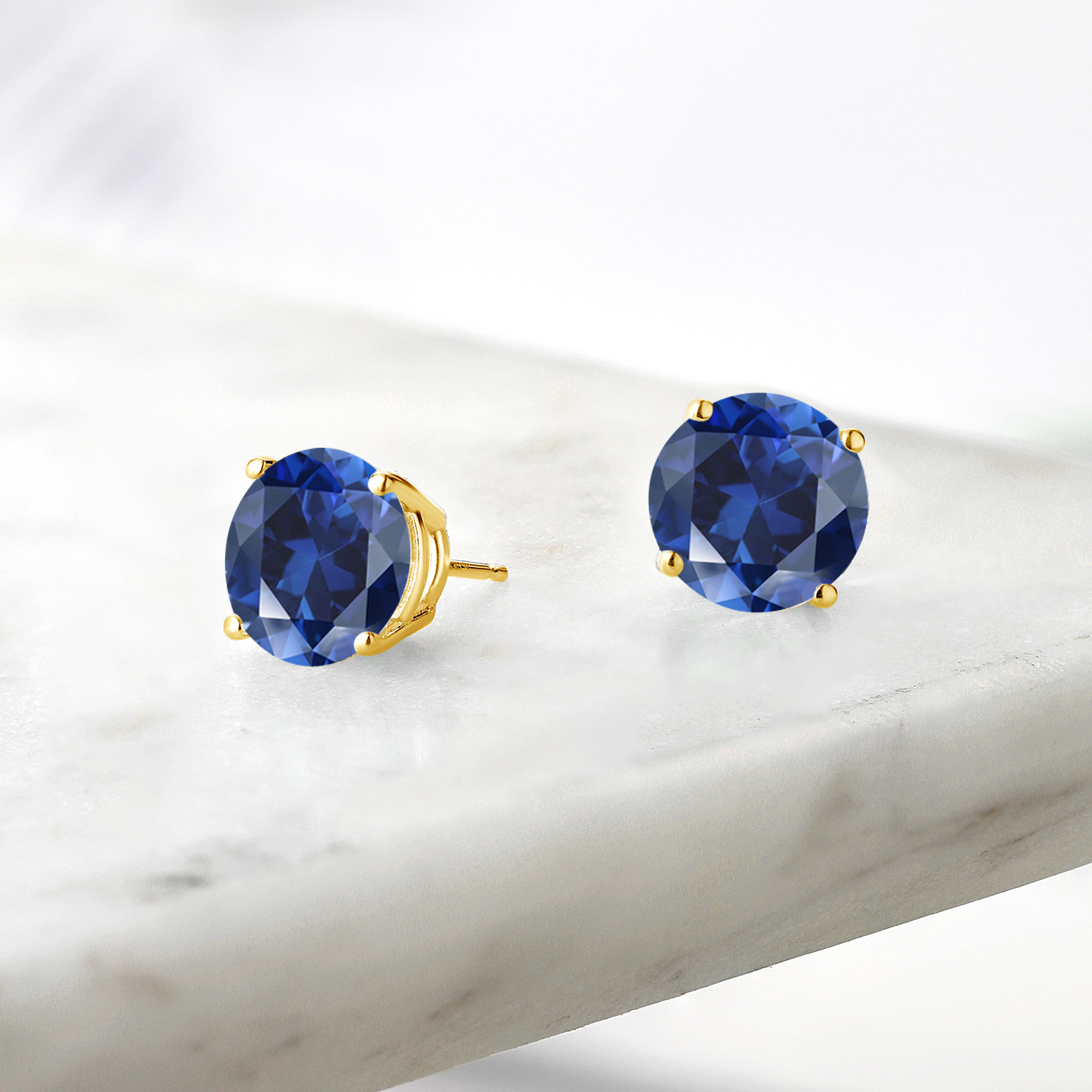 18K Yellow Gold Plated Silver 10MM Round Gemstone Birthstone Stud Earrings For Women Men