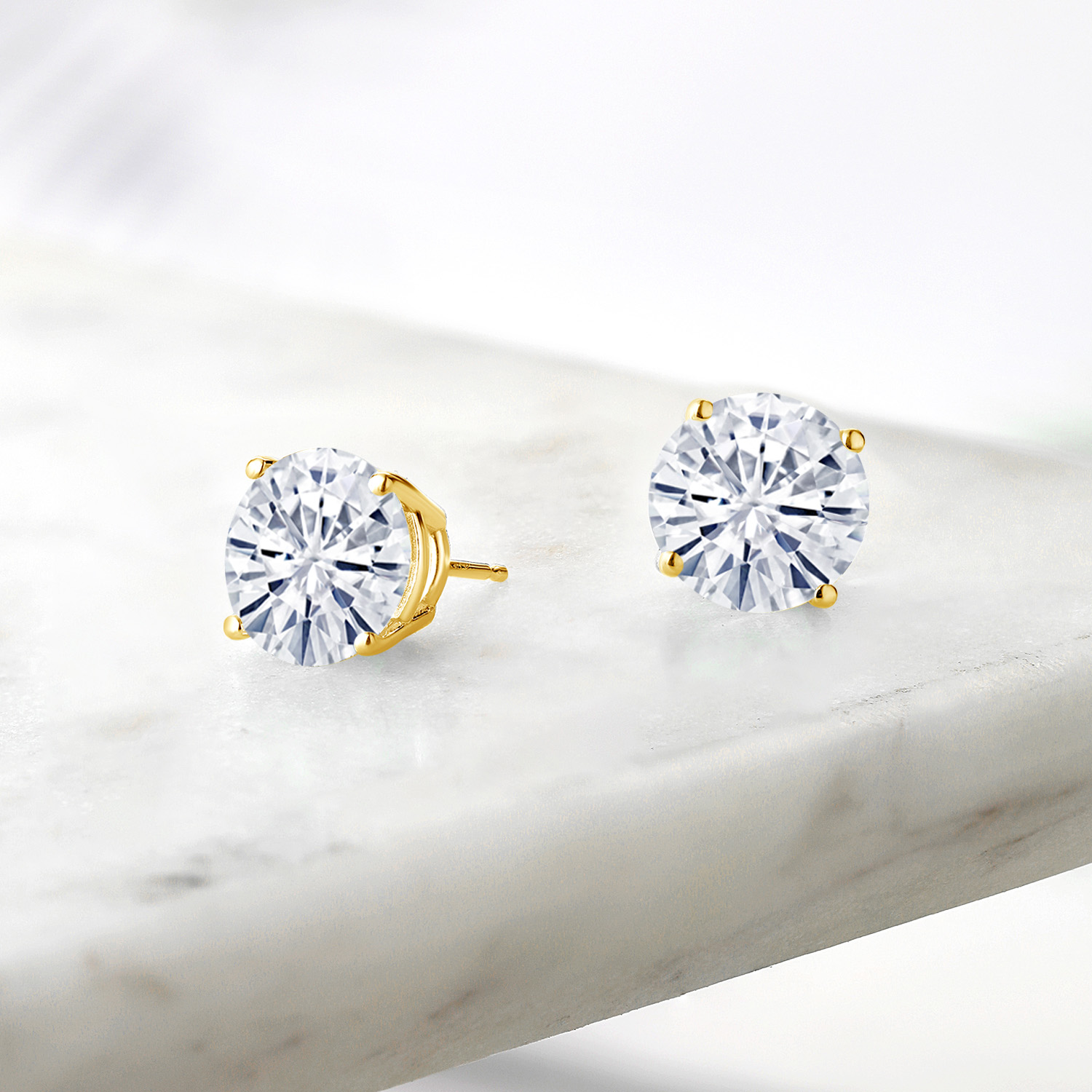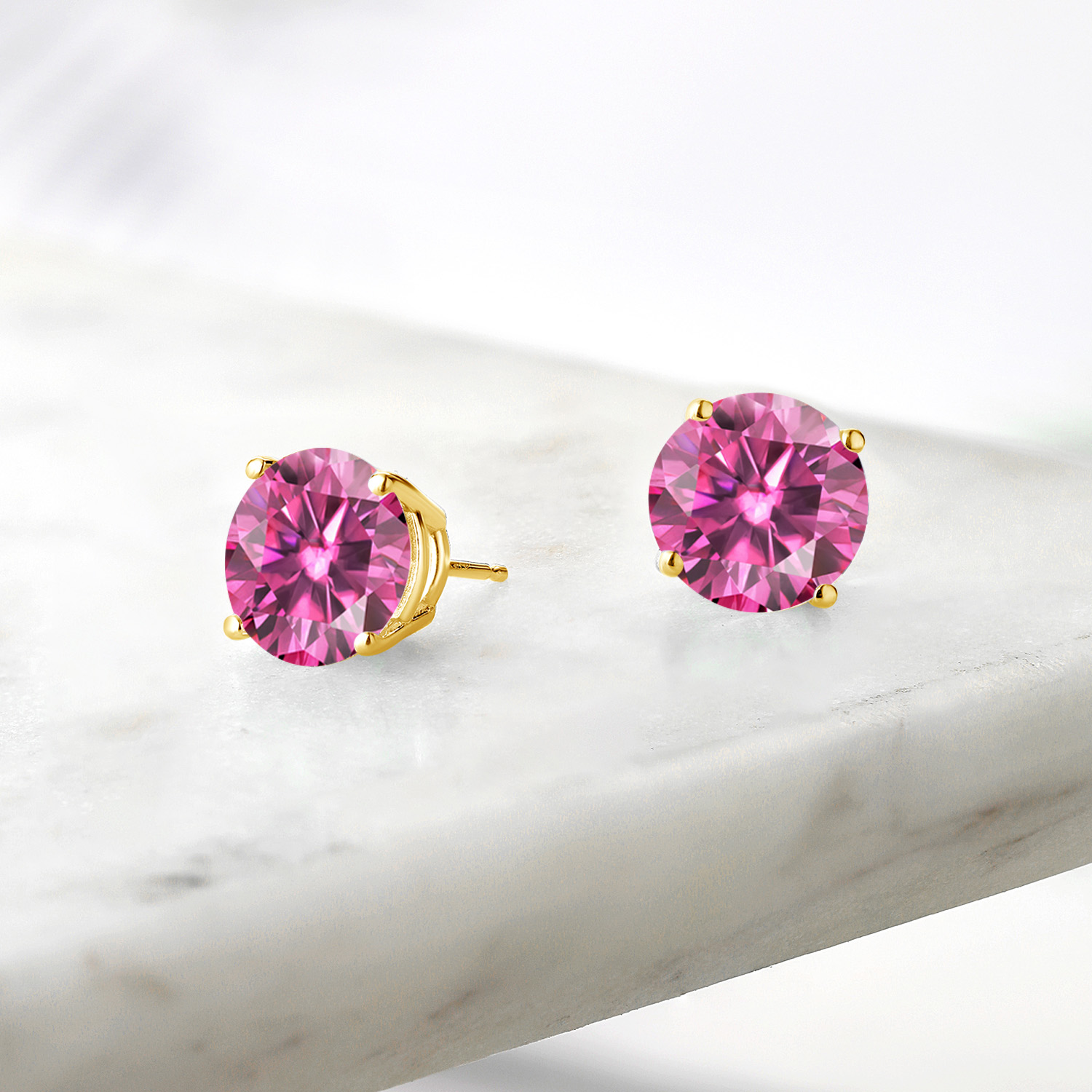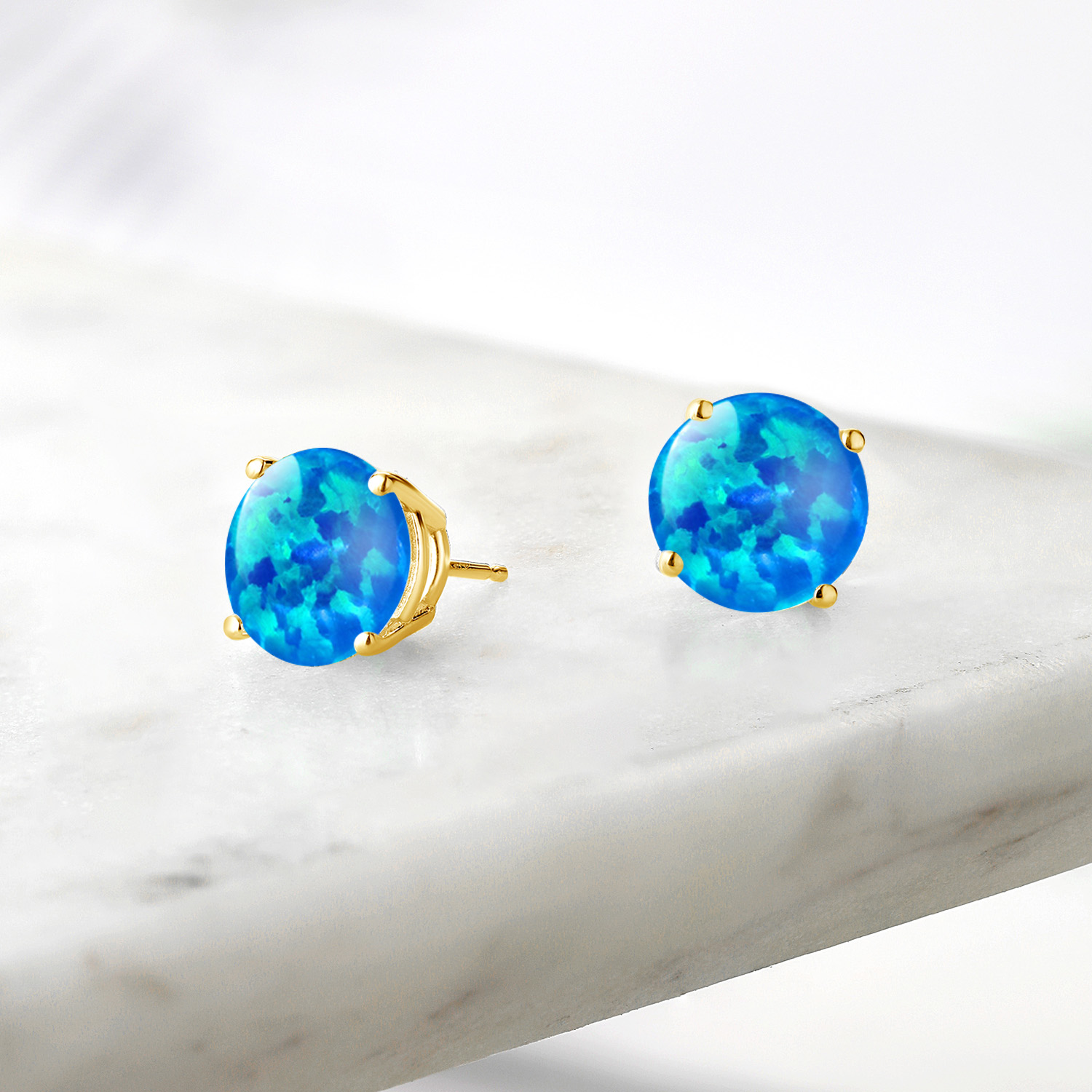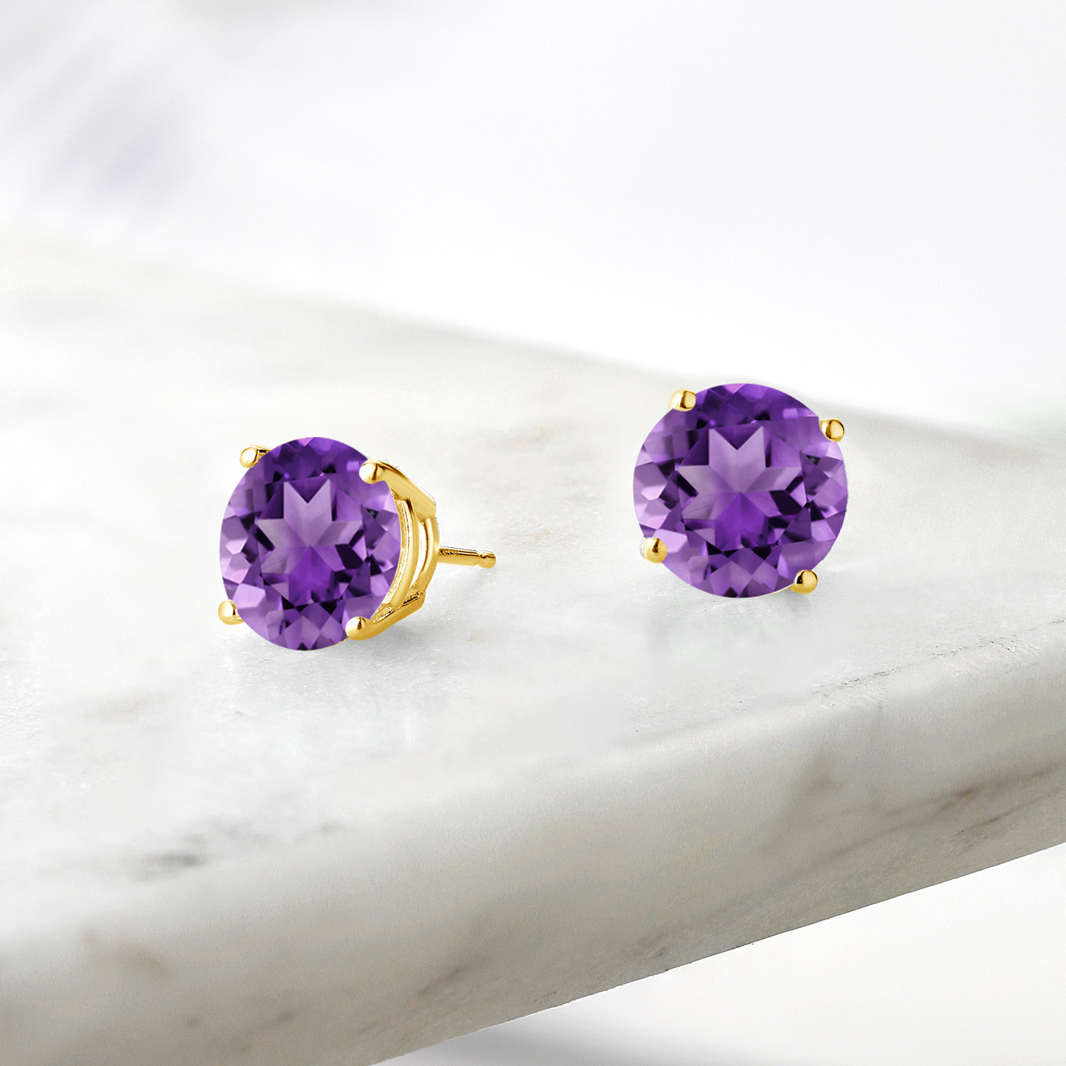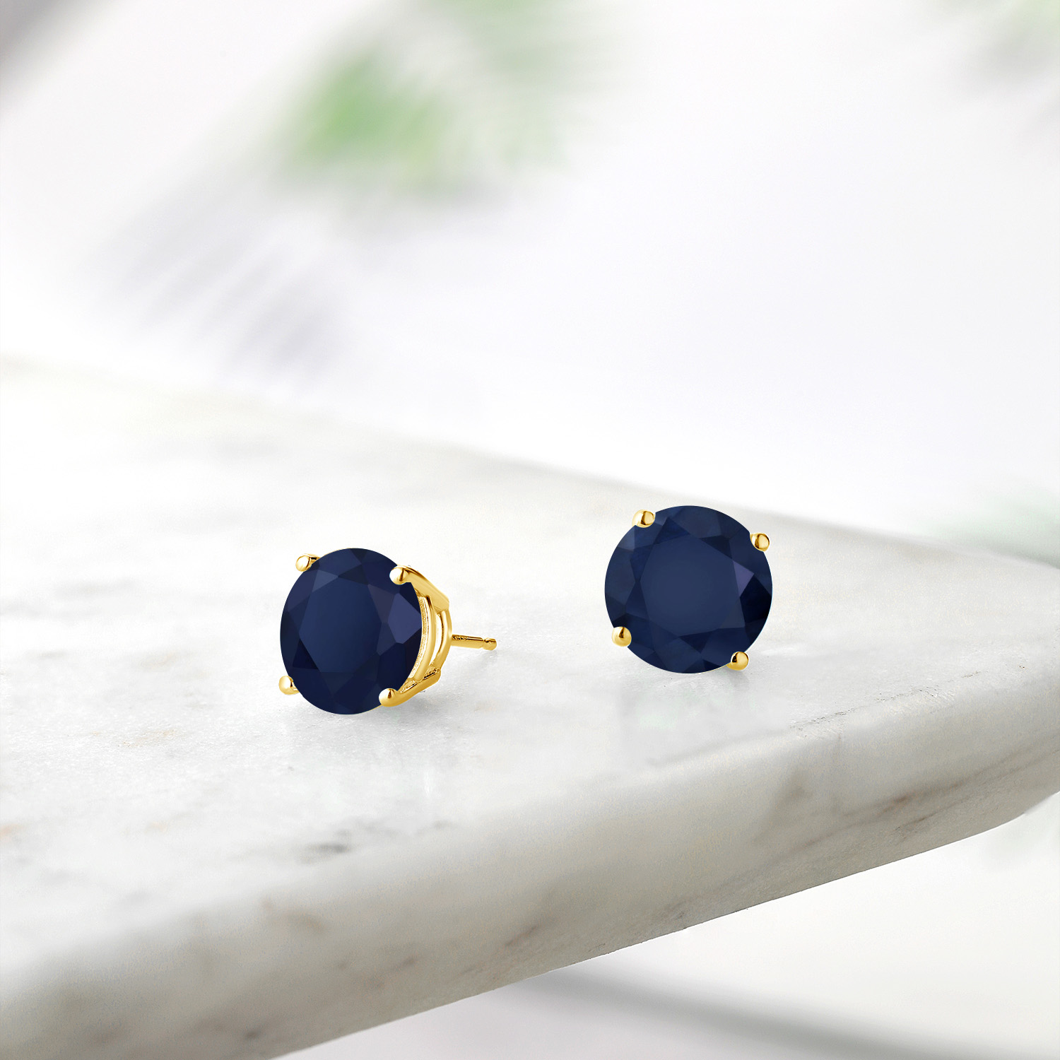 18K Yellow Gold Plated Silver 10MM Round Gemstone Birthstone Stud Earrings For Women Men