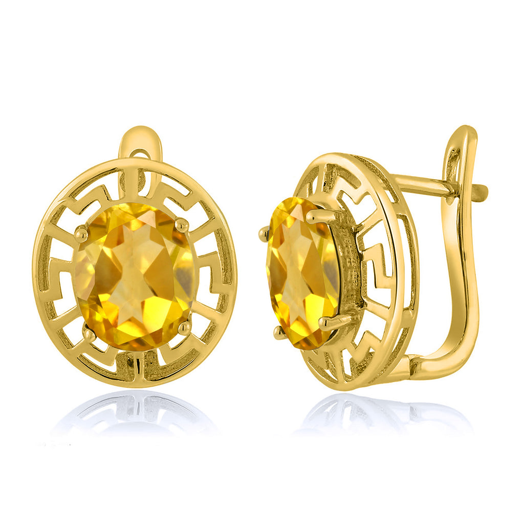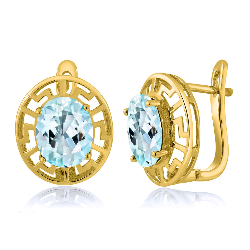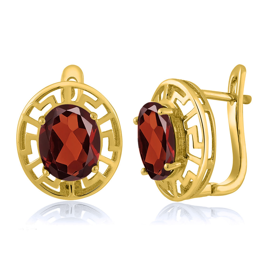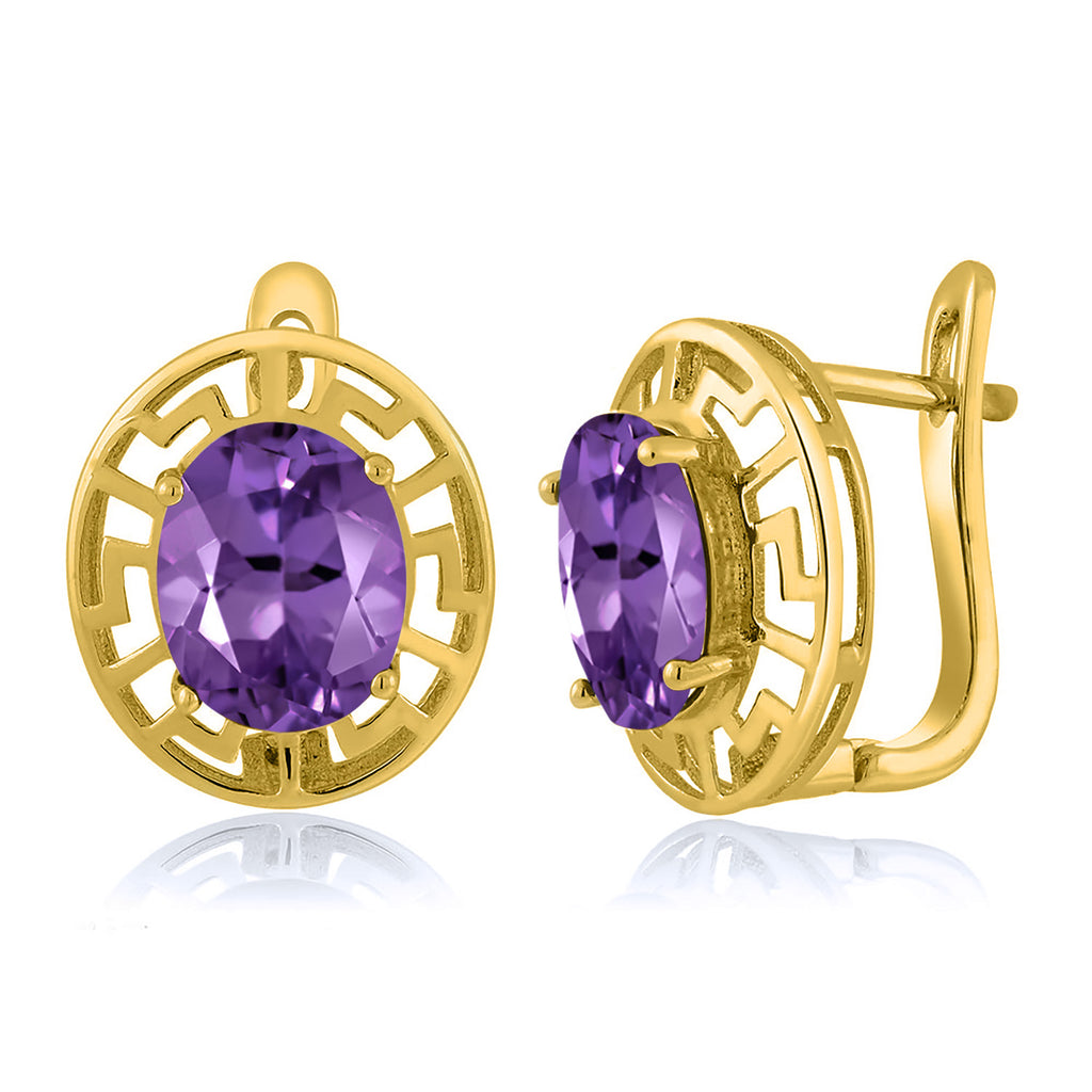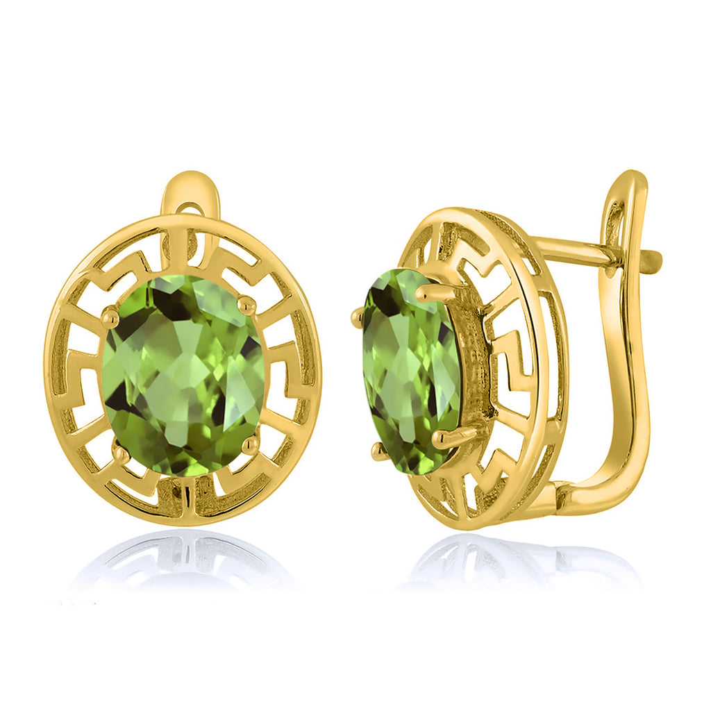 ELEGANT & UNIQUE DESIGN: These earrings feature 10X8MM oval gemstone birthstones, framed by a sophisticated Greek key pattern and plated in radiant 18K yellow gold, offering a timeless and luxurious look.