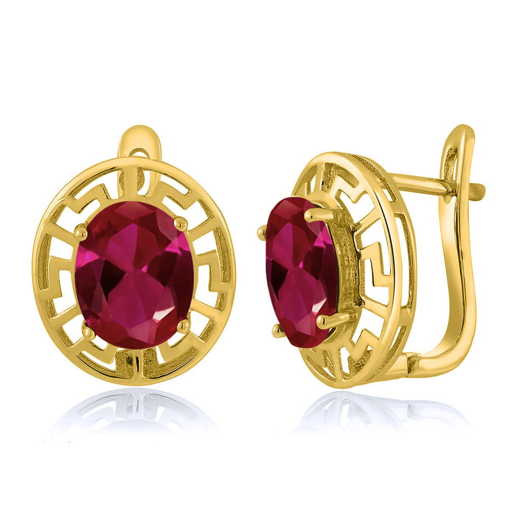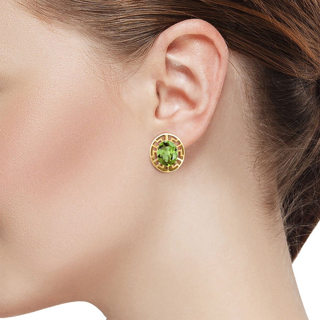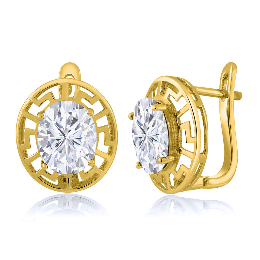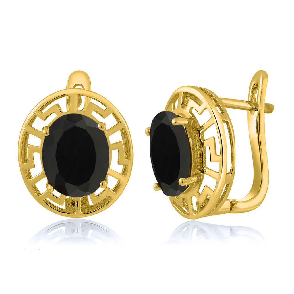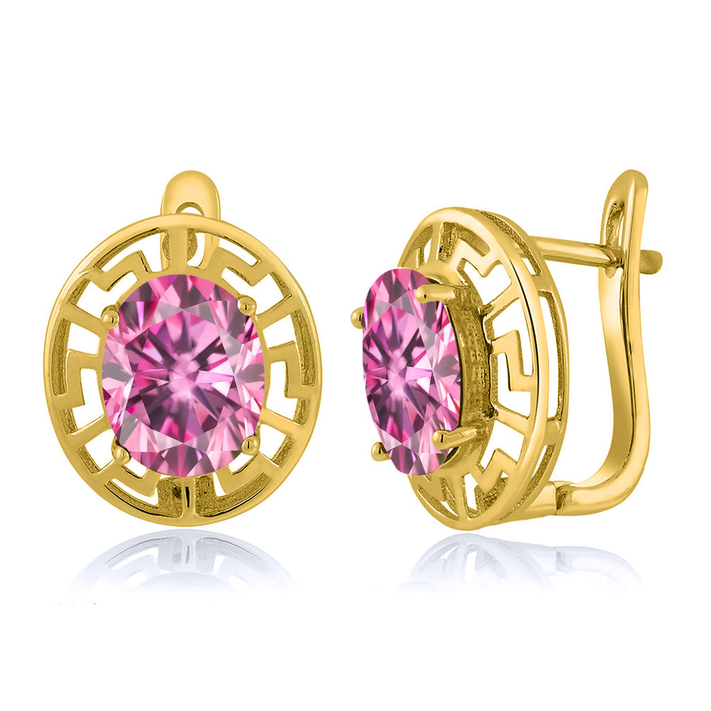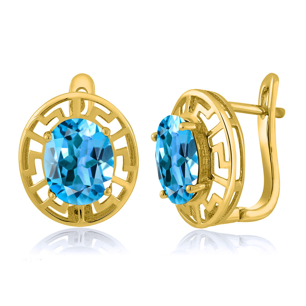 ELEGANT & UNIQUE DESIGN: These earrings feature 10X8MM oval gemstone birthstones, framed by a sophisticated Greek key pattern and plated in radiant 18K yellow gold, offering a timeless and luxurious look.