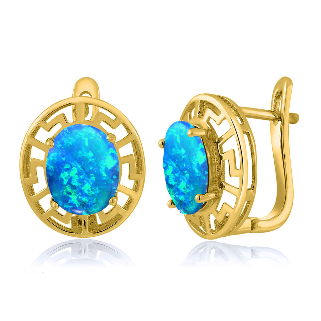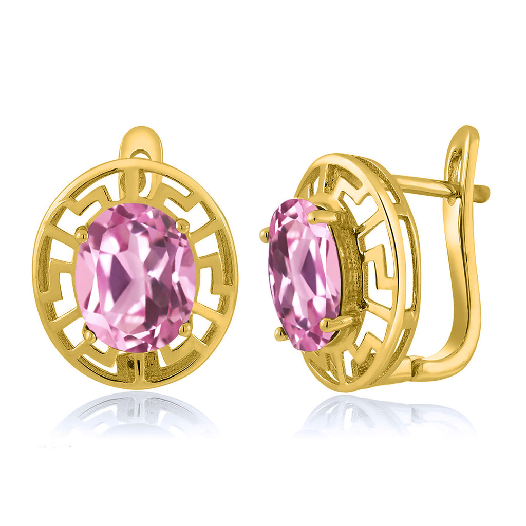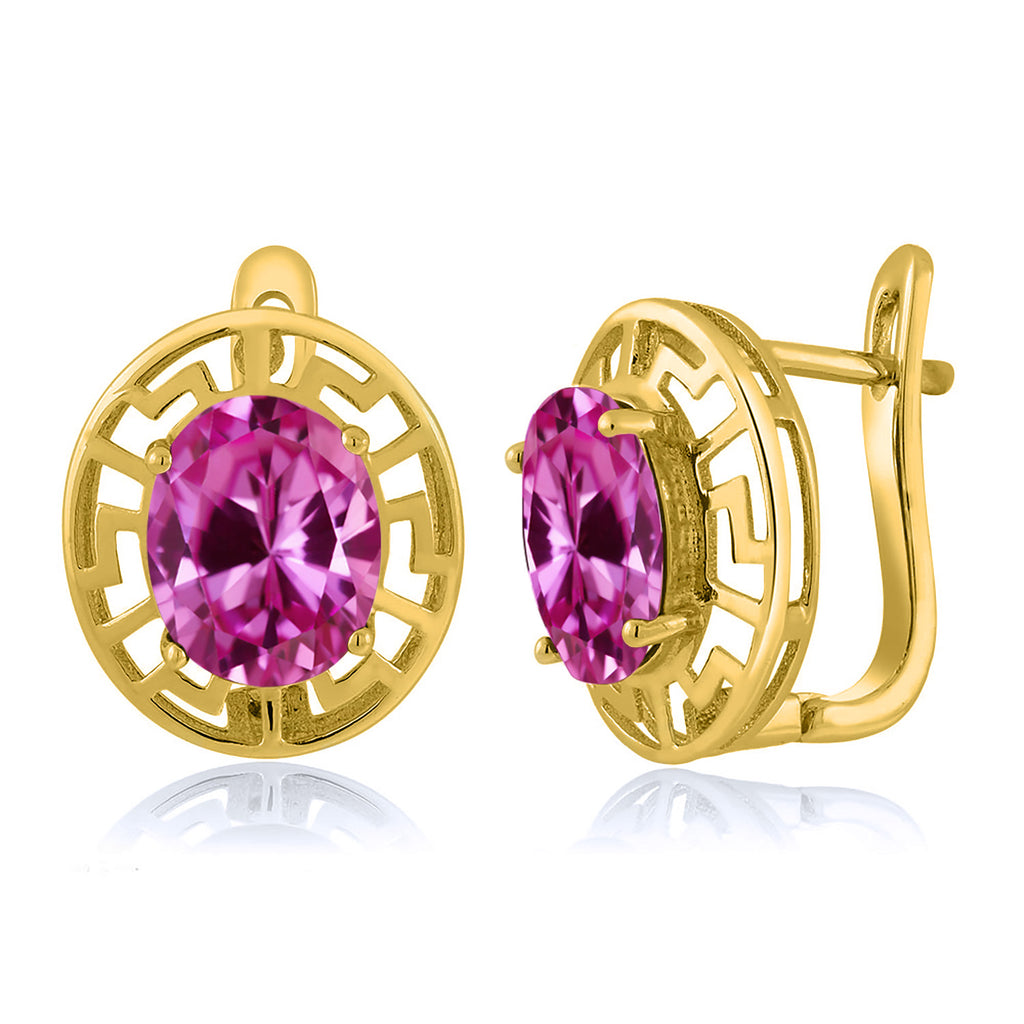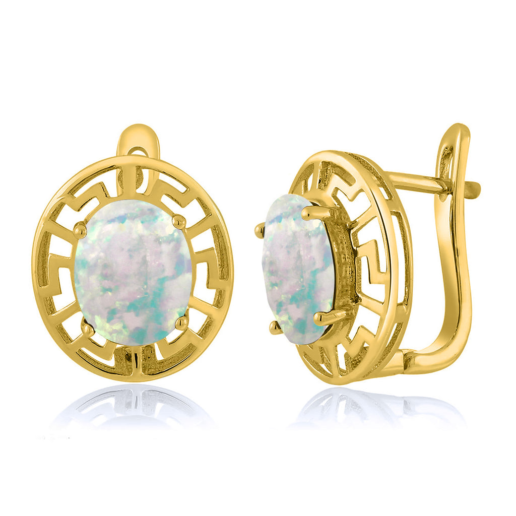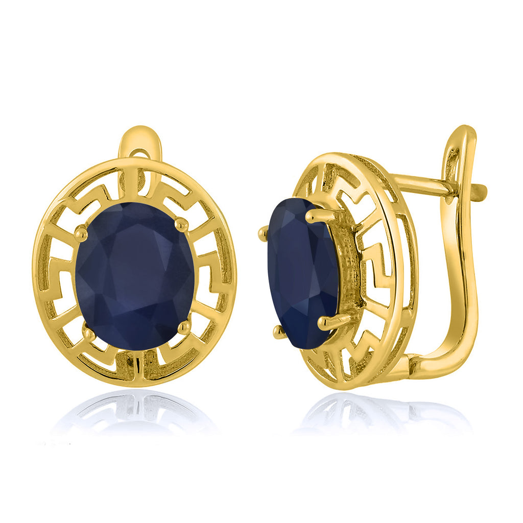 ELEGANT & UNIQUE DESIGN: These earrings feature 10X8MM oval gemstone birthstones, framed by a sophisticated Greek key pattern and plated in radiant 18K yellow gold, offering a timeless and luxurious look.