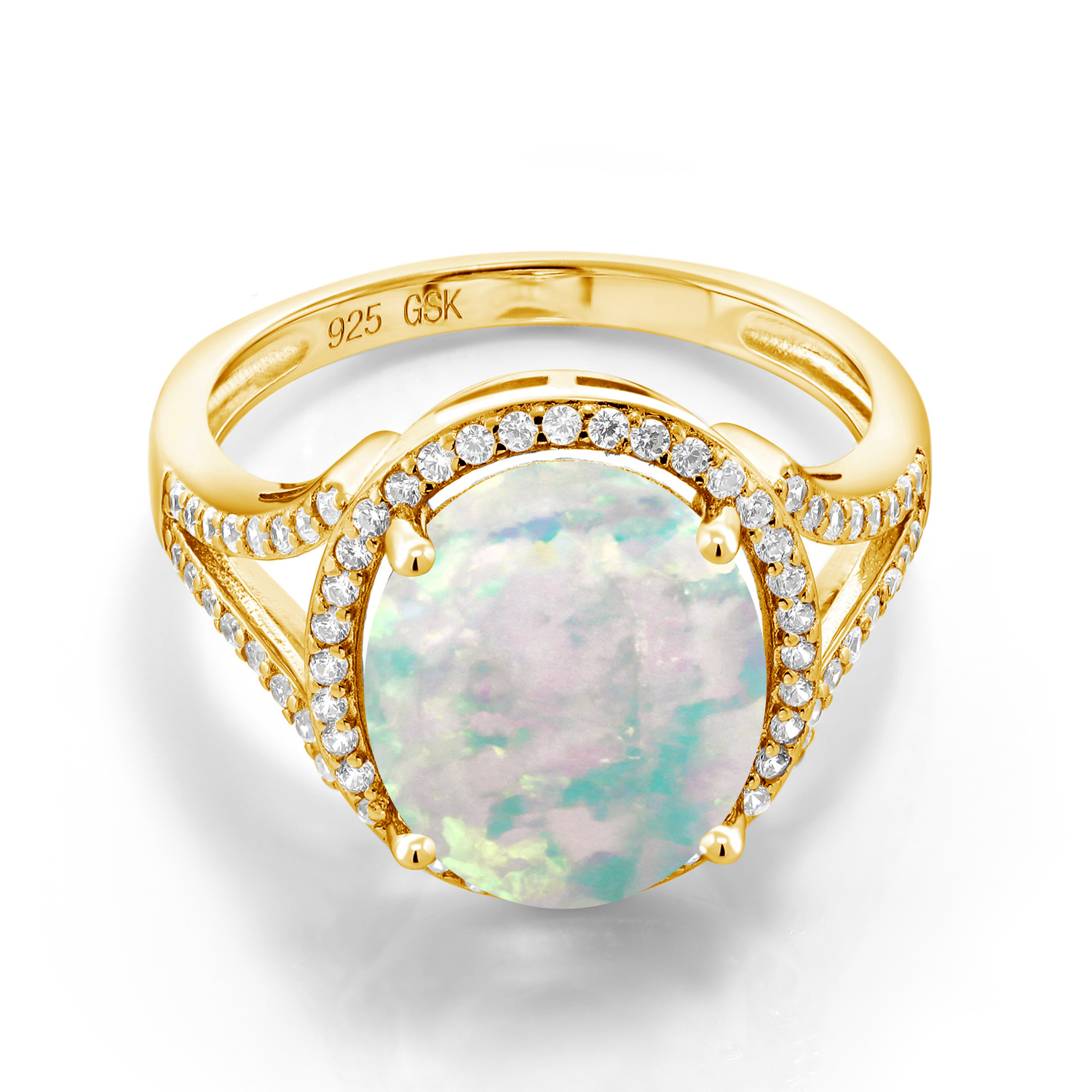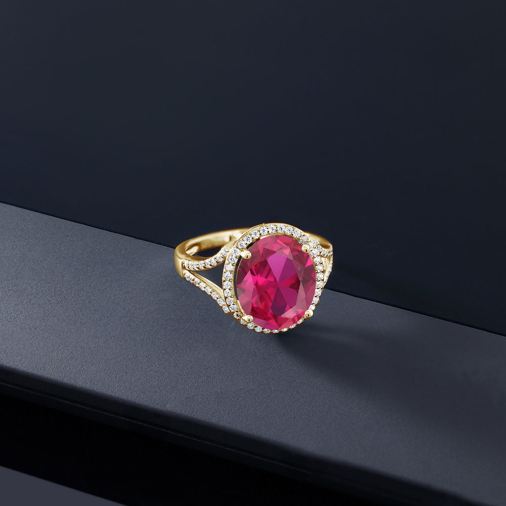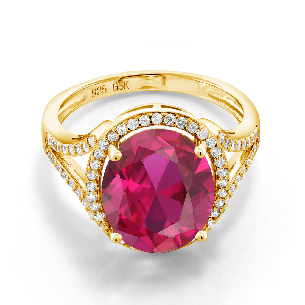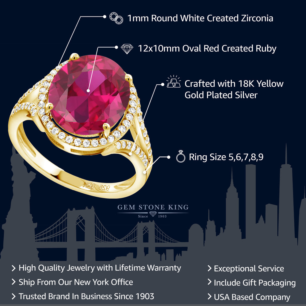 LUXURIOUS GOLD-PLATED ELEGANCE: This halo engagement ring exudes luxury with its 18K yellow gold-plated silver setting that beautifully complements the focal point of a 12x10MM oval gemstone birthstone. The gold-plating adds a touch of opulence and warmth to the design, making it a statement piece for special occasions.